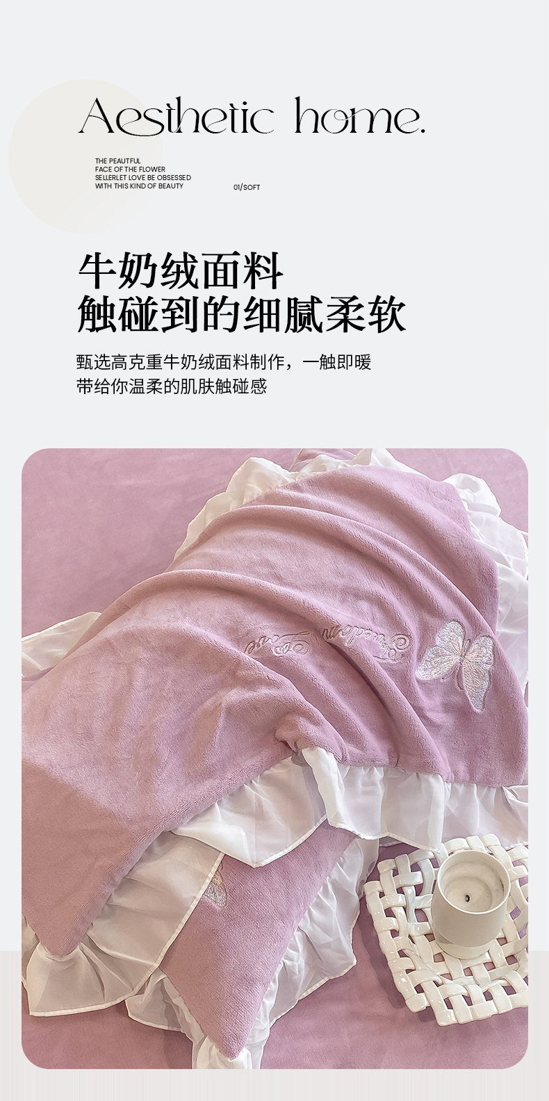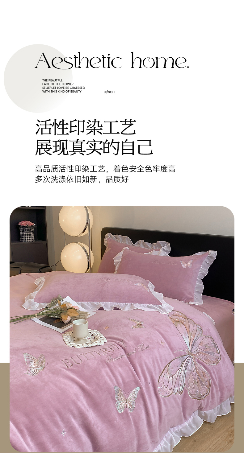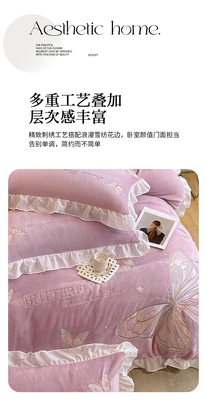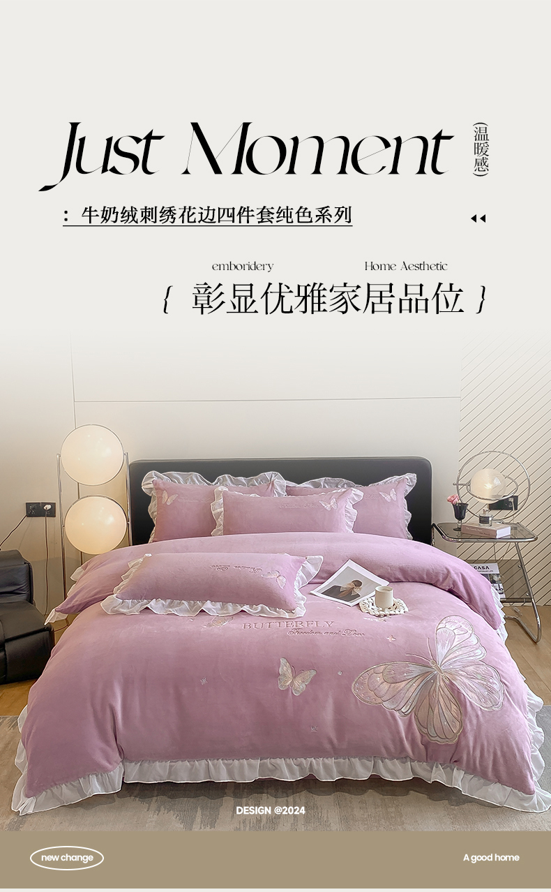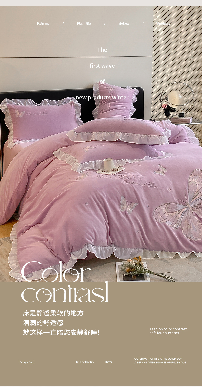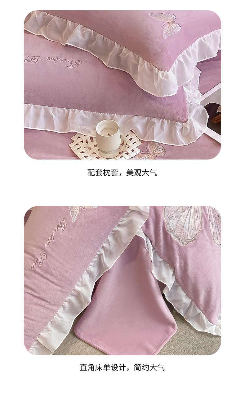 商品名称:木子家纺 2025新款牛奶绒纯色刺绣花边四件套 罗兰紫