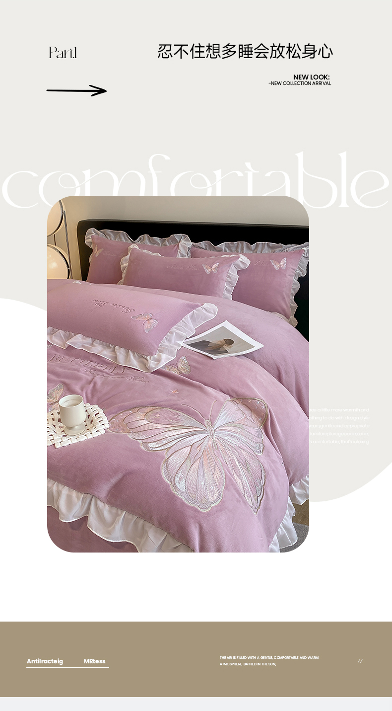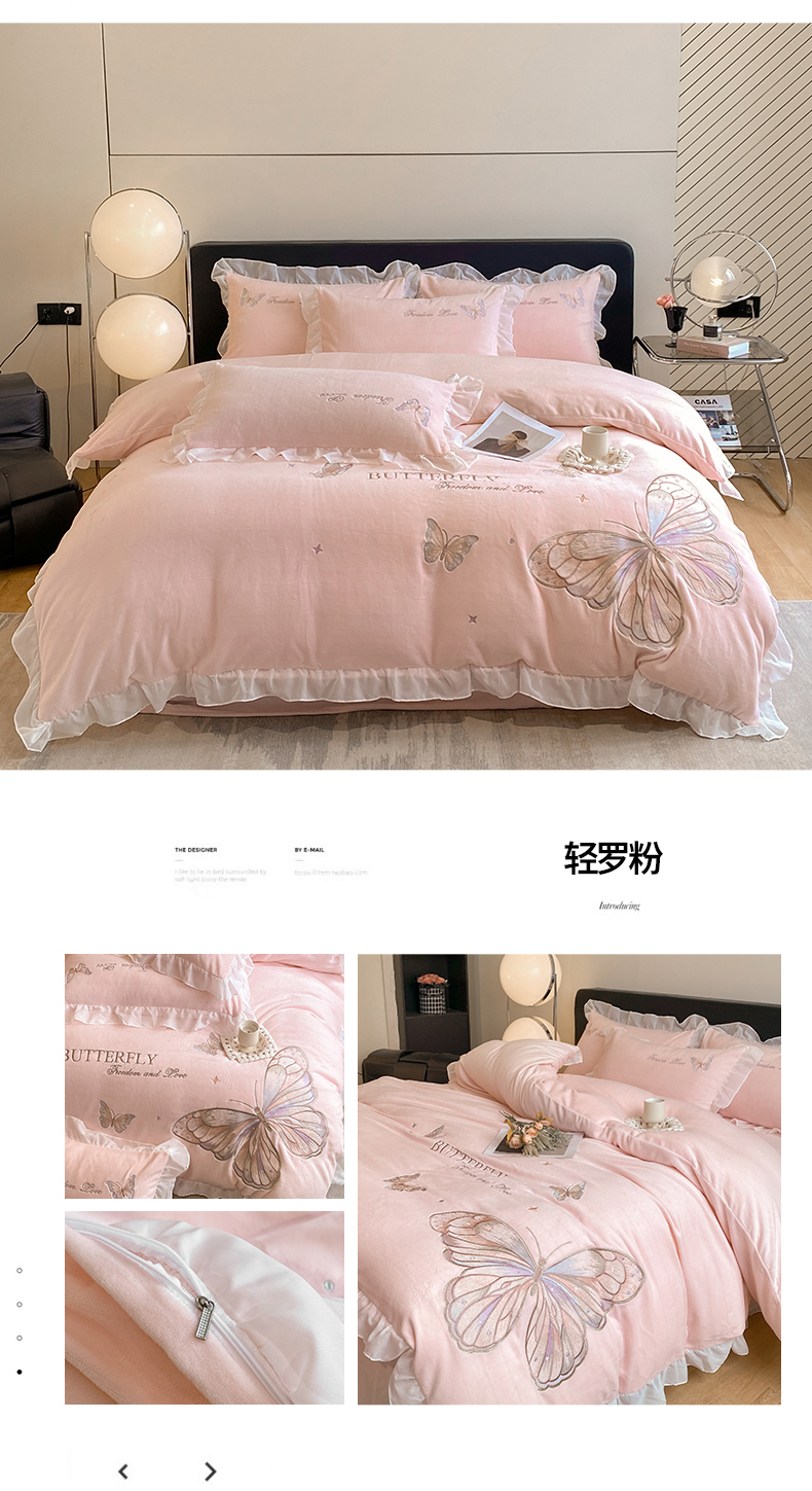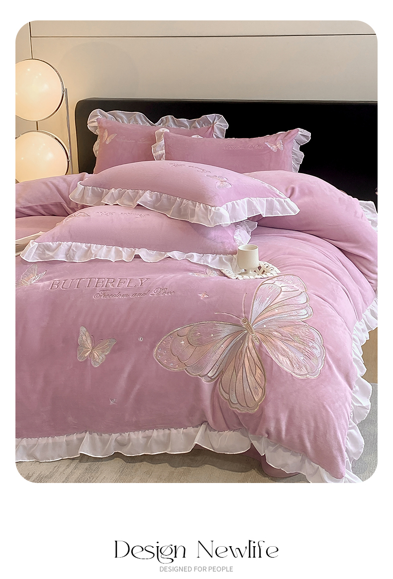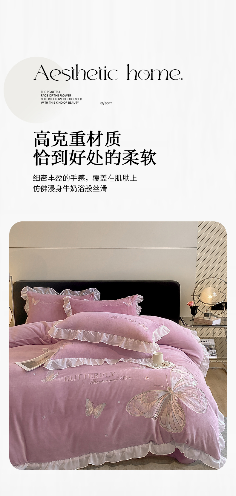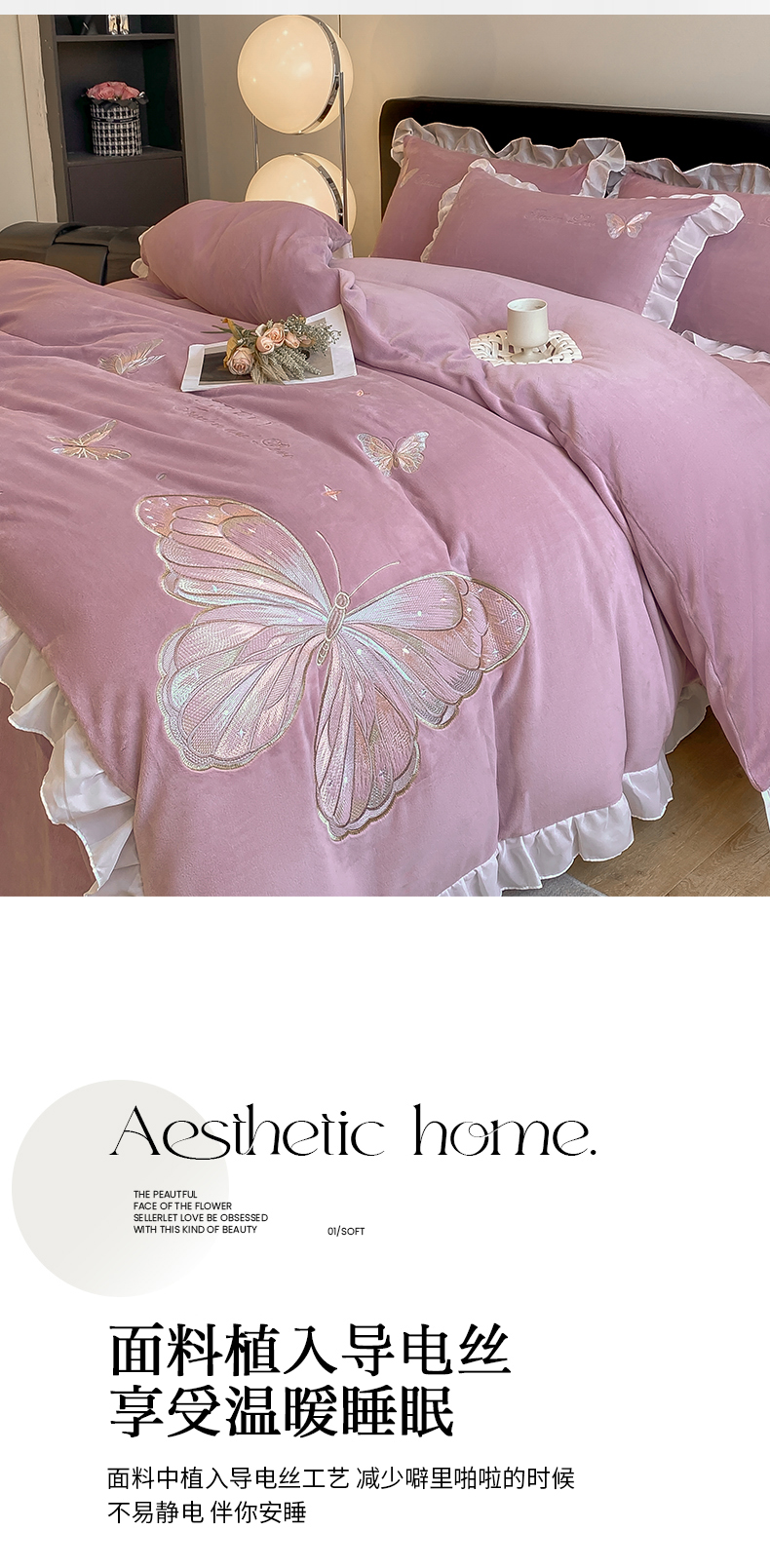 商品名称:木子家纺 2025新款牛奶绒纯色刺绣花边四件套 罗兰紫