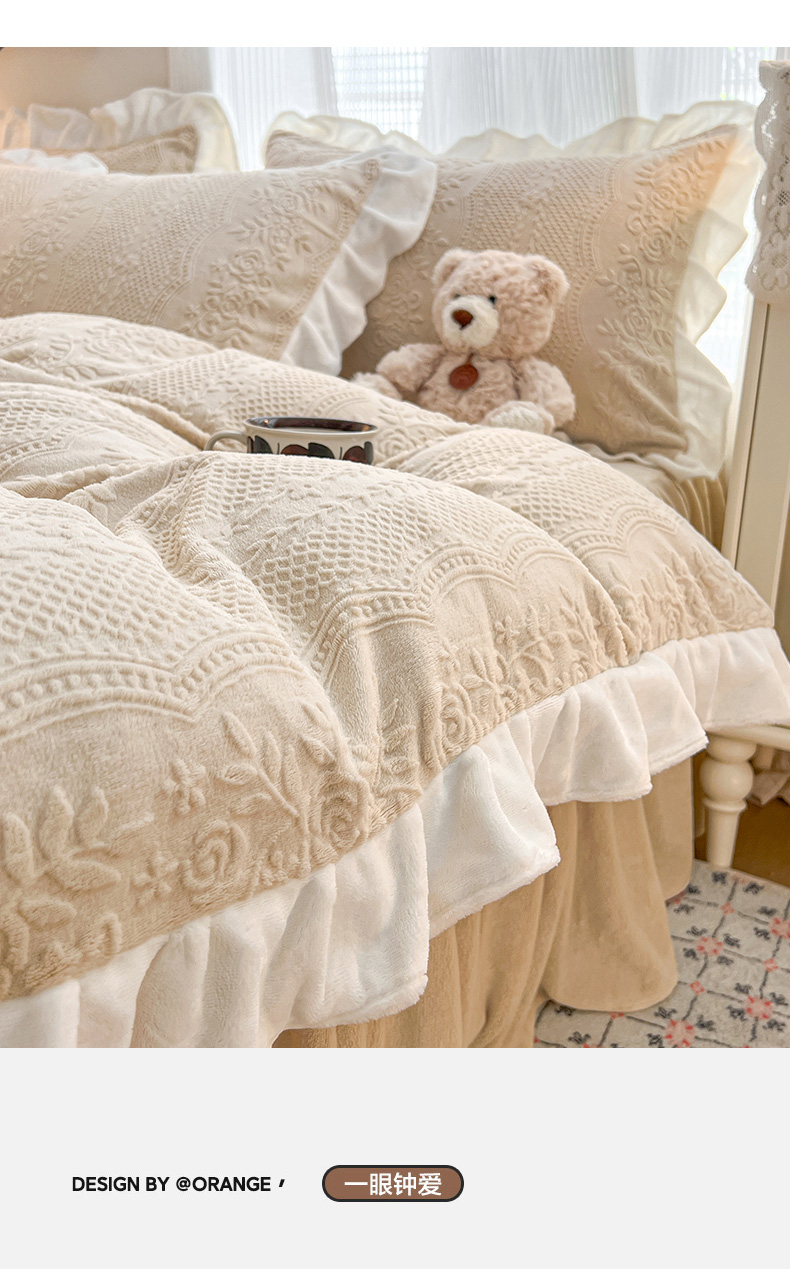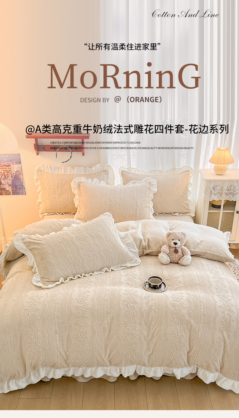 当前位置: 91家纺网 > 商品网购 > 床品套件 > 四件套 > 牛奶绒四件套 > 安哆啦家纺 2025新款法式雕花牛奶绒花边四件套 花精灵-绿
