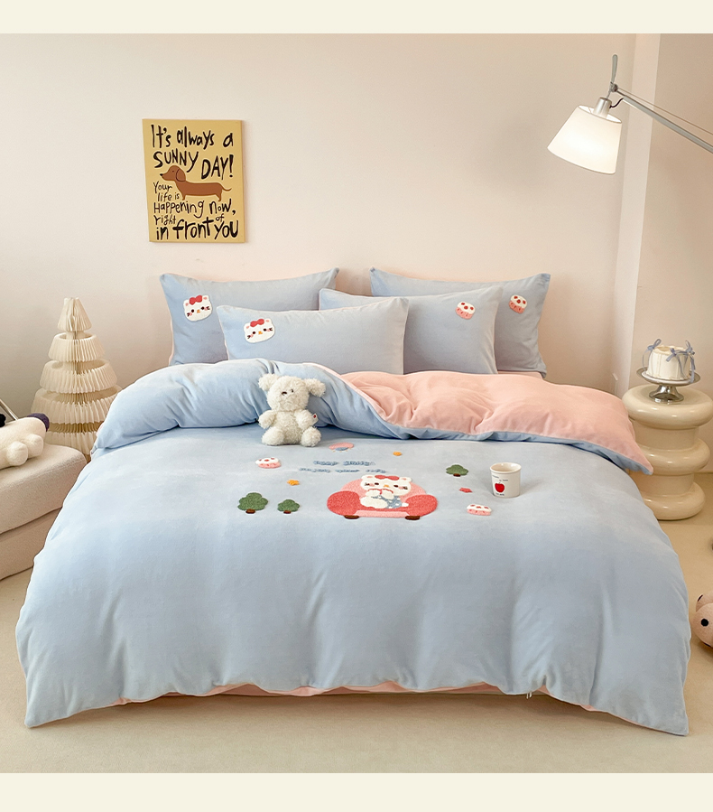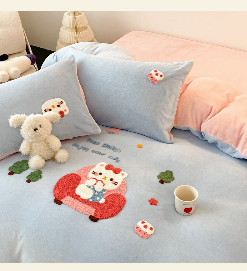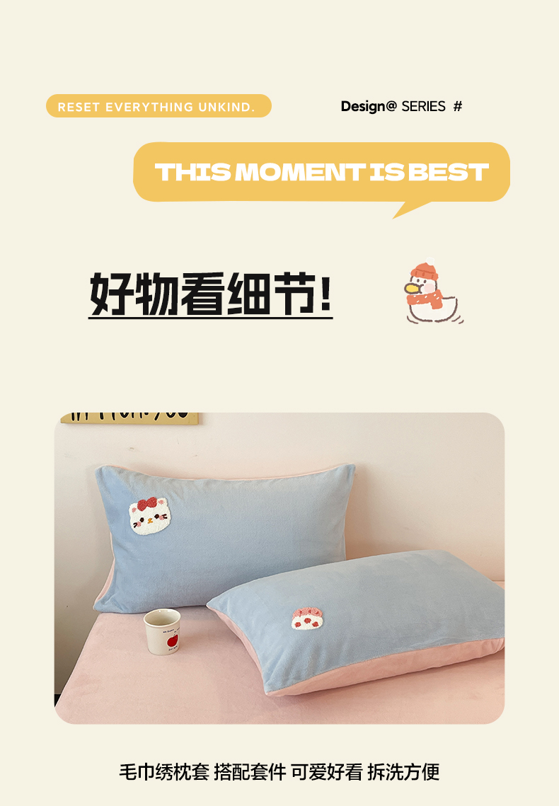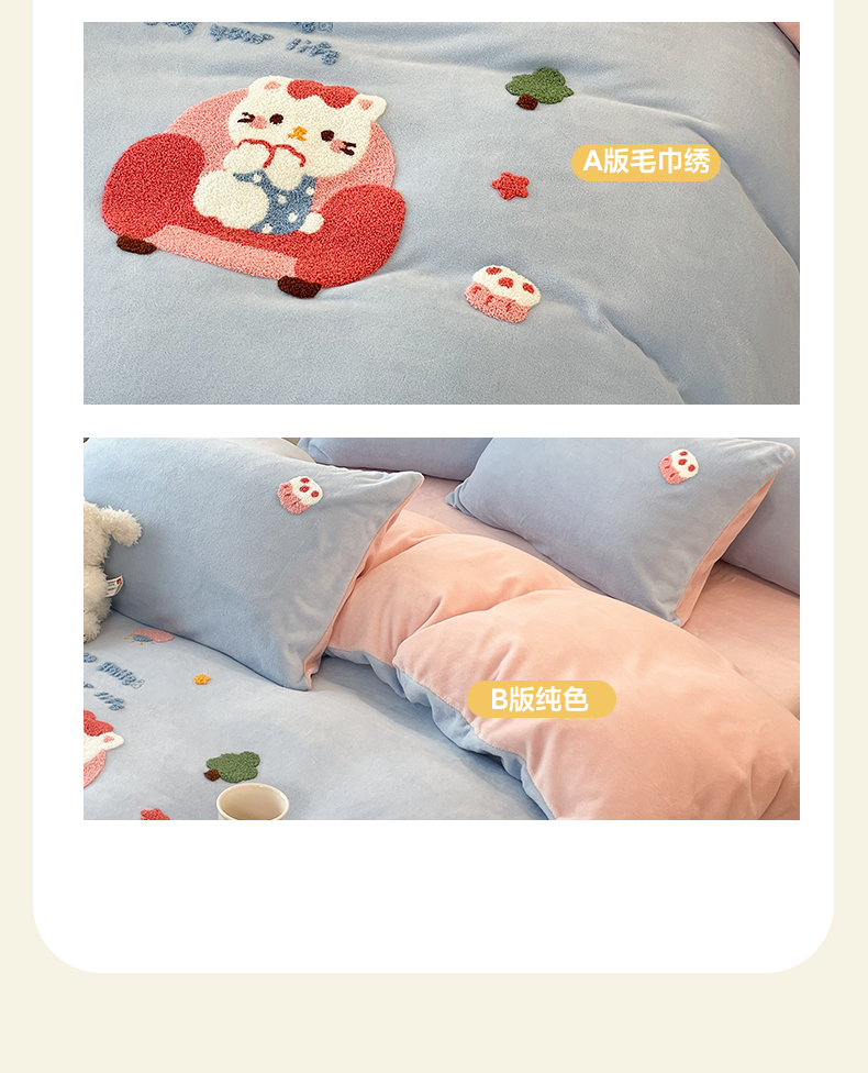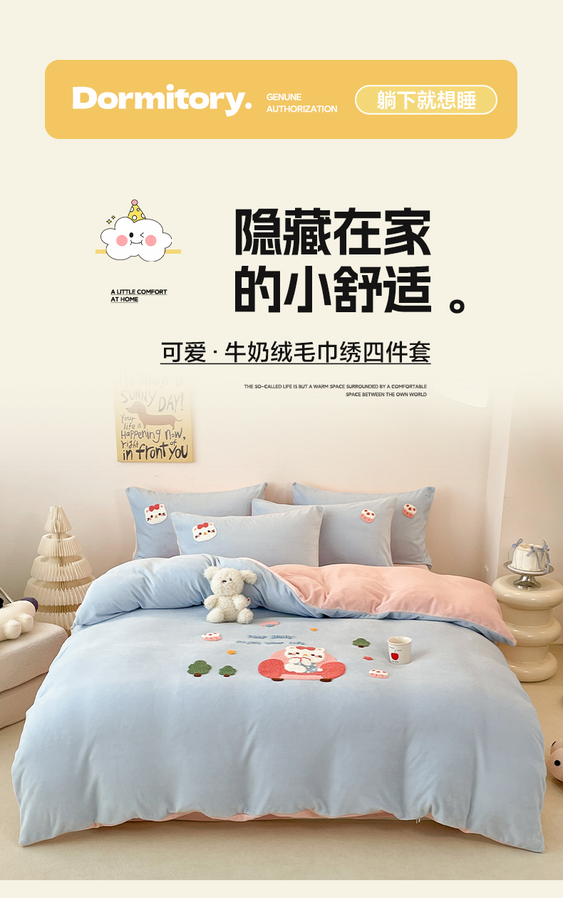 当前位置: 91家纺网 > 商品网购 > 床品套件 > 四件套 > 牛奶绒四件套 > 启发 2025新款牛奶绒毛巾绣四件套场景一 甜心猫咪
