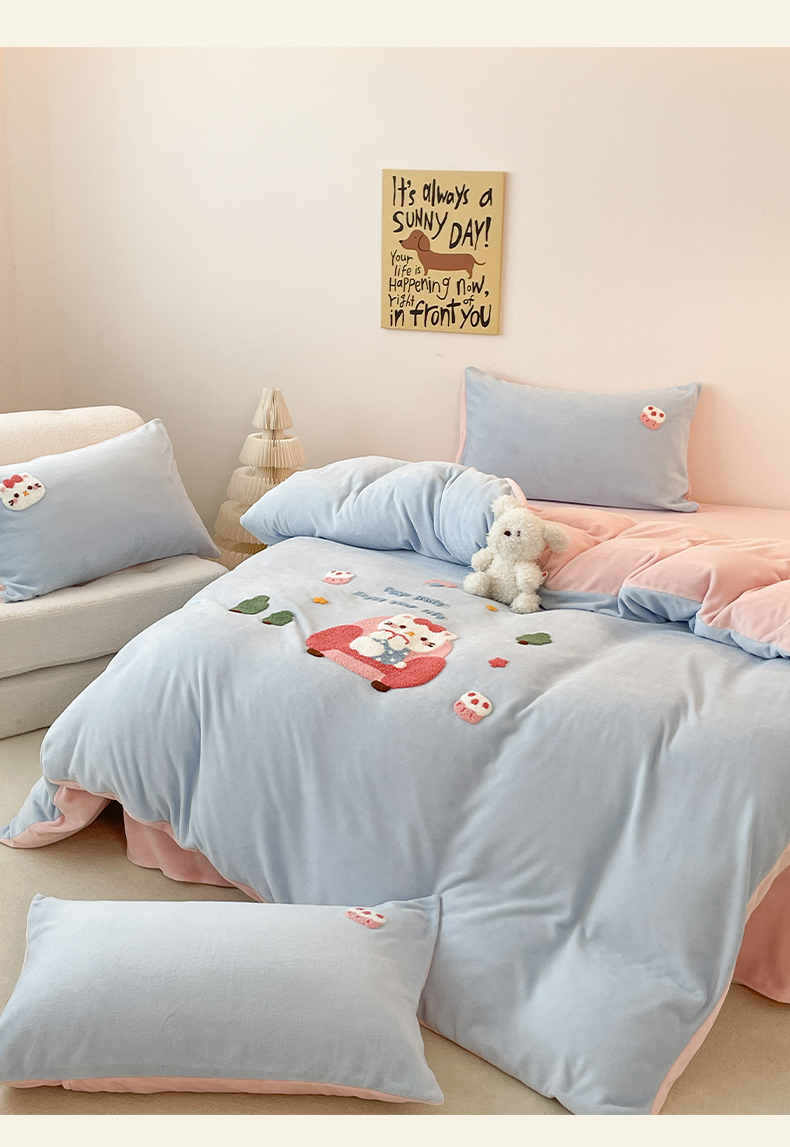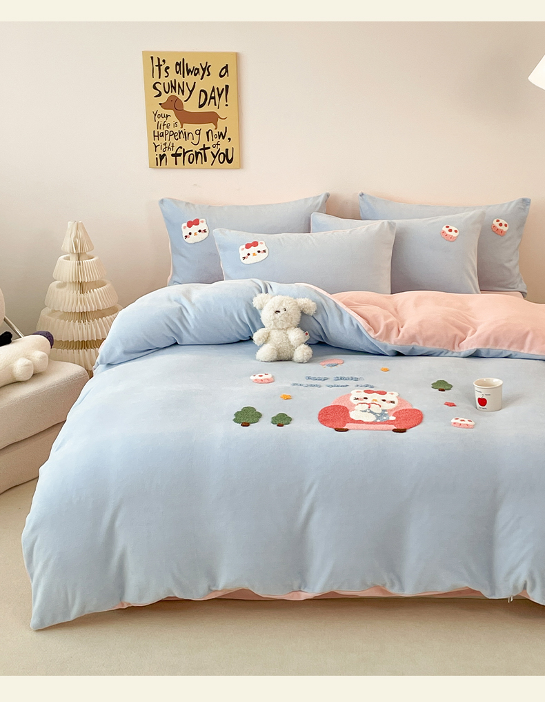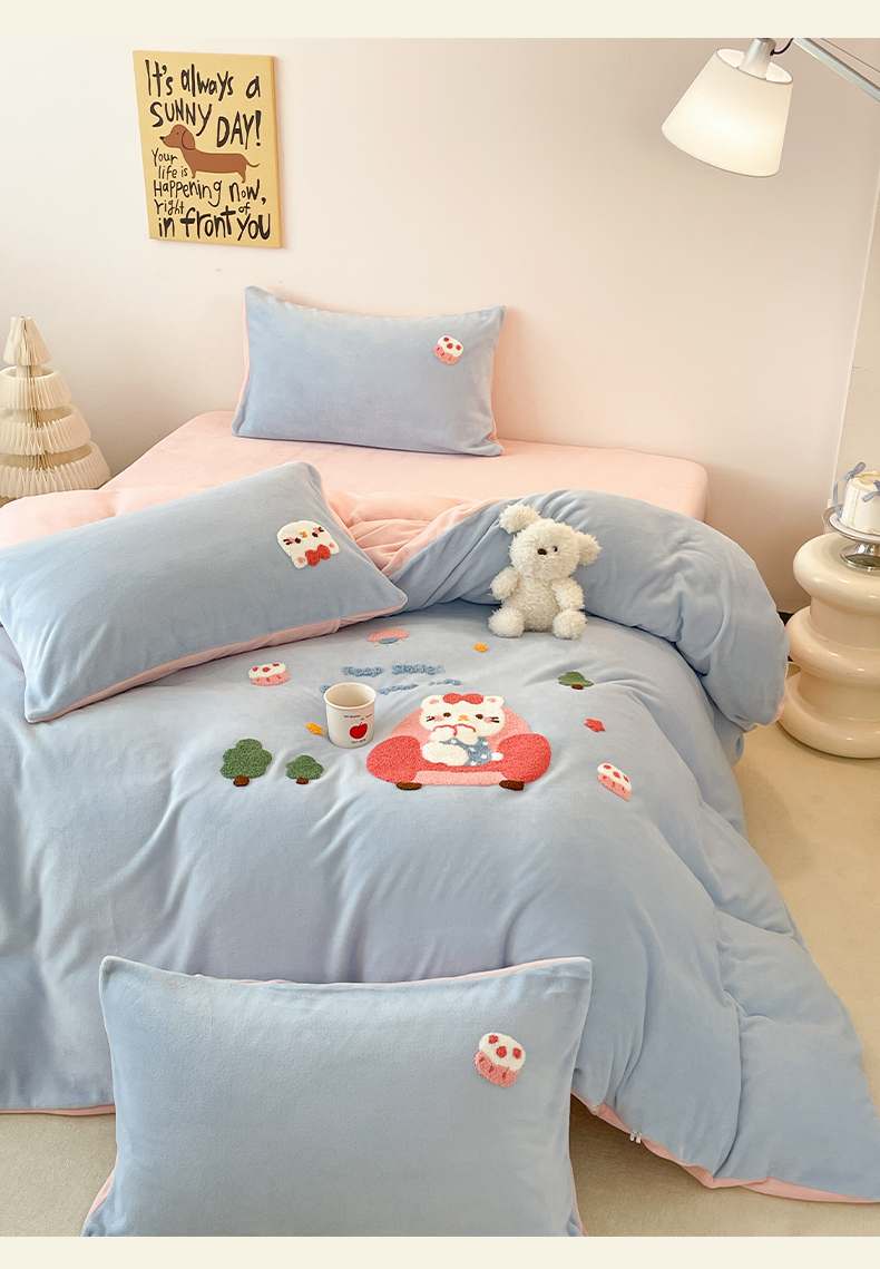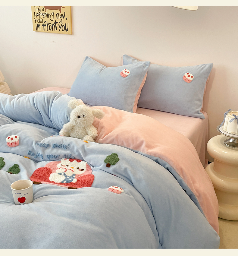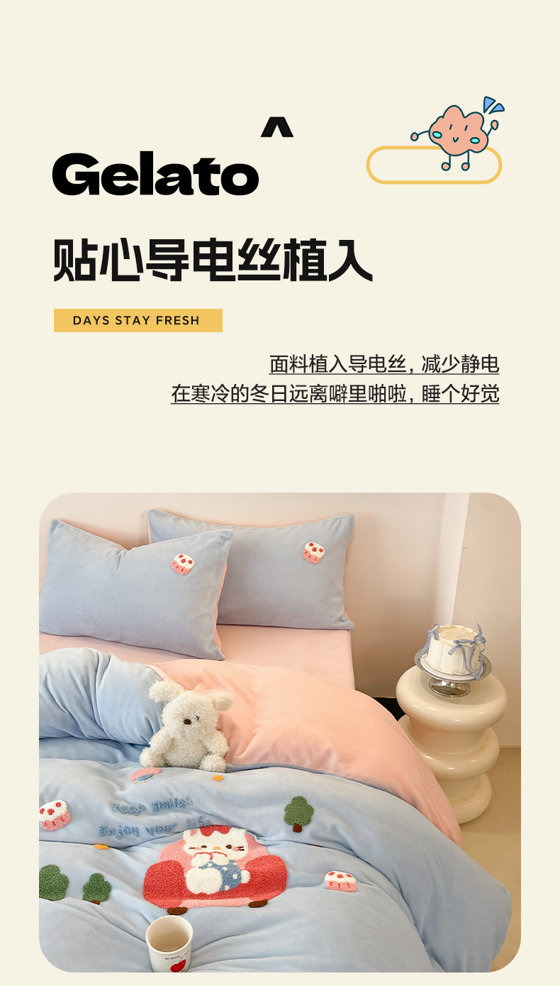 当前位置: 91家纺网 > 商品网购 > 床品套件 > 四件套 > 牛奶绒四件套 > 启发 2025新款牛奶绒毛巾绣四件套场景一 甜心猫咪