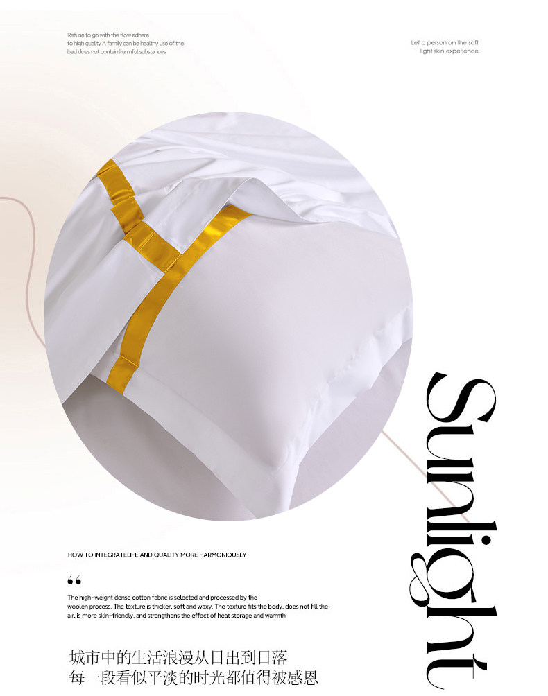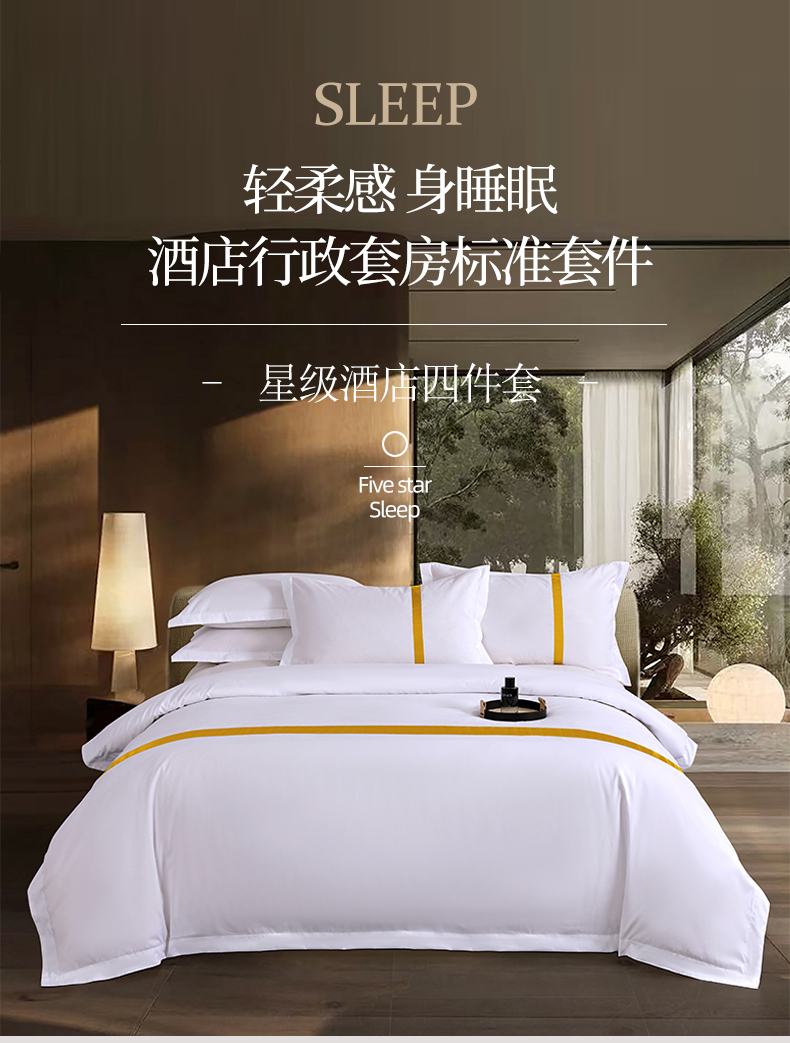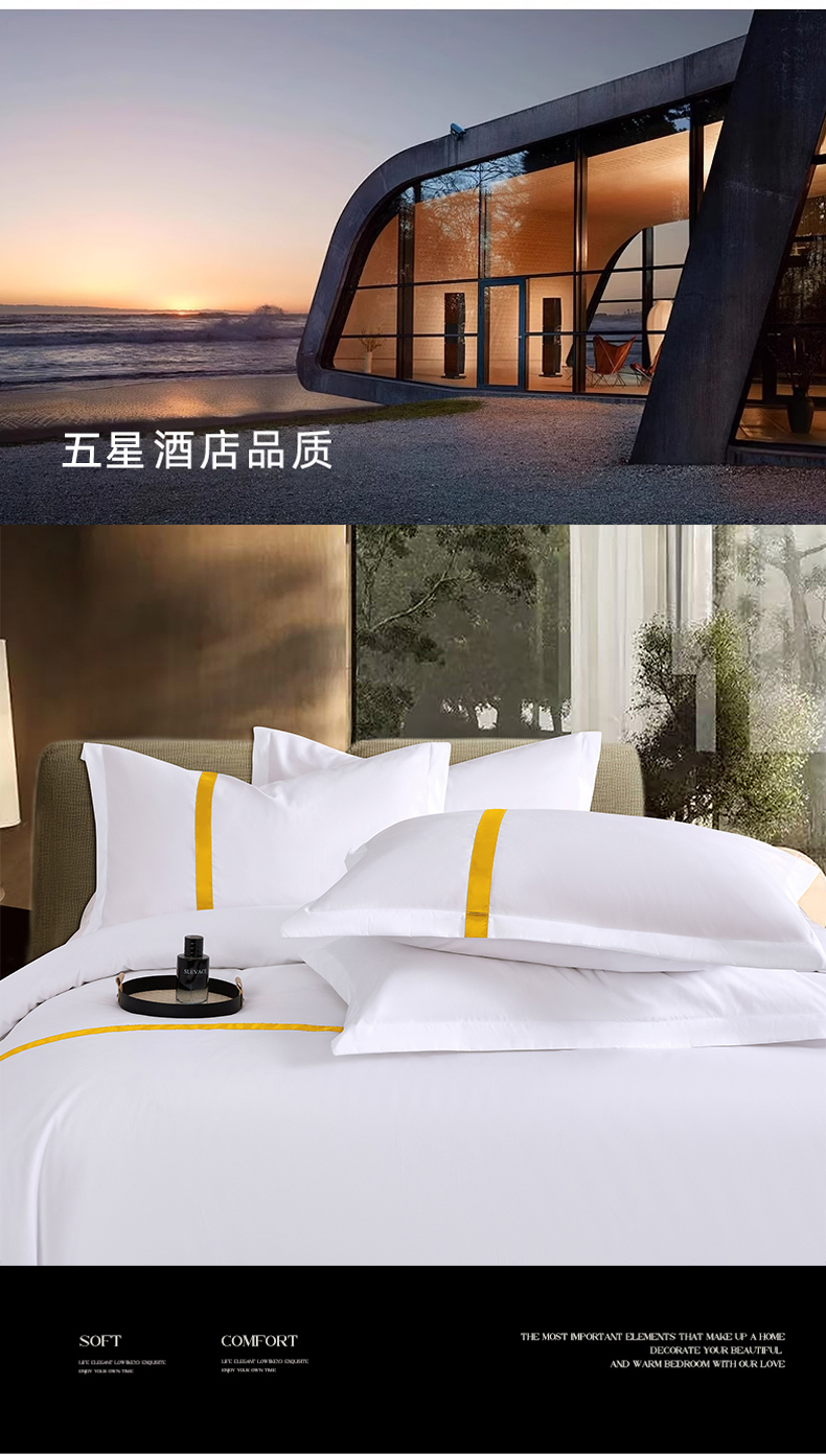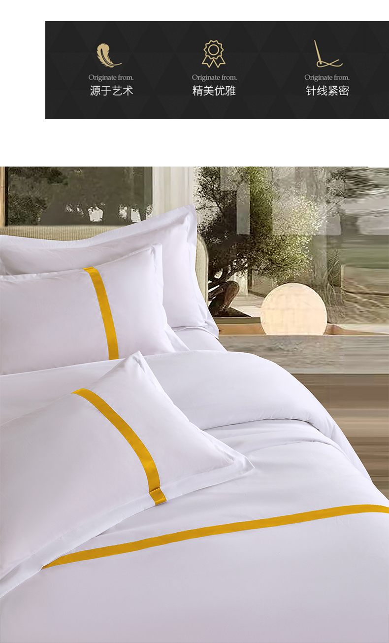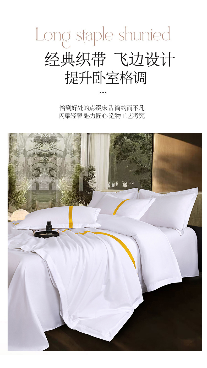 当前位置: 91家纺网 > 商品网购 > 床品套件 > 四件套 > 其它四件套 > 罗菲尼酒店用品 2025新款高仿棉织带酒店宾馆四件套套件经典织带款 经典织带-金黄