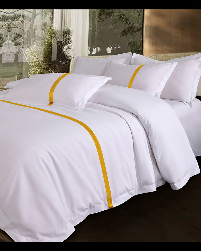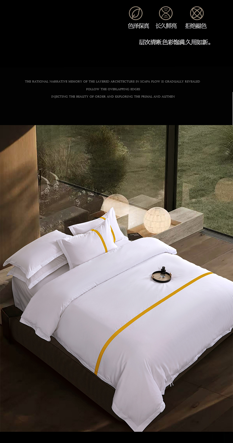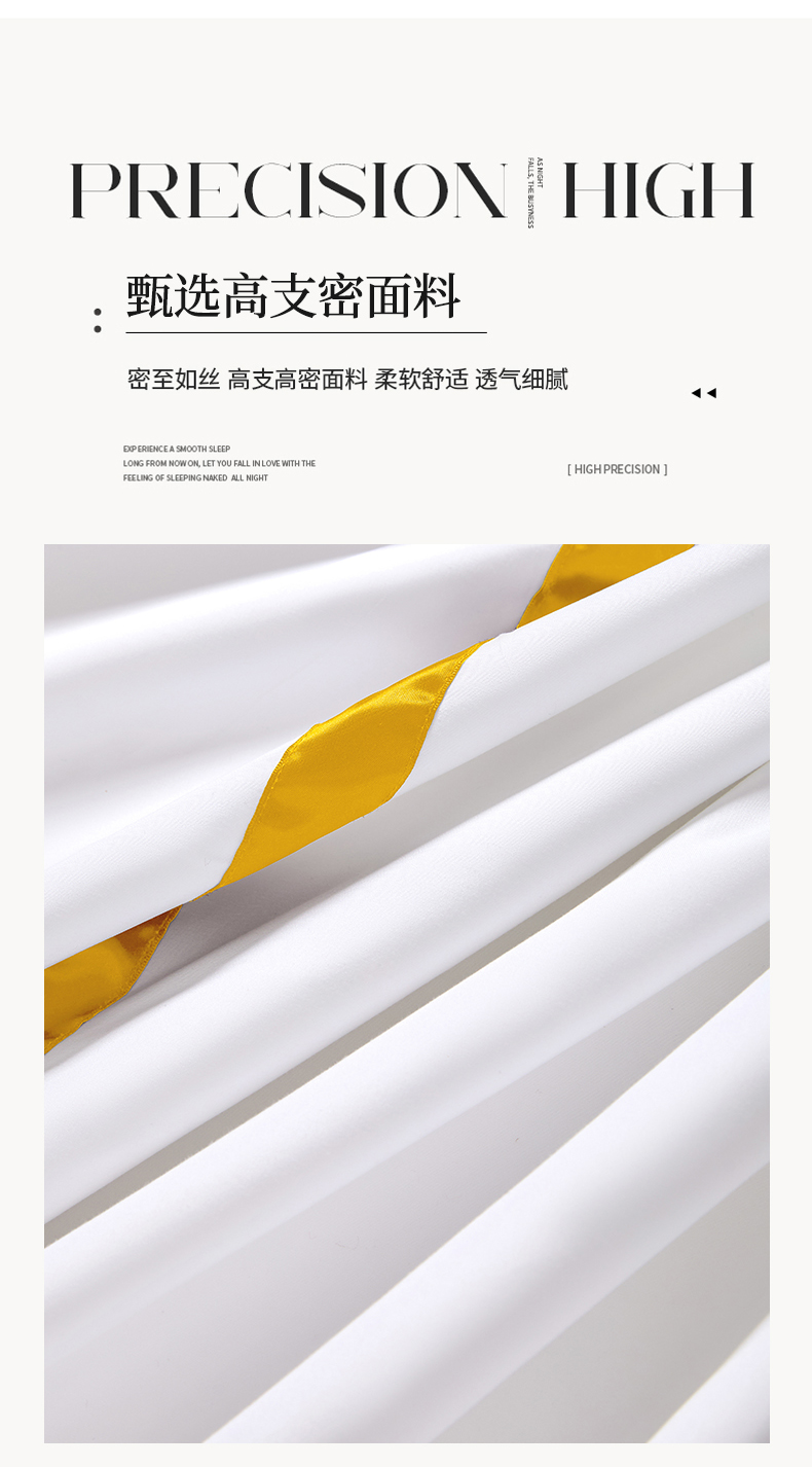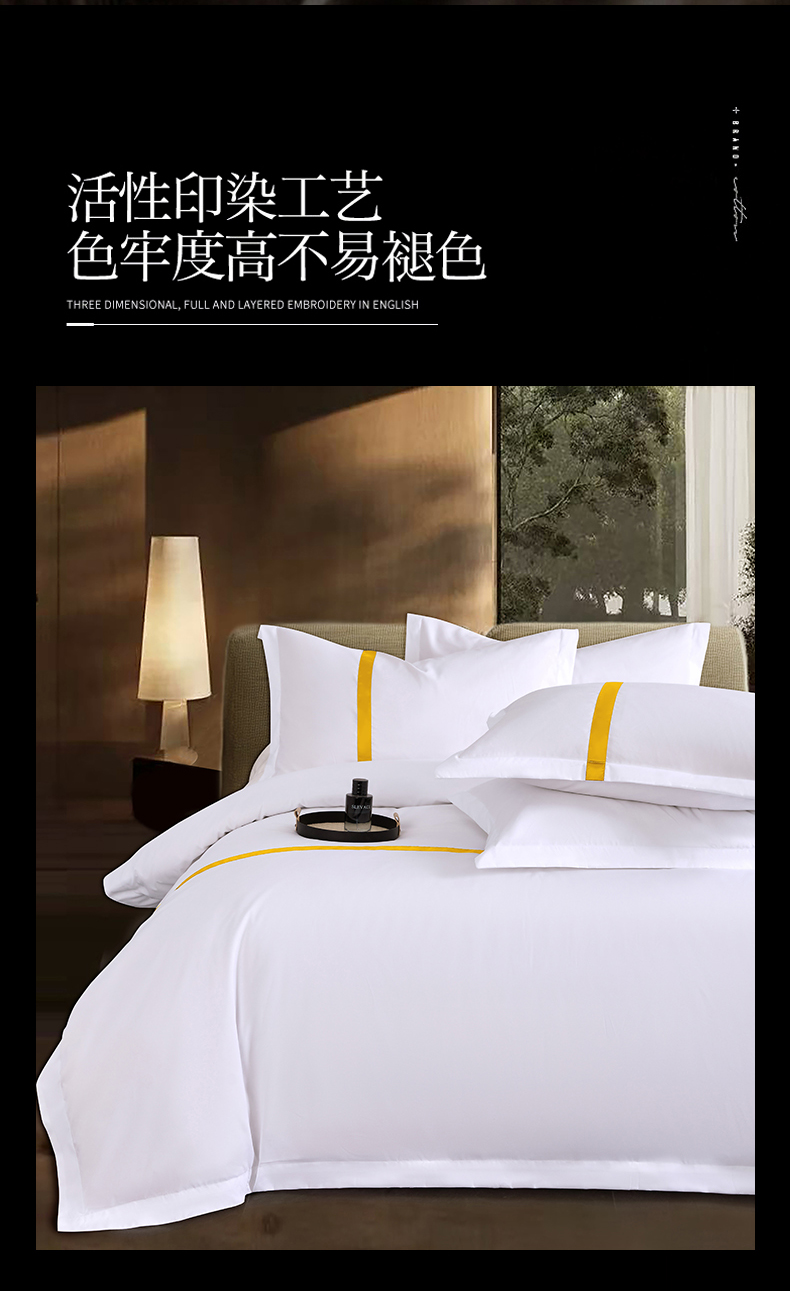 当前位置: 91家纺网 > 商品网购 > 床品套件 > 四件套 > 其它四件套 > 罗菲尼酒店用品 2025新款高仿棉织带酒店宾馆四件套套件经典织带款 经典织带-金黄