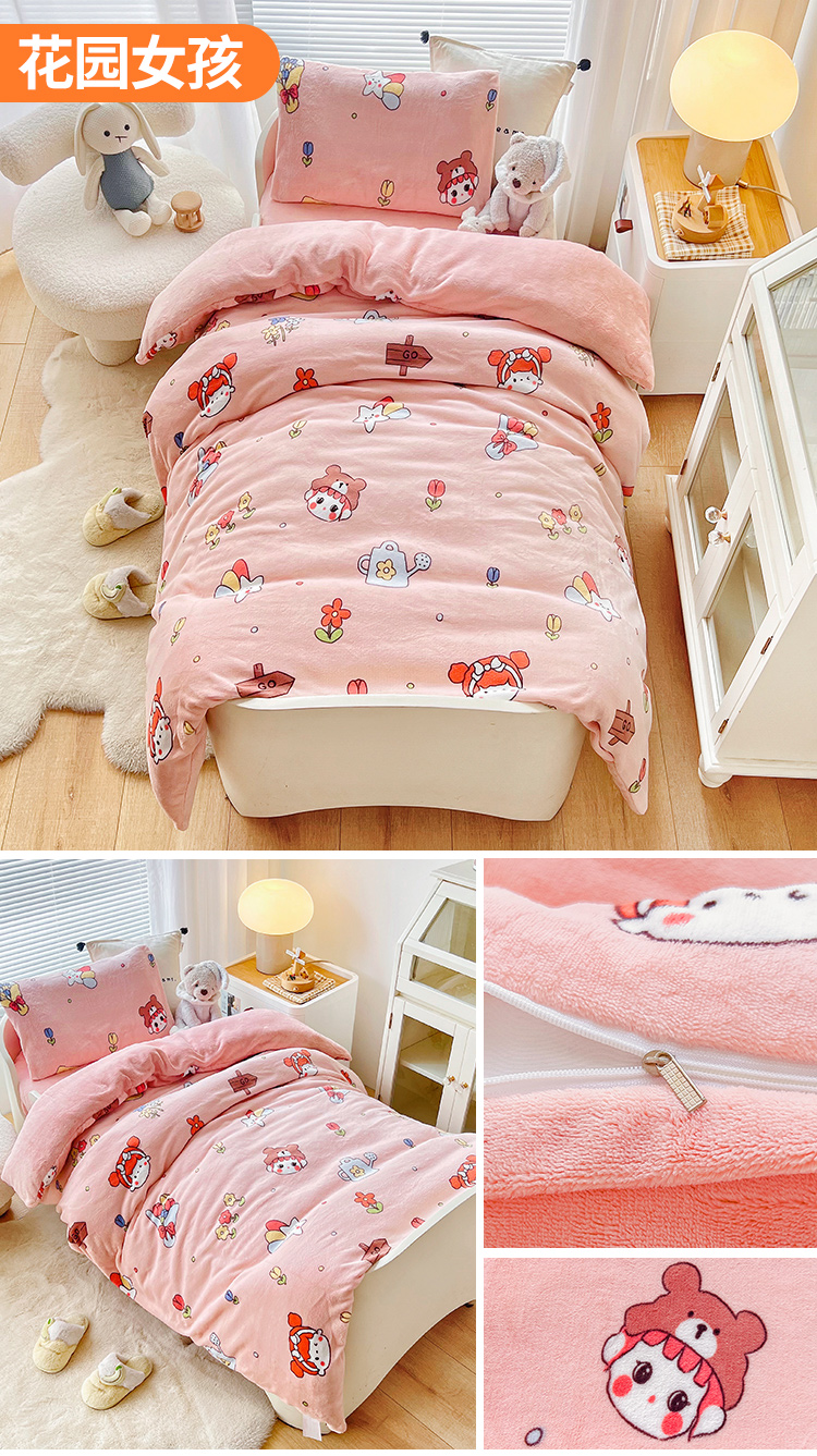 当前位置: 91家纺网 > 商品网购 > 床品套件 > 三件套 > 嗨生活 2025新款加厚230克牛奶绒儿童三件套幼儿园三件套 花园女孩