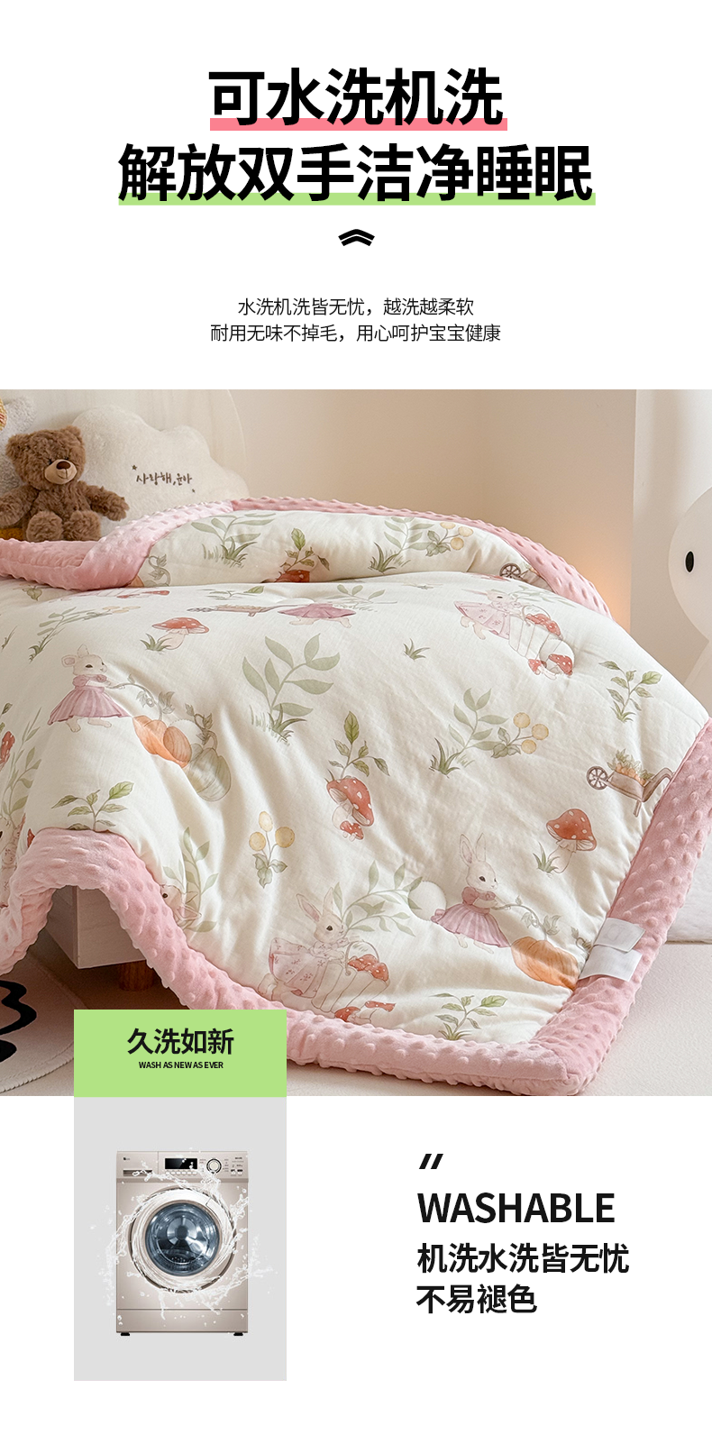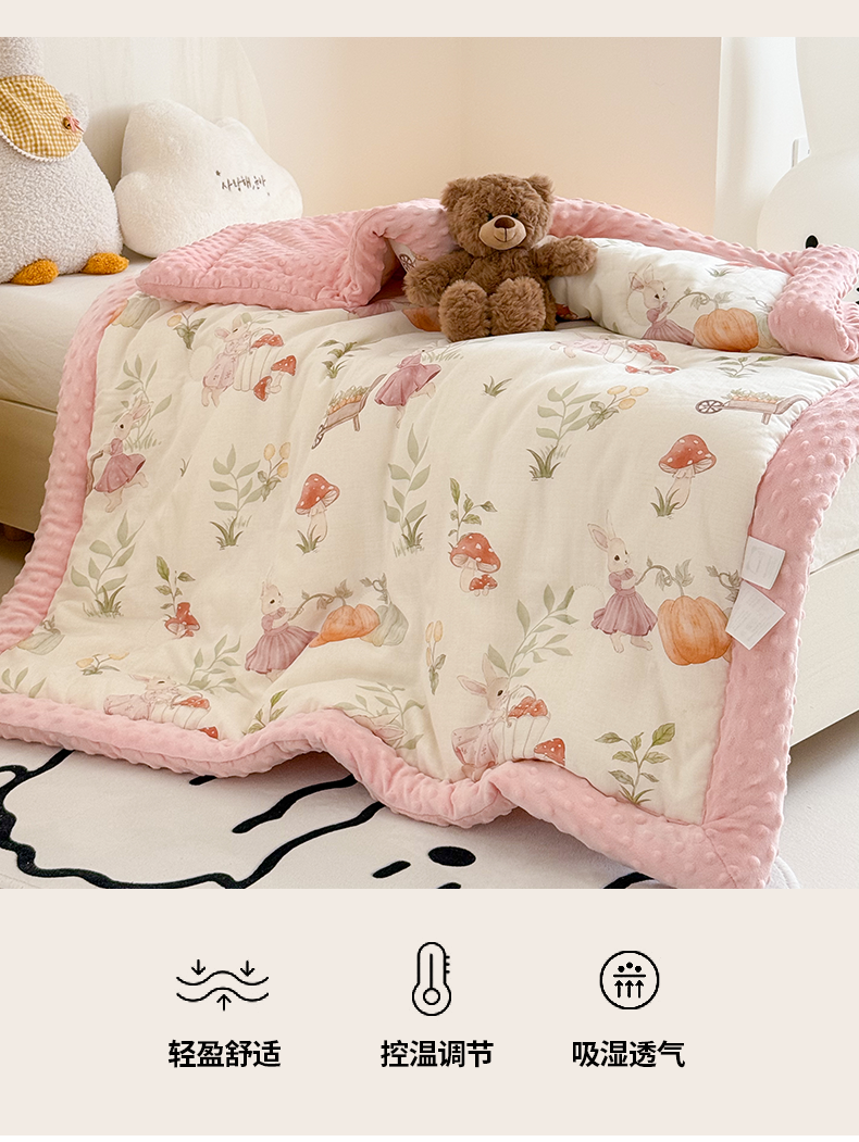 (总)嗨生活 2025新款全棉双层纱豆豆被 儿童被 春秋被 冬被 幼儿园被子,草莓兔兔,花丛小兔,米菲兔,汽车乐园,挖机恐龙,玩具屋,小海豚,熊猫盼盼