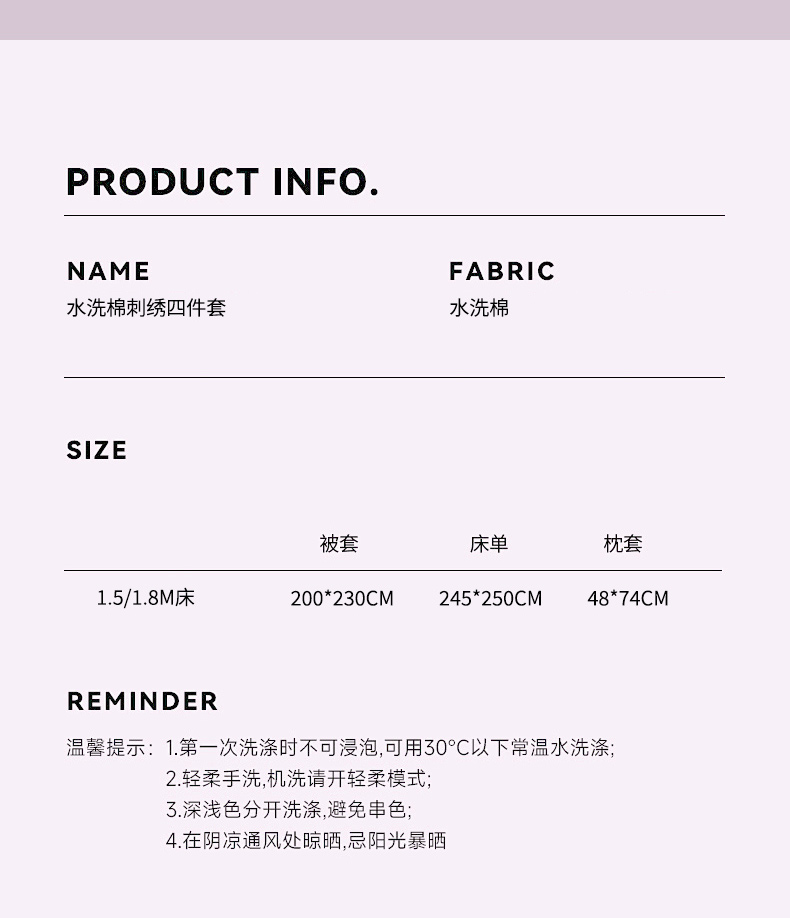 (总)文黛家居 2025新款高克重水洗棉绣花四件套-梦恋,梦恋-粉,梦恋-灰,梦恋-果绿,梦恋-浅蓝,梦恋-紫
