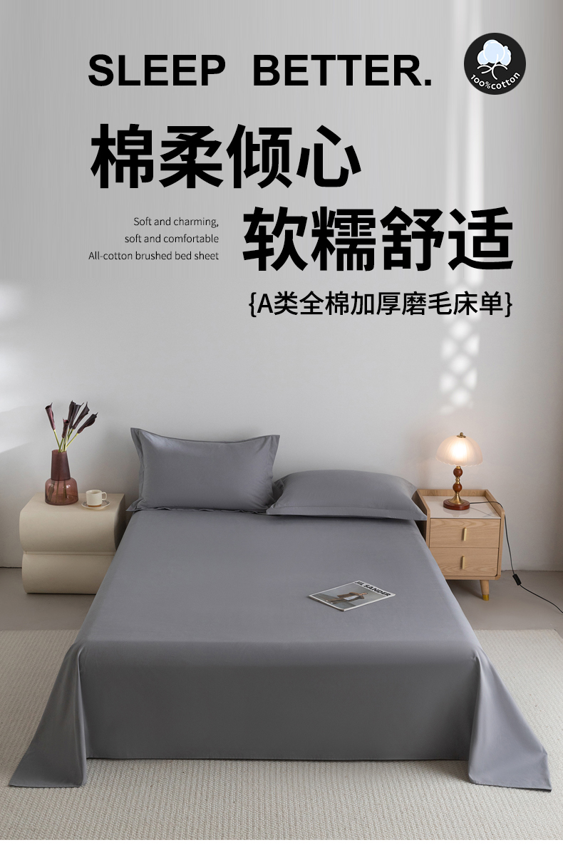 宝时兰 2025新款加厚100%全棉高支高密长绒棉纯色磨毛床单纯棉单件床单-系列二【提供买家秀/可定制其他尺寸】 深空灰