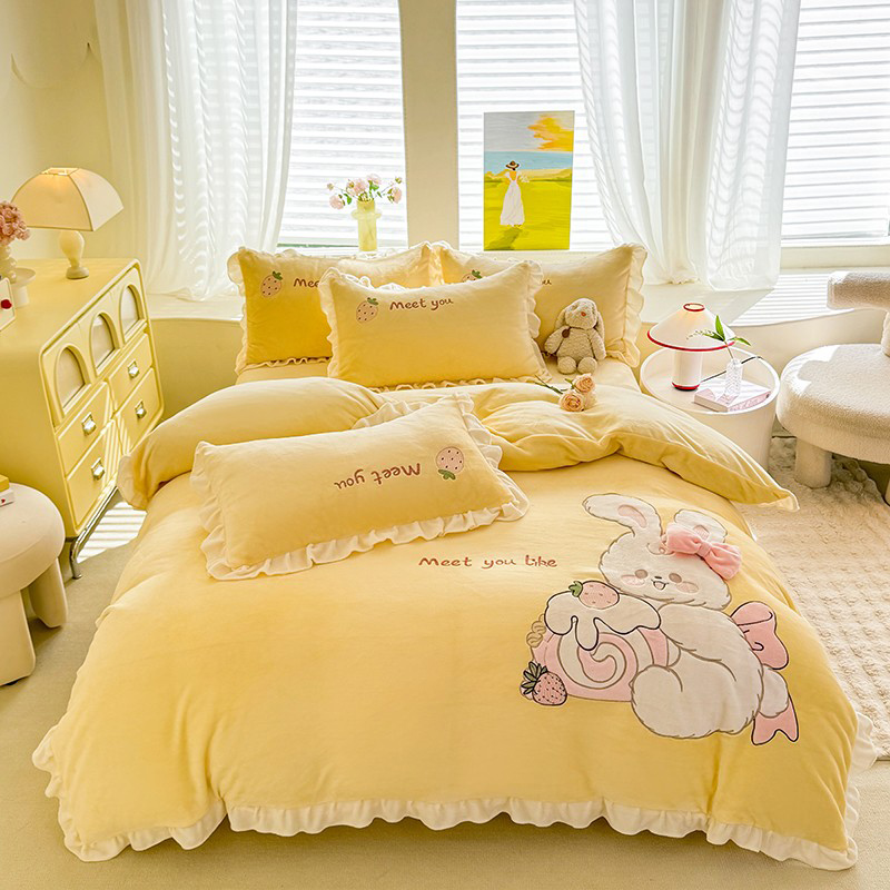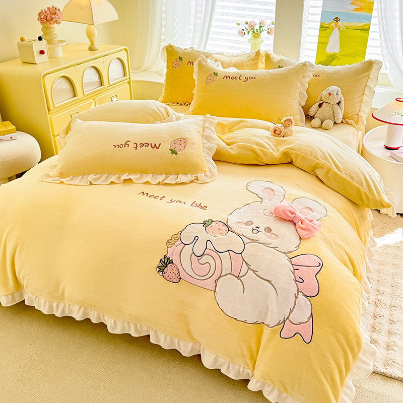 漫布云2025秋冬新品大版卡通230g牛奶绒兔毛贴布绣婴儿绒四件套--可爱兔系列 可爱兔-暖黄