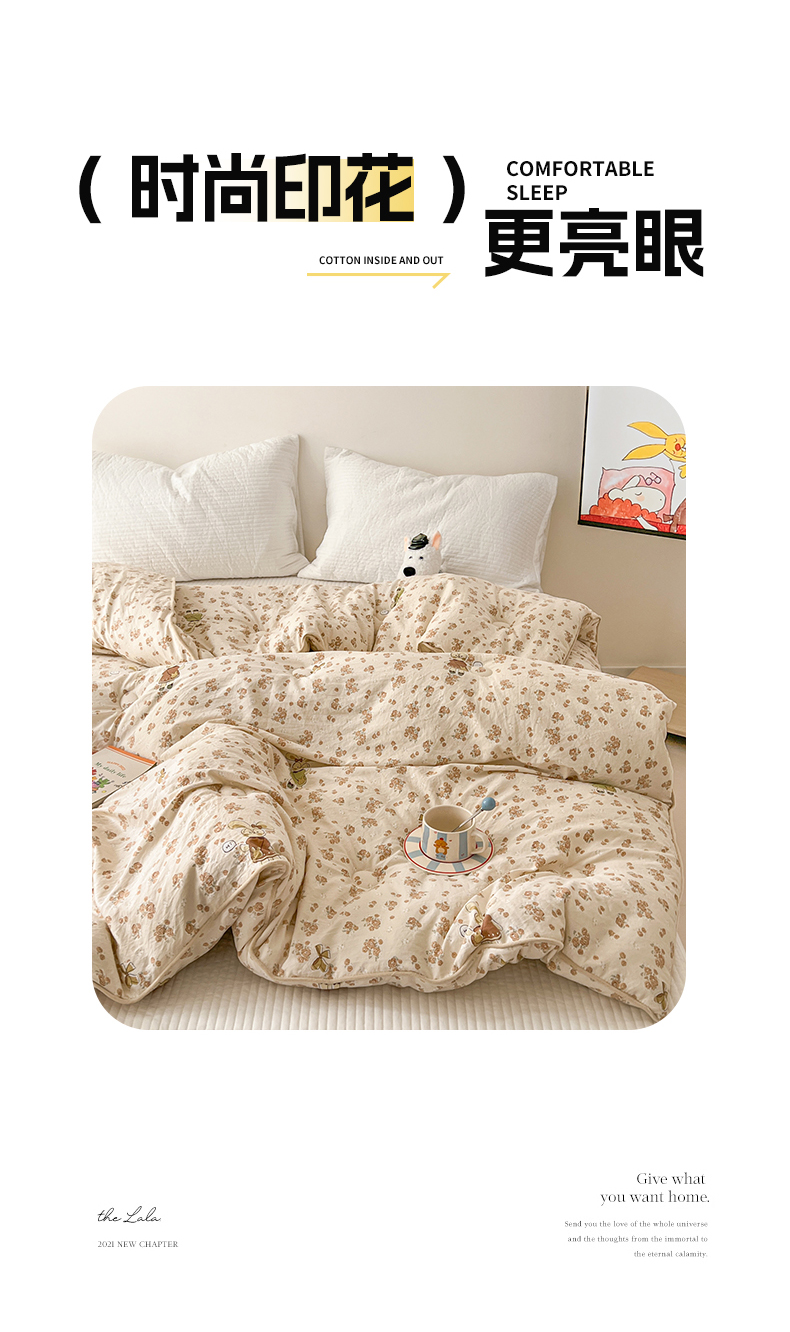 (总)漫仙阁家纺 2026新款纯棉学生宿舍A版100%新疆棉B版古法水洗三件套全棉四件套,草莓甜心,戚风浅夏,粉色蜜恋,哨兵熊,告白,奇遇记,星星人,酷迪,小木马,粉桃,朝花夕拾,礼物熊,抹茶花语,南瓜派对,奶酪狗