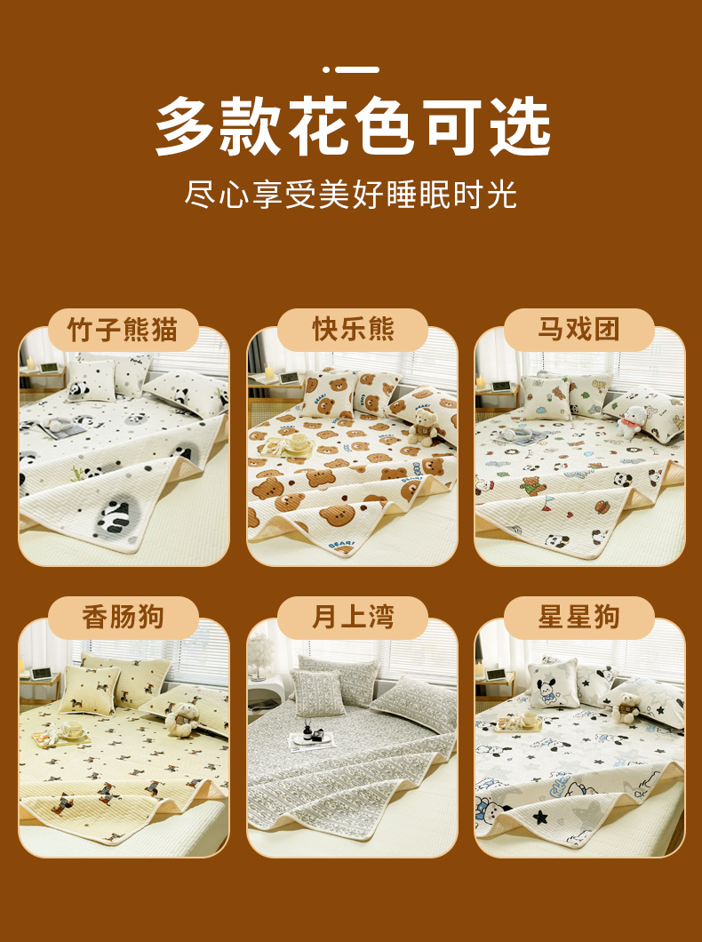 (总)拾小柒 2025年新款夹棉防滑床盖绗缝褥子床垫保护垫,糯糯棉-高西地,糯糯棉-马戏团,糯糯棉-香肠狗,糯糯棉-竹子熊猫,糯糯棉-天使熊