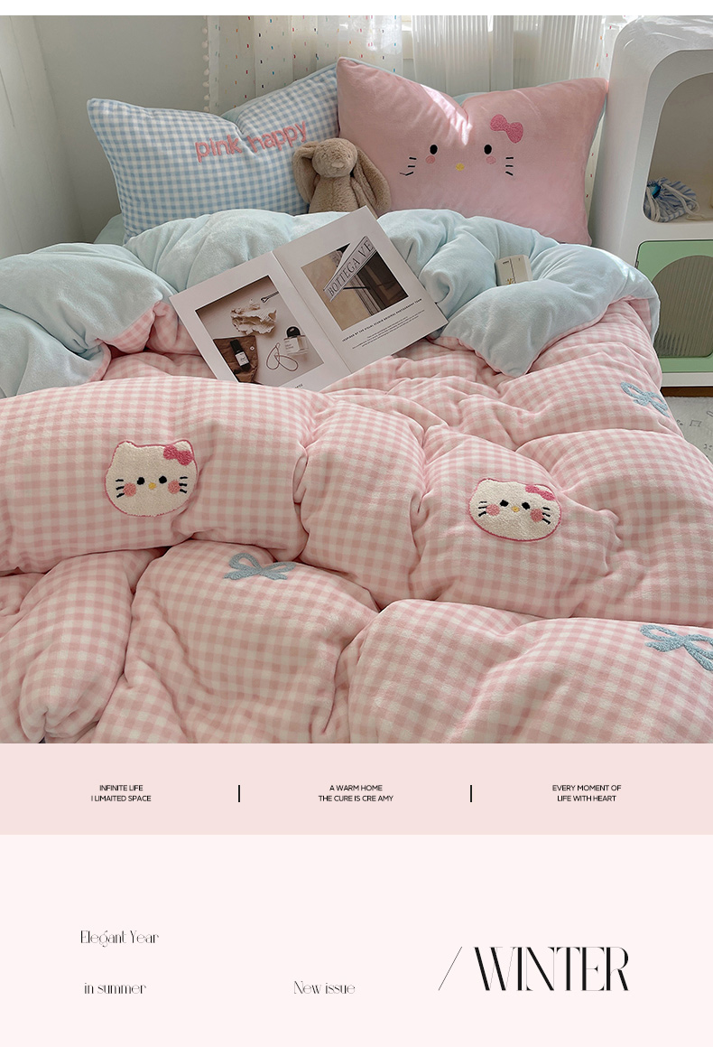 (总)顾里家纺 2024新款Kitten阳离子猫咪立体牛奶绒四件套,白心猫咪,粉心猫咪,蓝心猫咪,洛心猫咪,紫心猫咪