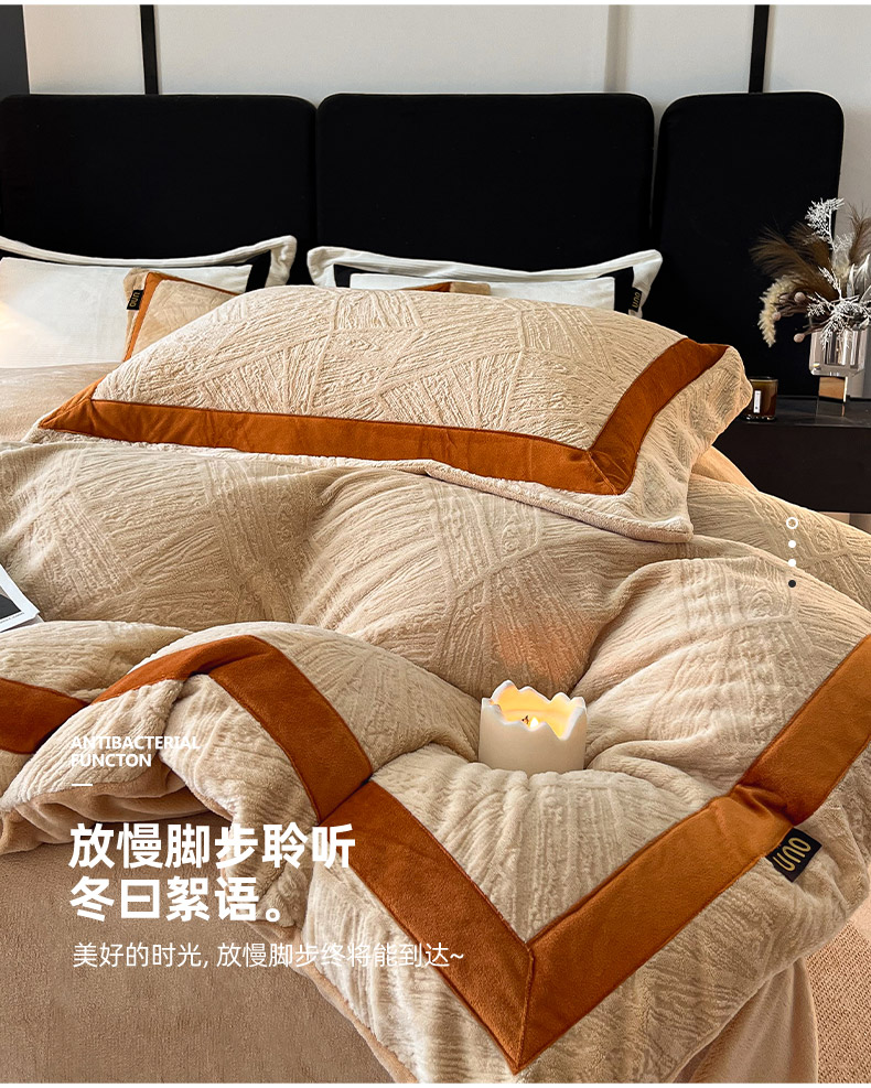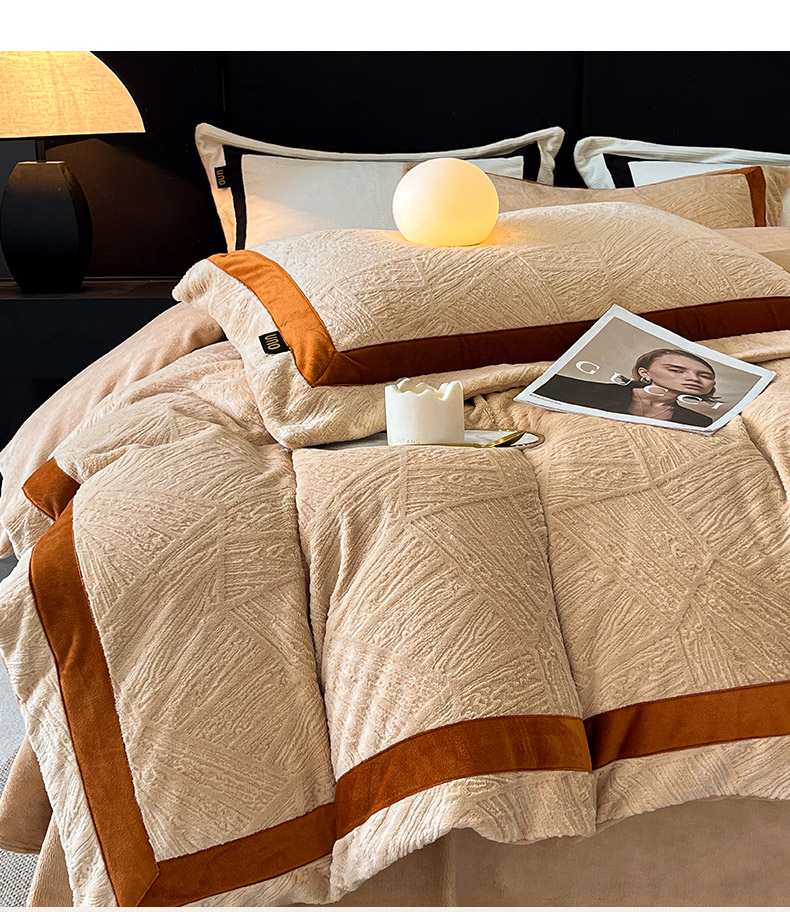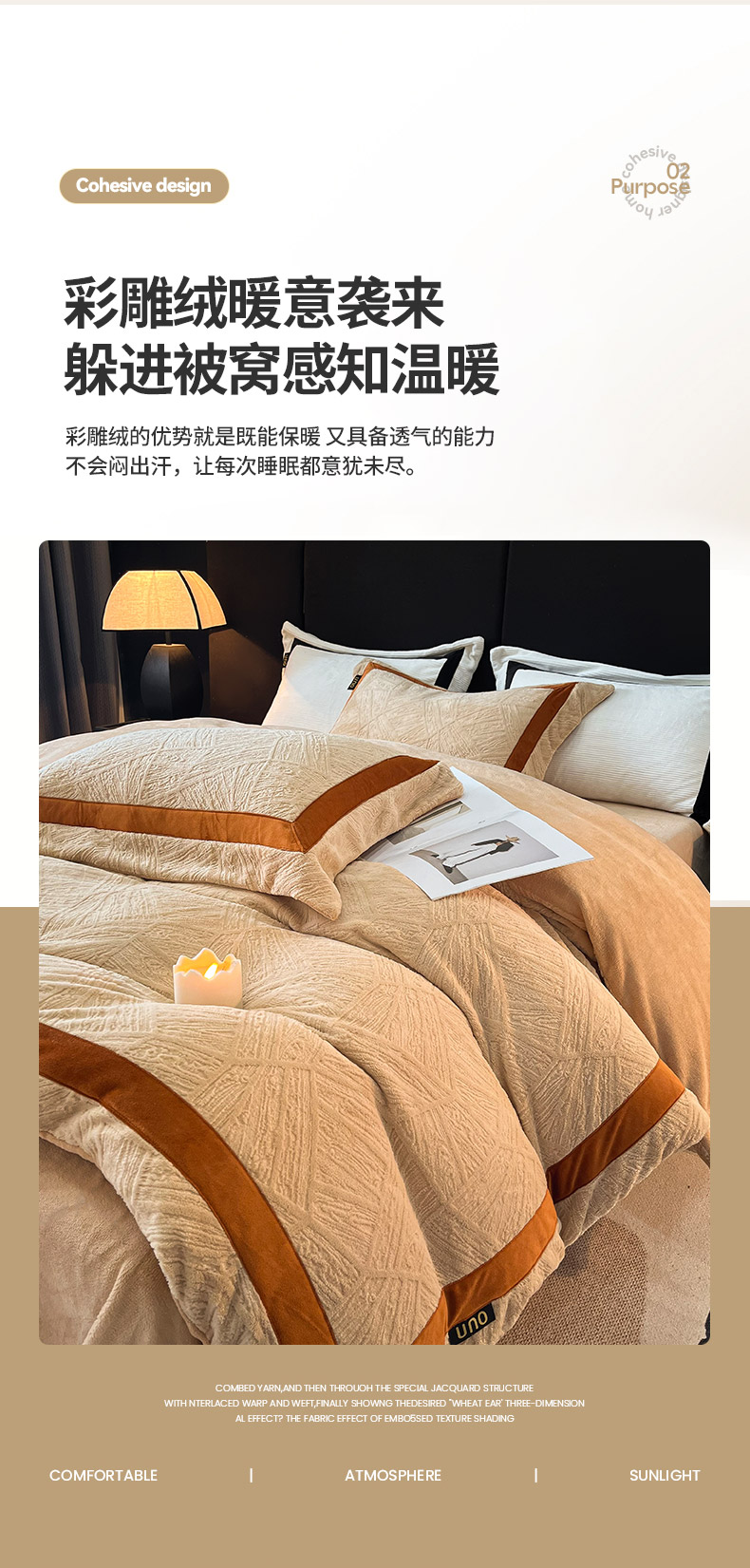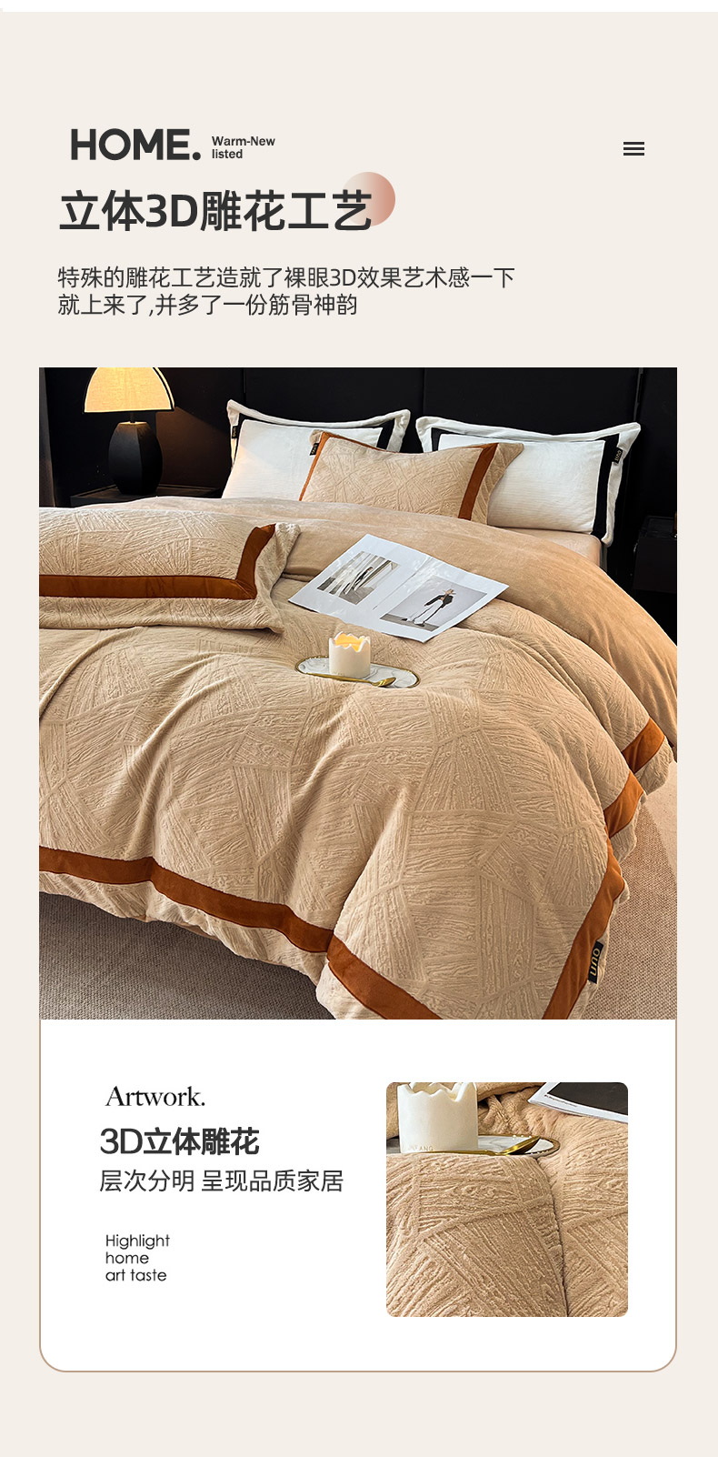 吾诺家居 吾诺 2025绽放系列--手工织带款雕花牛奶绒四件套 叶纹驼
