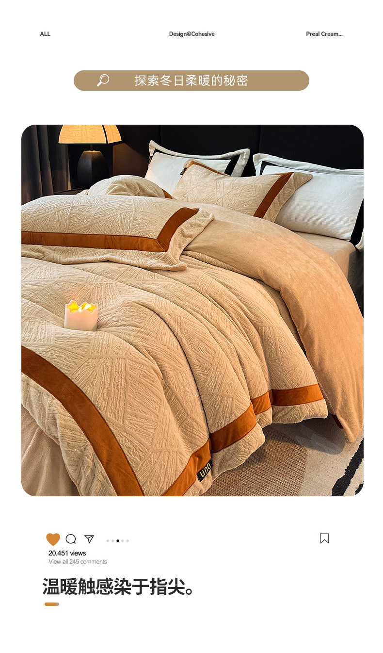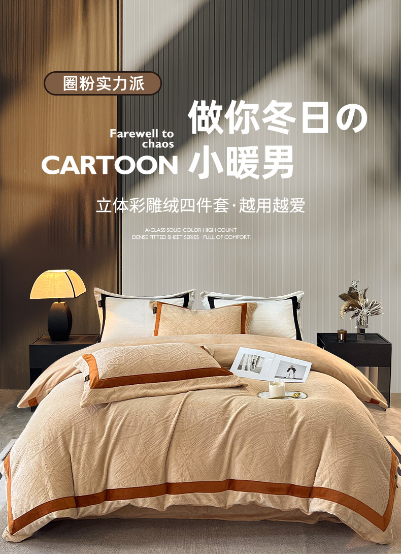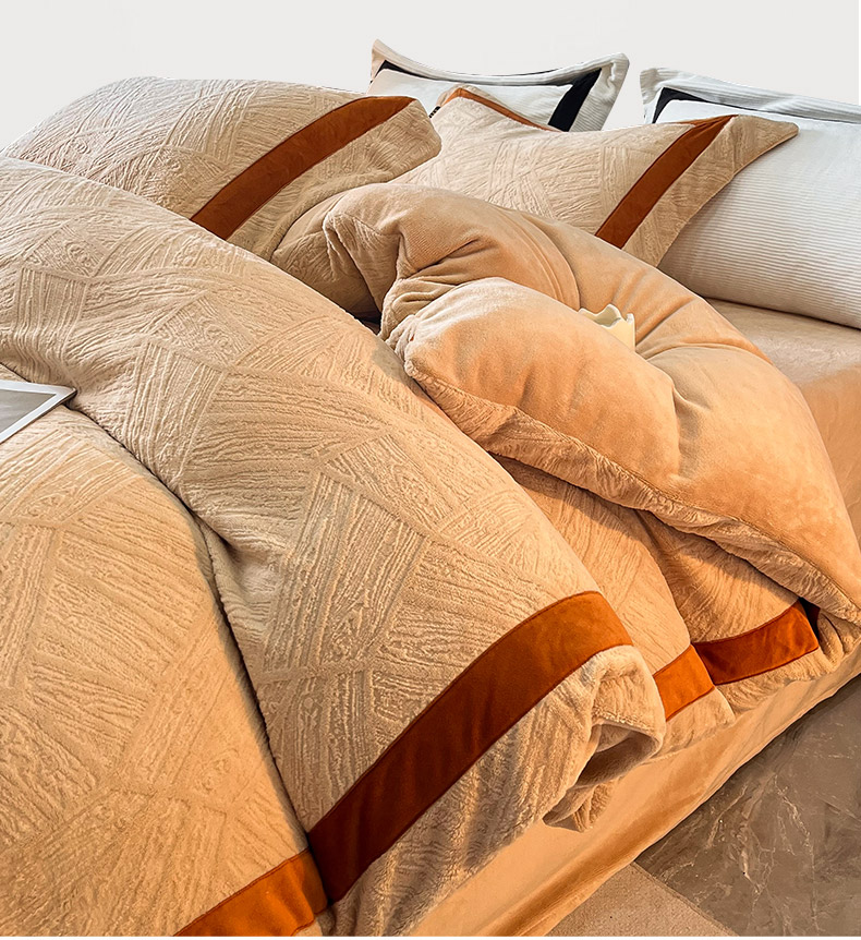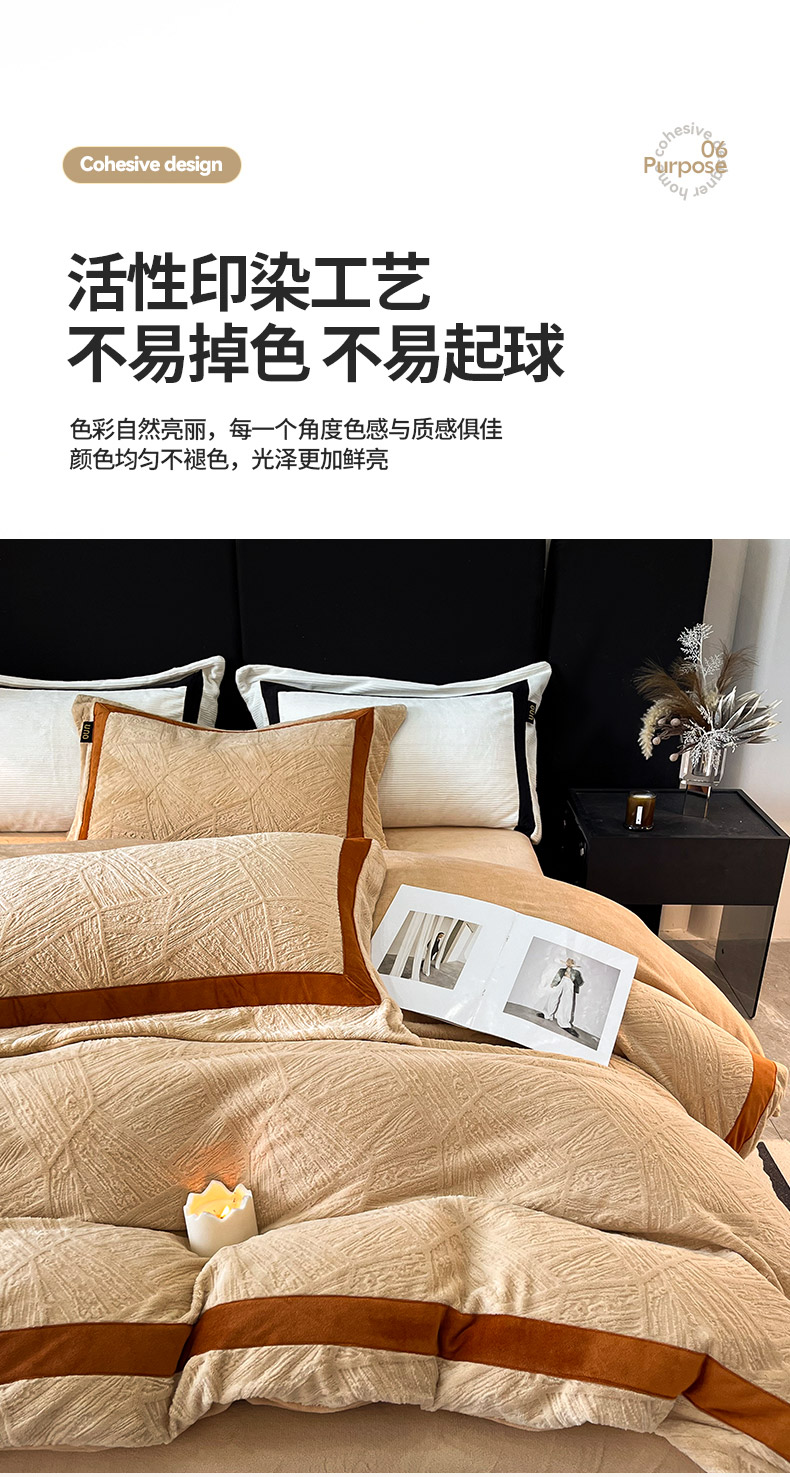 吾诺家居 吾诺 2025绽放系列--手工织带款雕花牛奶绒四件套 叶纹驼