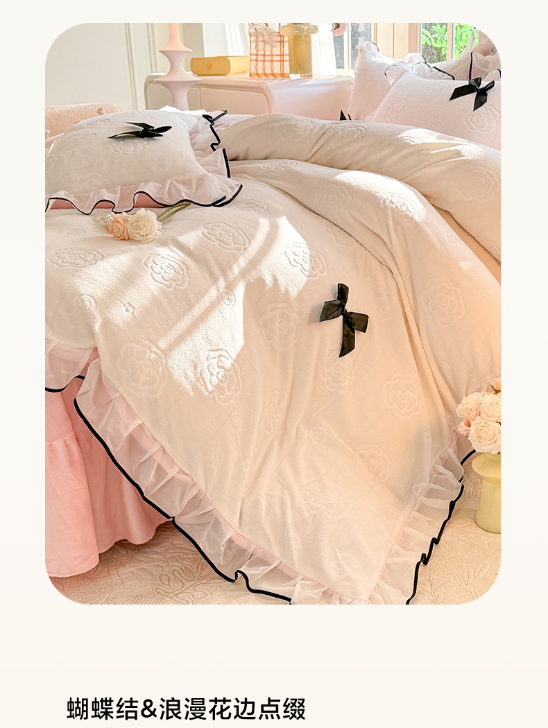 当前位置: 91家纺网 > 商品网购 > 床品套件 > 四件套 > 牛奶绒四件套 > 逸尚阁 2025新款雕花牛奶绒绒梦恋四件套 绒梦恋-白粉色