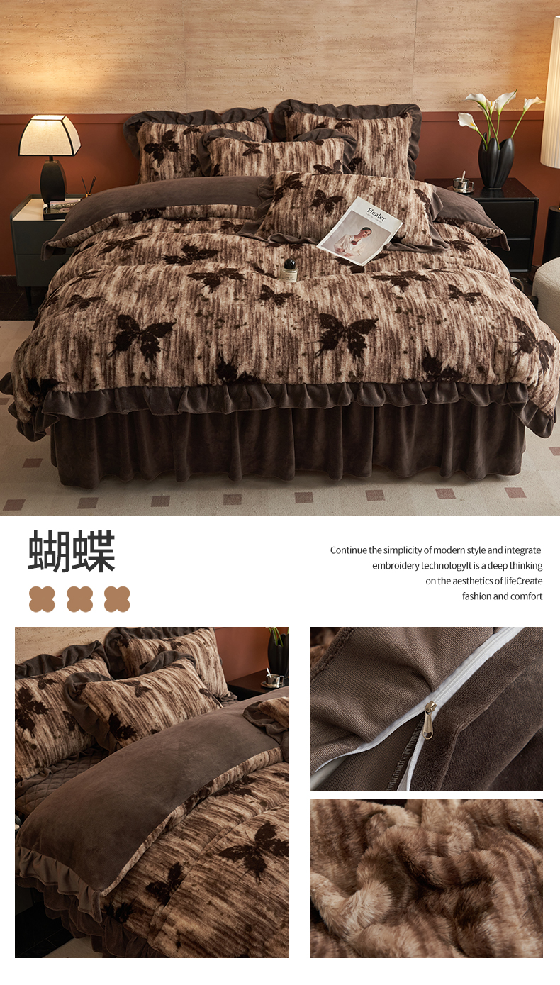 商品名称:(总)金鹰 2025新款A类兔毛绒夹棉床裙四件套加厚牛奶绒四件套