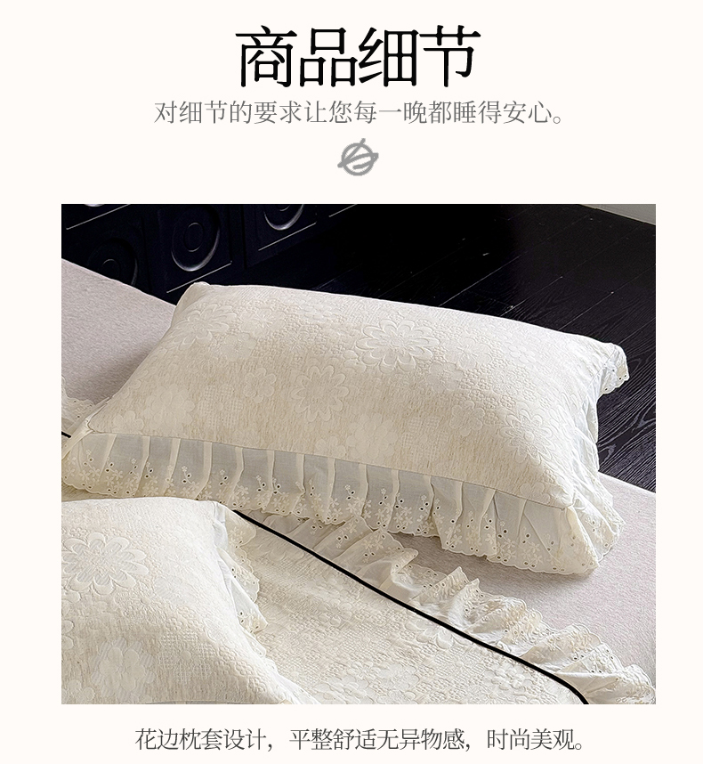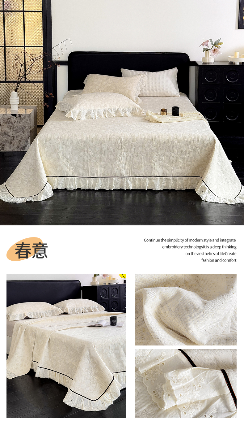 商品名称:金鹰 2025新款A类全棉花边棉麻空气层床盖 花边床盖-花涧兔