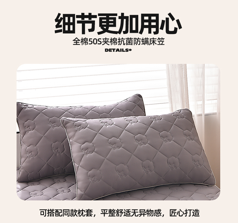 当前位置: 91家纺网 > 商品网购 > 床上用品 > 床笠 > 金鹰 2025新款全棉50S夹棉抗菌防螨床笠加厚床笠席梦思保护套 高级灰