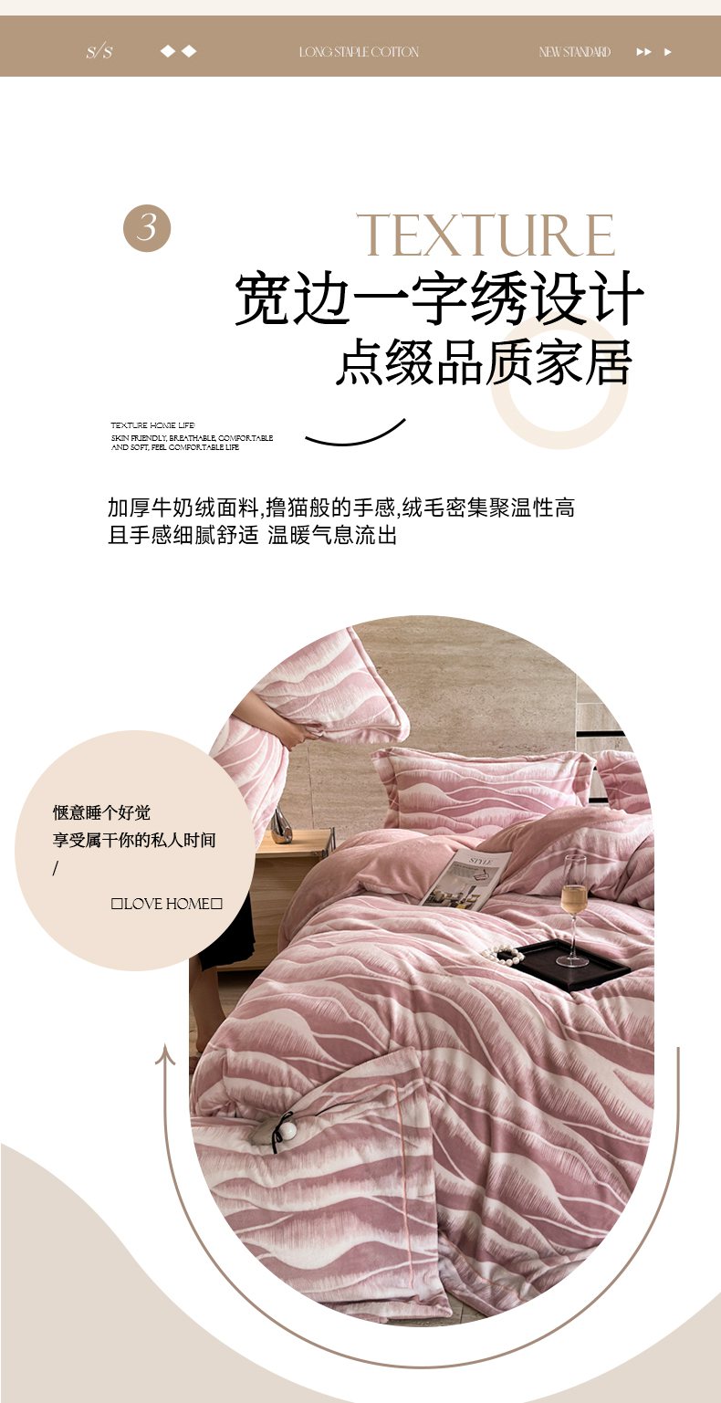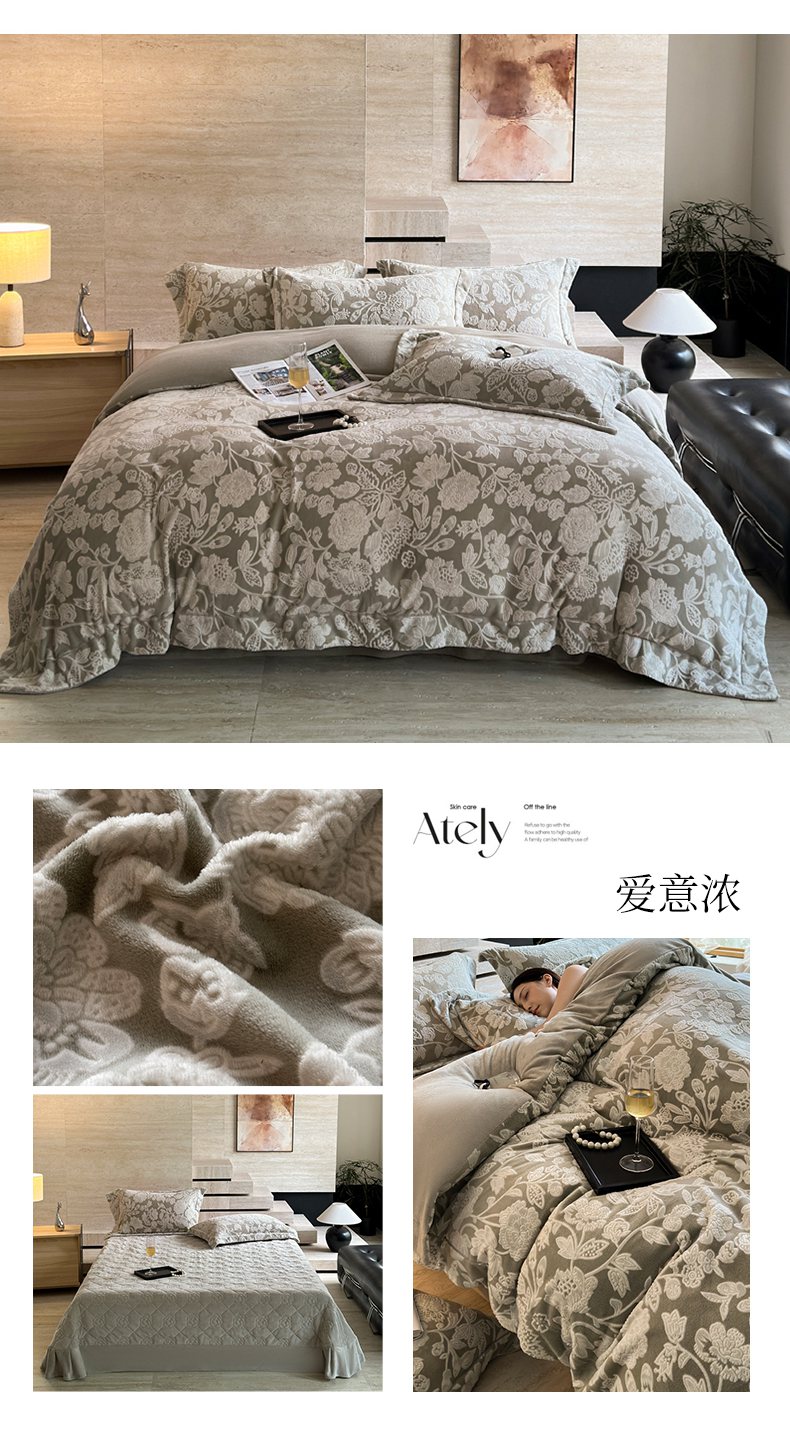 当前位置: 91家纺网 > 商品网购 > 床品套件 > 四件套 > 牛奶绒四件套 > 7V 2025新款A类5D雕花绒四件套高克重立体浮雕牛奶绒大宽边一字绣全工艺四件套 峰回