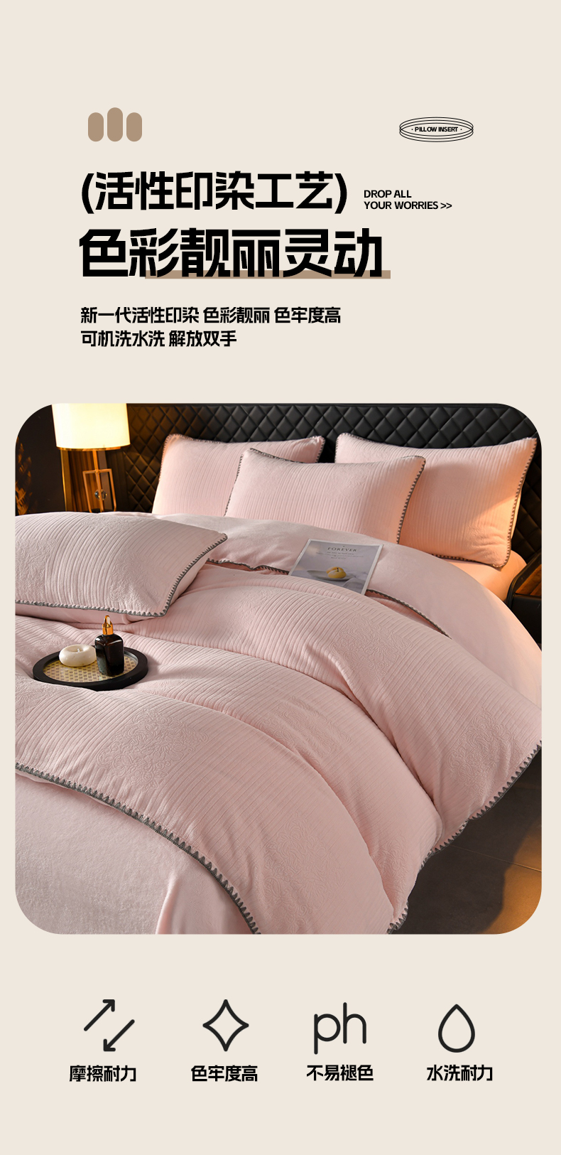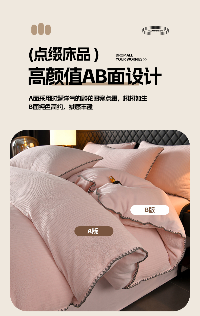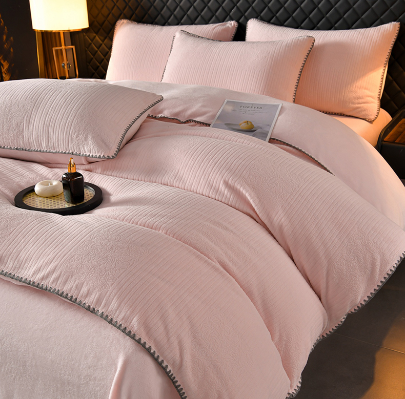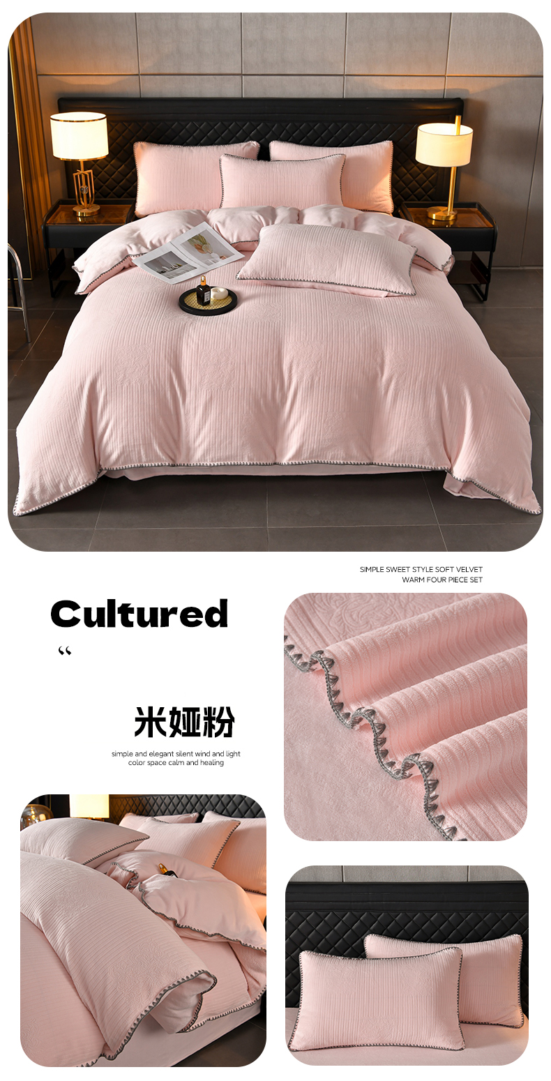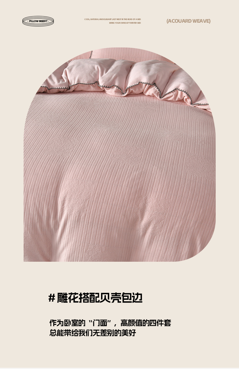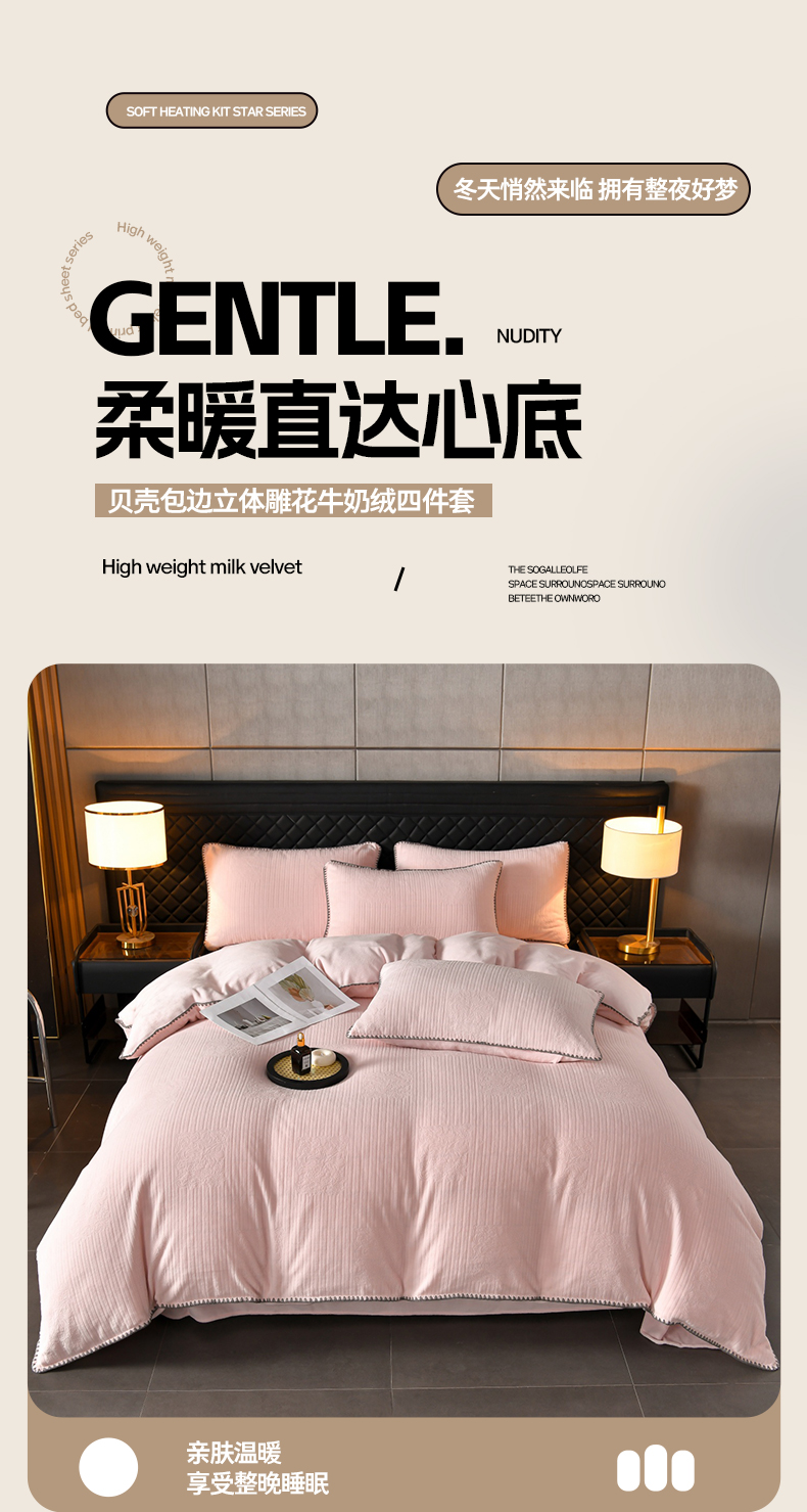 当前位置: 91家纺网 > 商品网购 > 床品套件 > 四件套 > 牛奶绒四件套 > 菡宝2025新款工艺款贝壳边雕花绒简约良品风牛奶绒四件套-梵西系列 支持定做定制尺寸 米娅粉