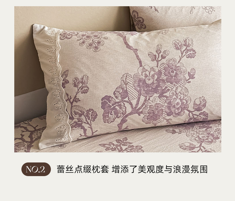 商品名称:丝芙妮家居(原乐视家纺) 2025新款全棉纯棉蕾丝花边原麻单件床单单品床单 月下繁花
