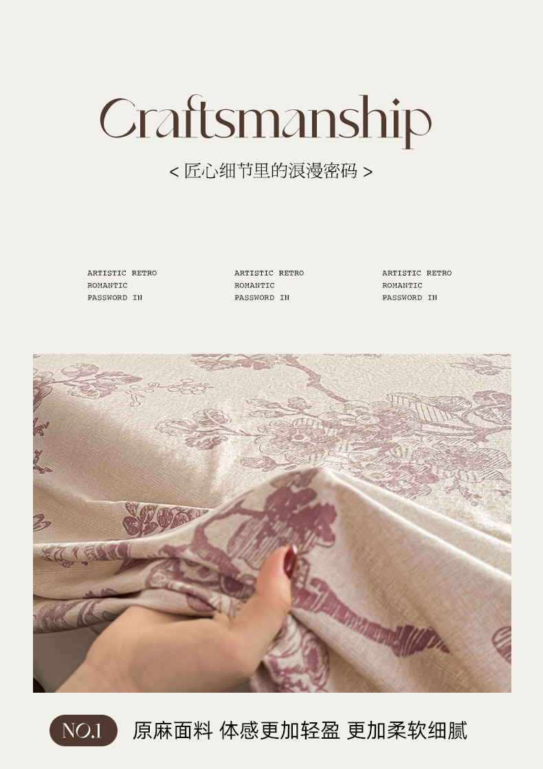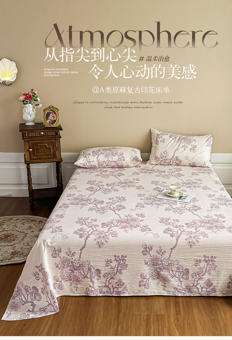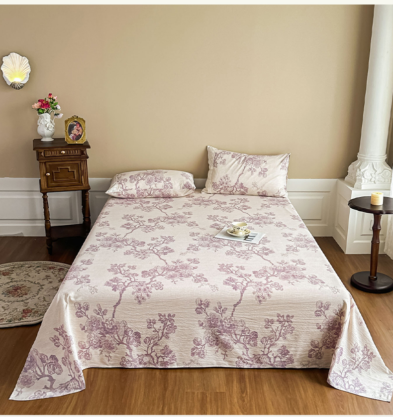 丝芙妮家居(原乐视家纺) 2025新款全棉纯棉蕾丝花边原麻单件床单单品床单 月下繁花