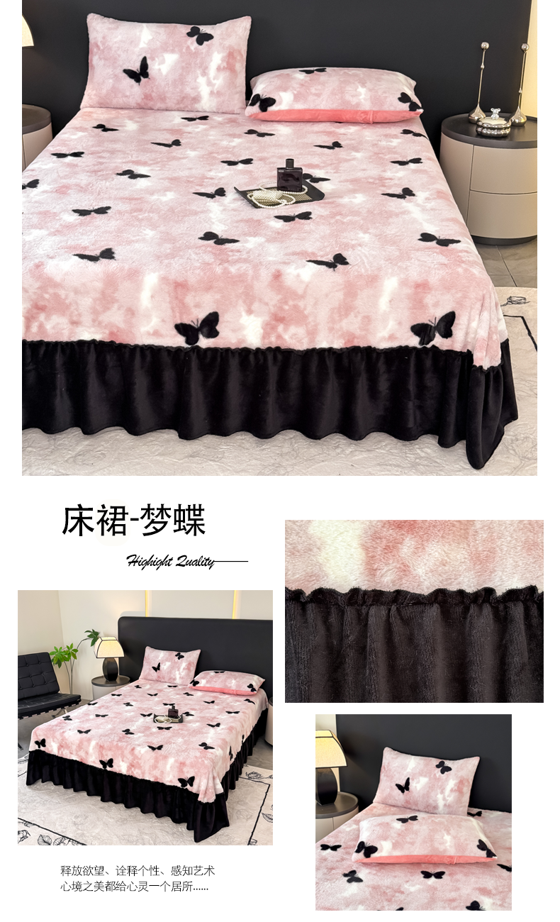 (总)小叮当家纺仓储工厂店 2025新款水晶绒夹棉床裙四件套,宝石兰,藏青,豆沙,粉玉,灰,酒红,墨绿,月光蓝