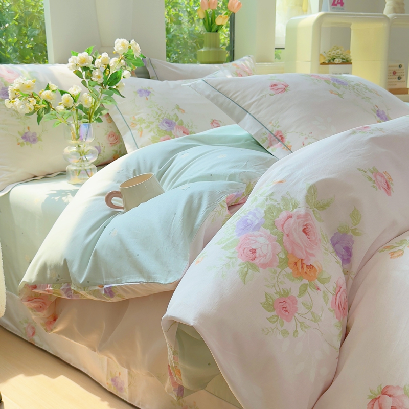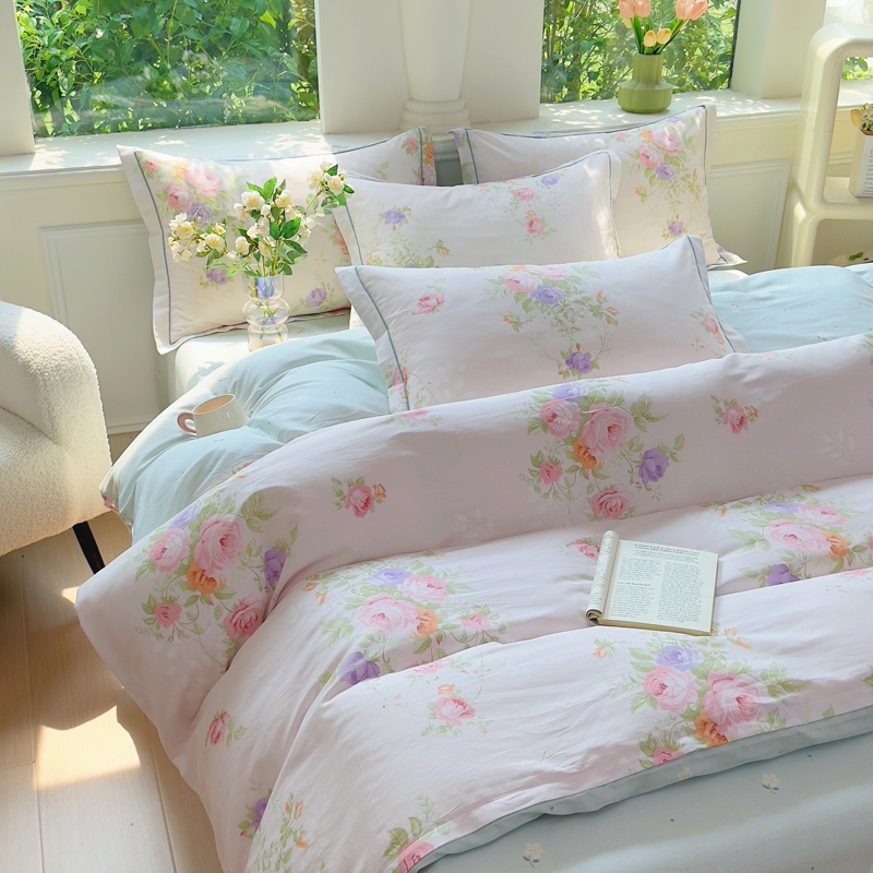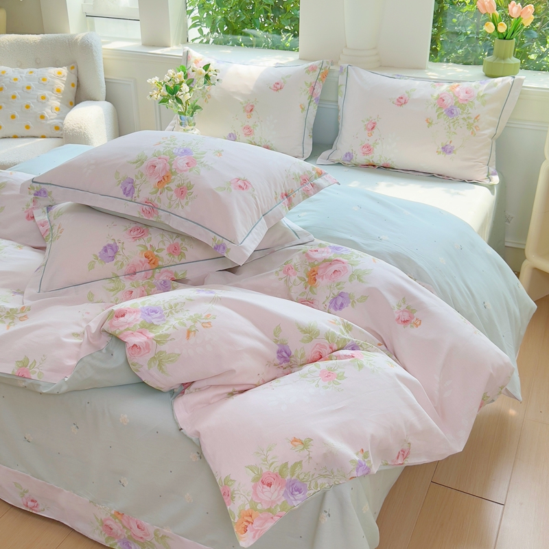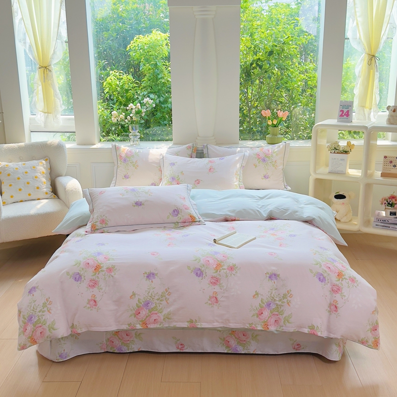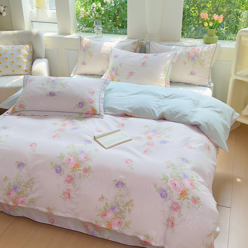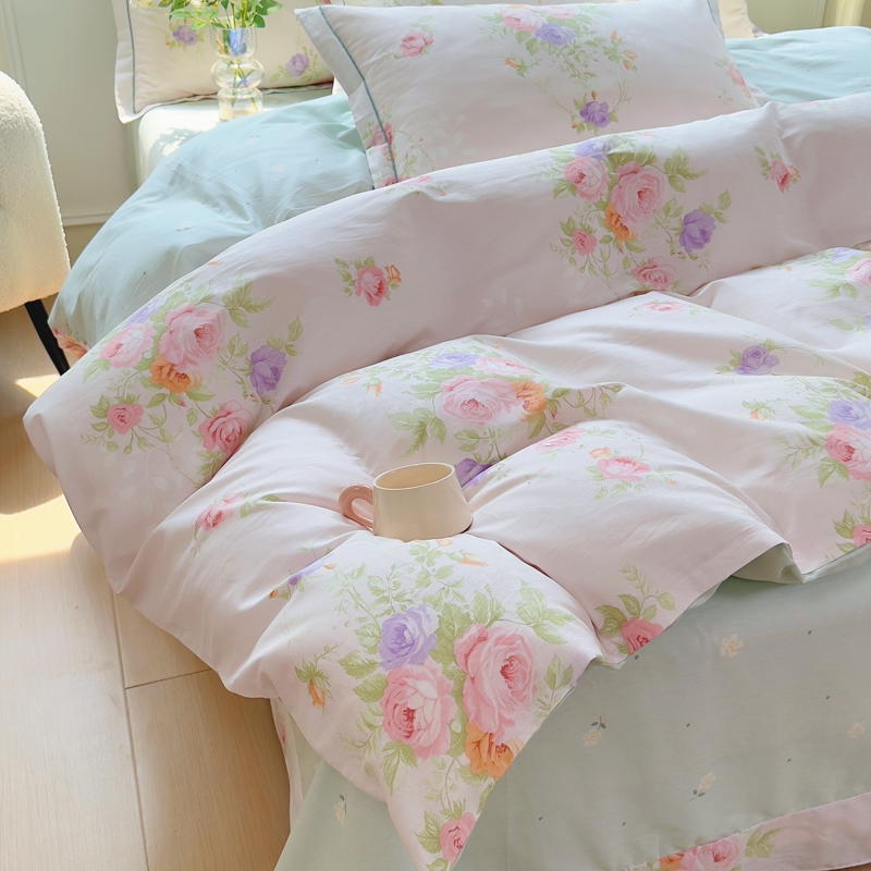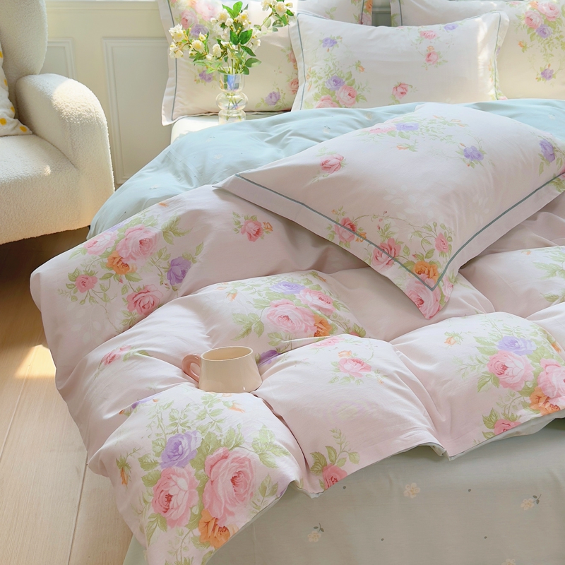 铭博家纺 新款直播爆款网红全棉四件套13070印花吊边一字绣纯棉被套工艺款 花语呢喃,花语呢喃