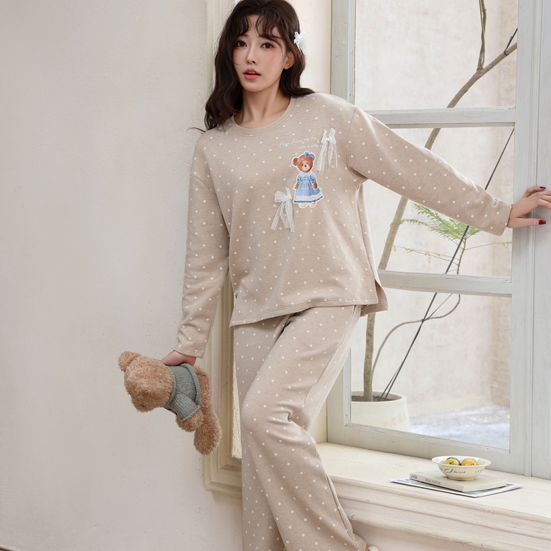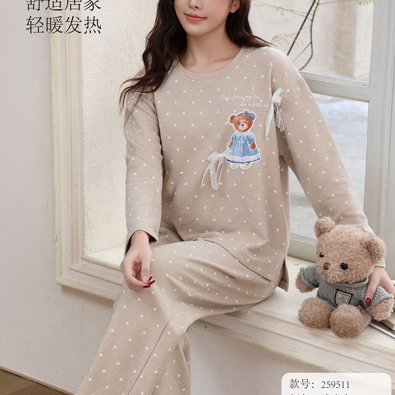 (总)洛兰沙家居馆 2026春季新款自带胸垫纯棉居家睡衣女长袖套头可爱家居服套装 第二批,31086,31087,31088,31089