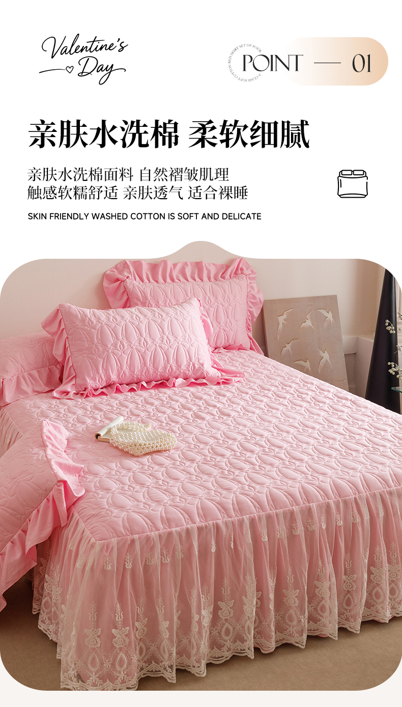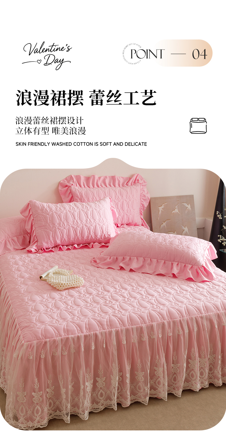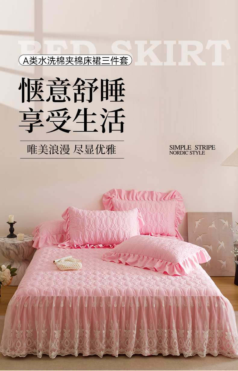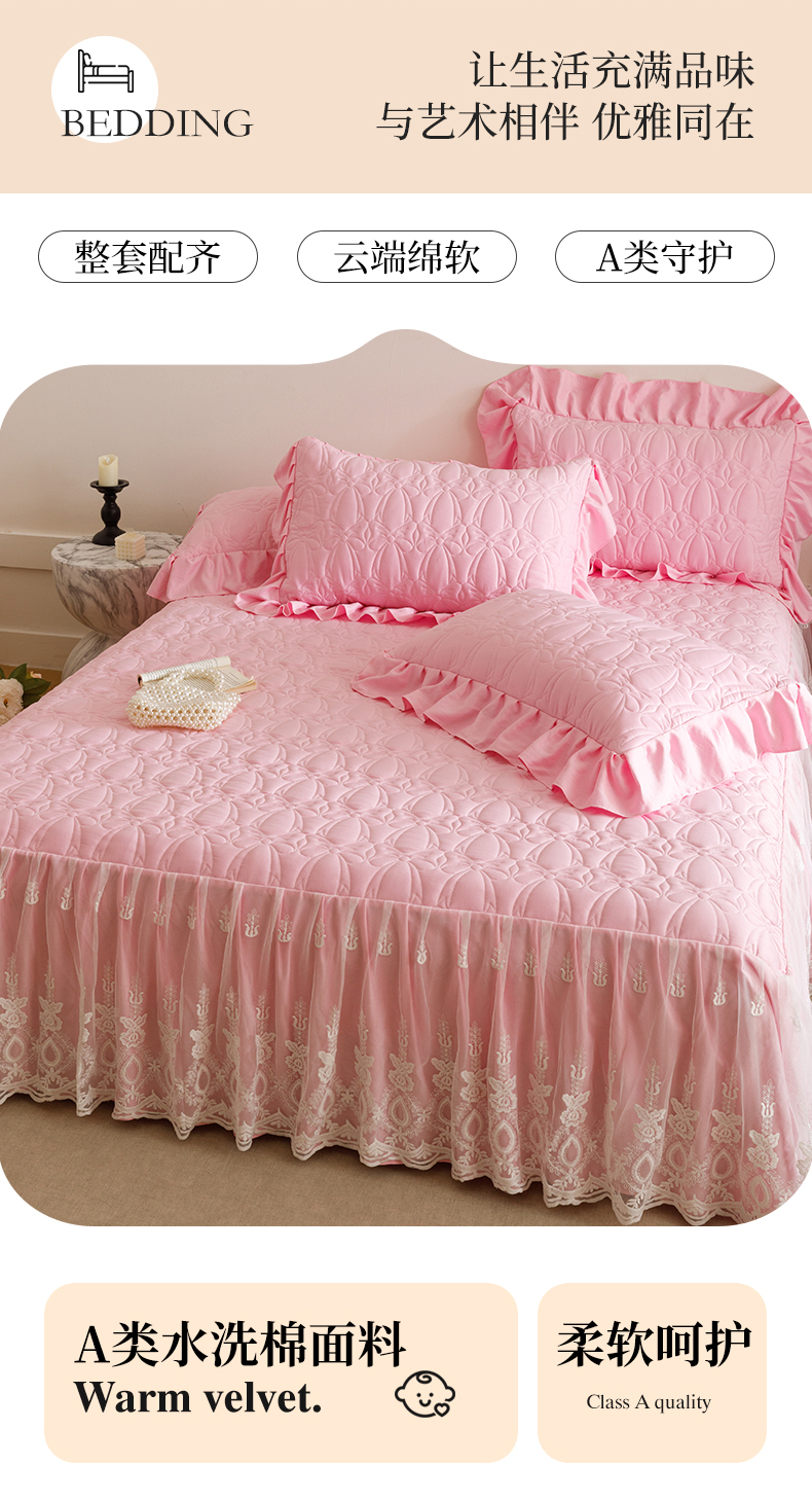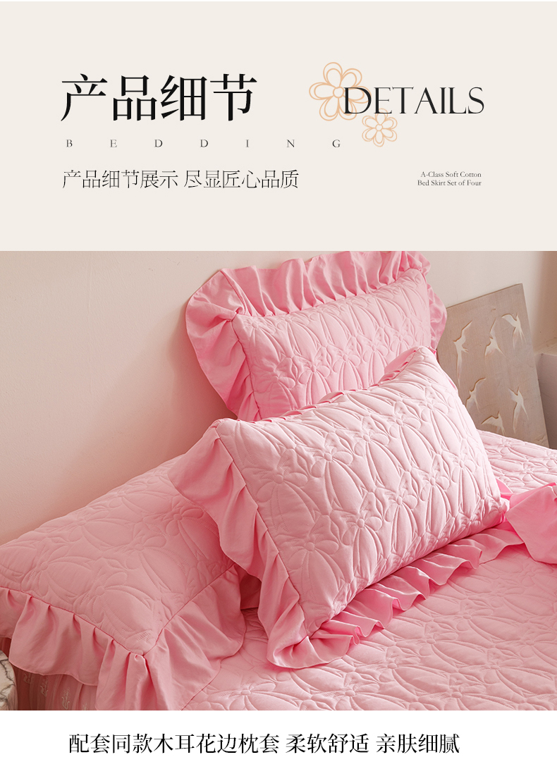 当前位置: 91家纺网 > 商品网购 > 床品套件 > 四件套 > 牛奶绒四件套 > 好儿喜家纺 2025新款A类水洗棉床裙三件套-梦语系列 梦语-粉