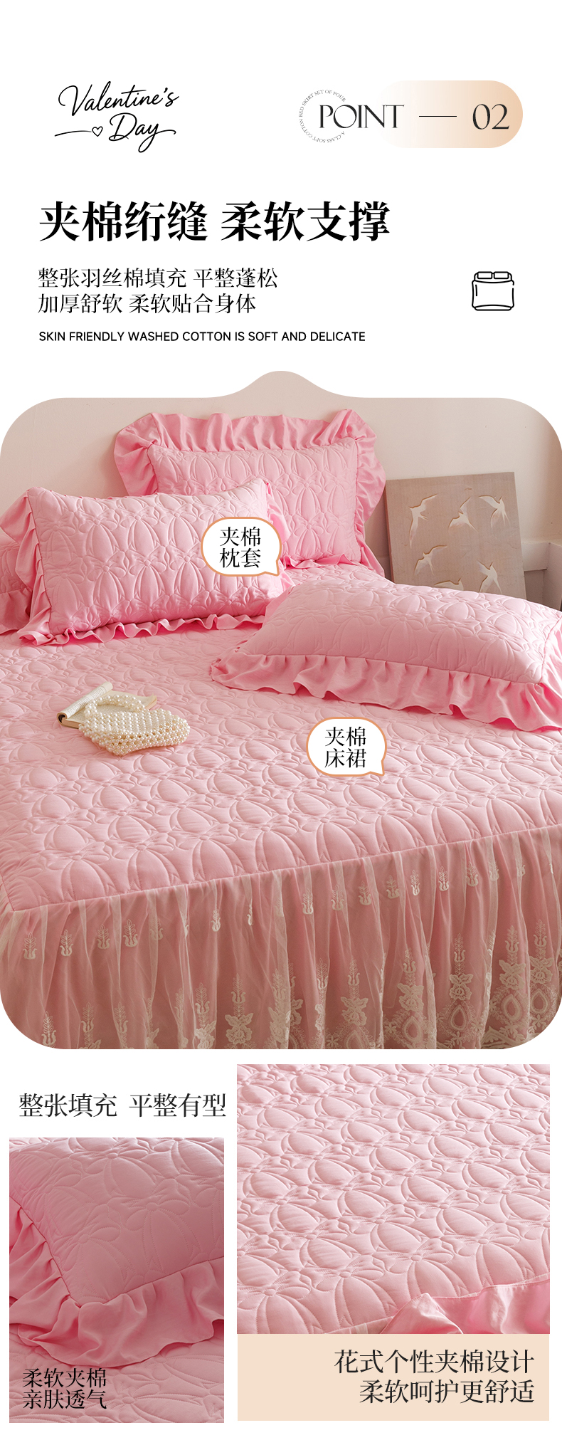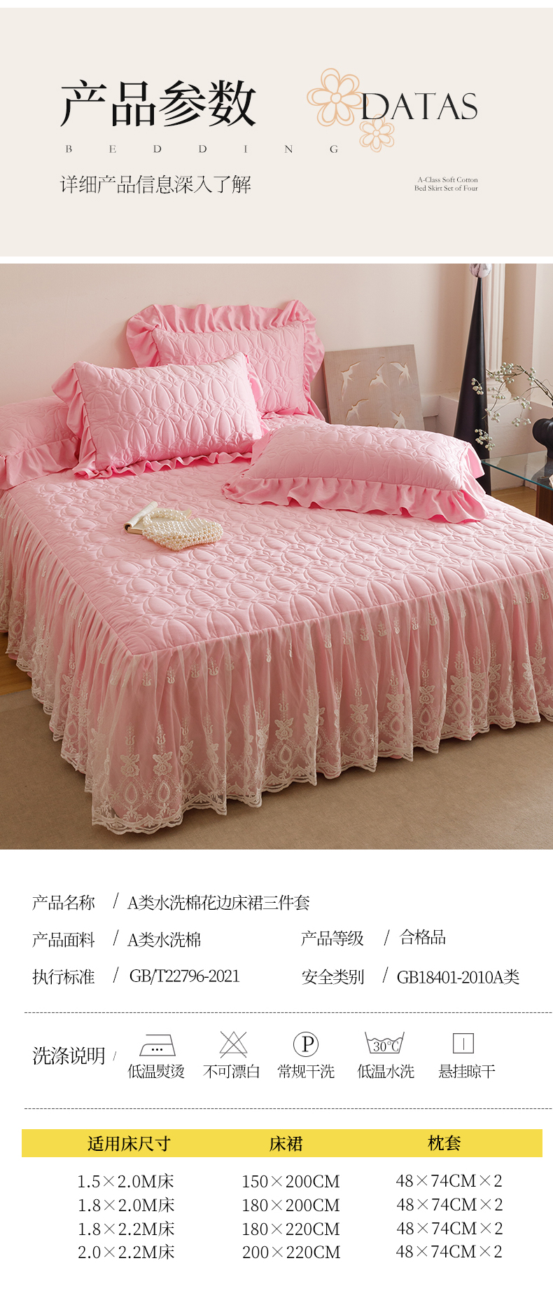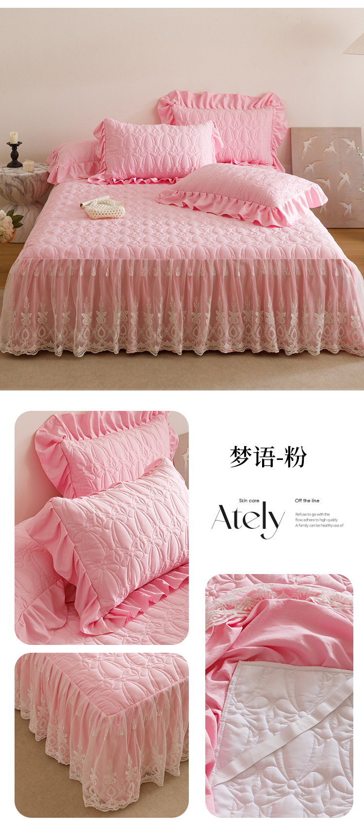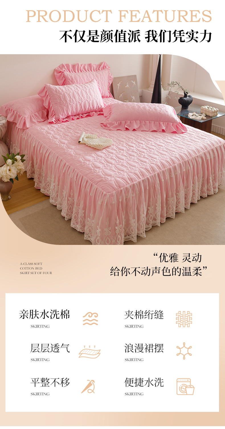 当前位置: 91家纺网 > 商品网购 > 床品套件 > 四件套 > 牛奶绒四件套 > 好儿喜家纺 2025新款A类水洗棉床裙三件套-梦语系列 梦语-粉