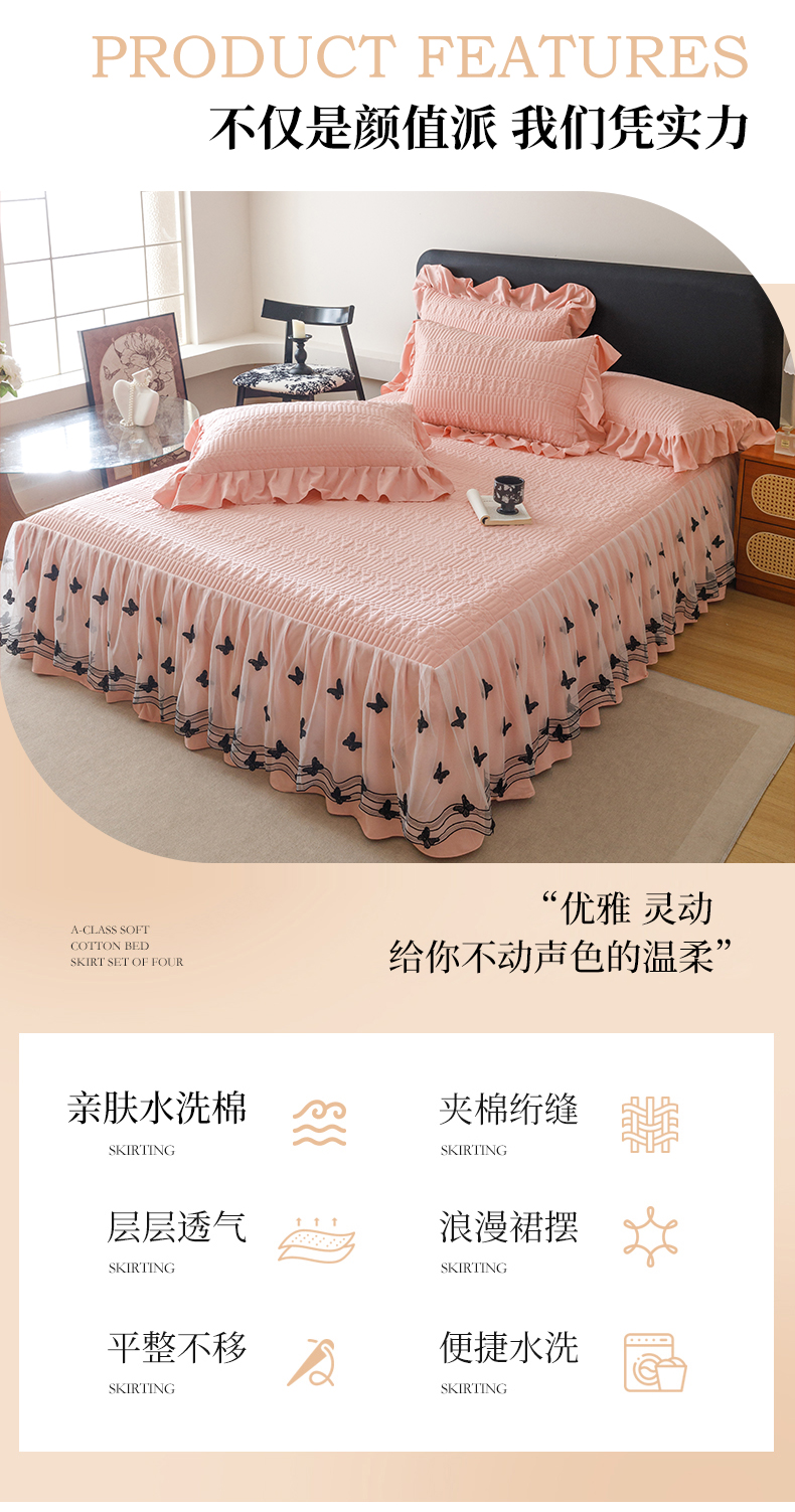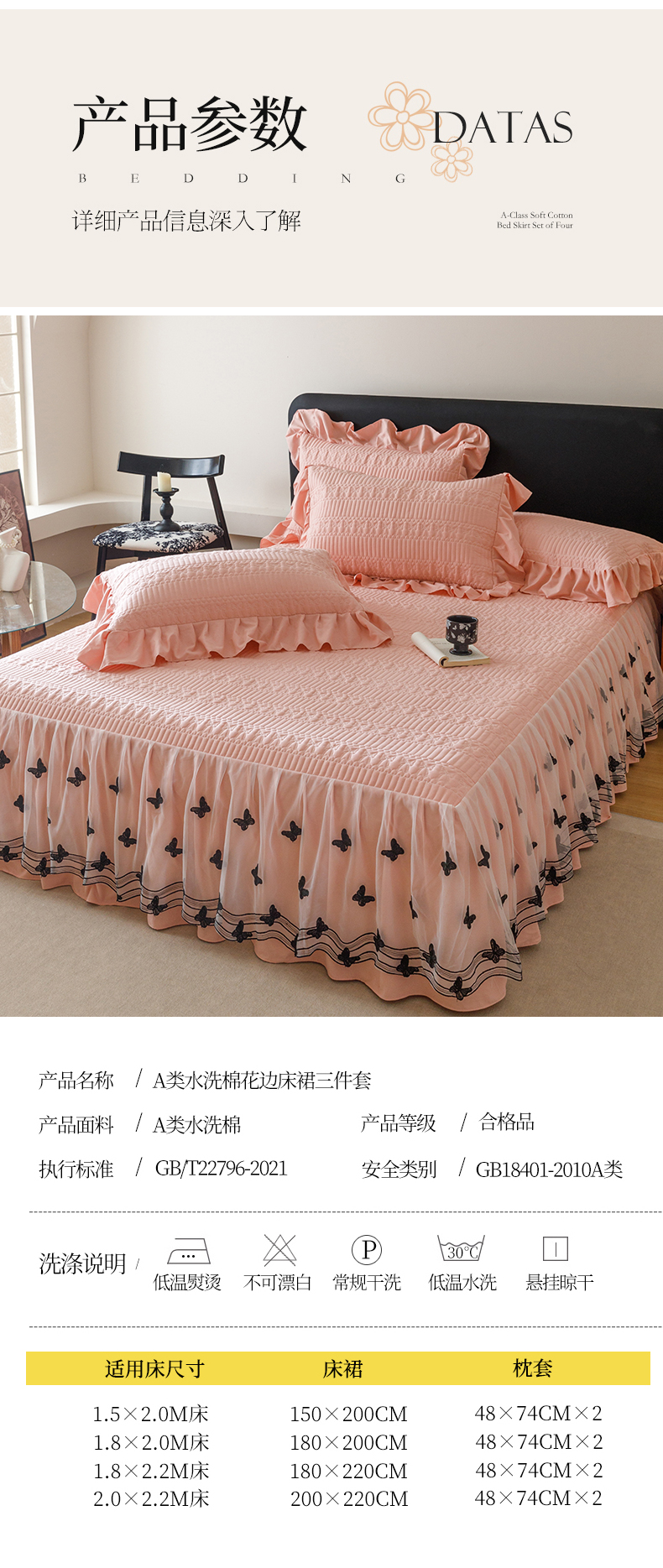 当前位置: 91家纺网 > 商品网购 > 床品套件 > 四件套 > 牛奶绒四件套 > 好儿喜家纺 2025新款A类水洗棉床裙三件套-凝香系列 凝香-豆沙