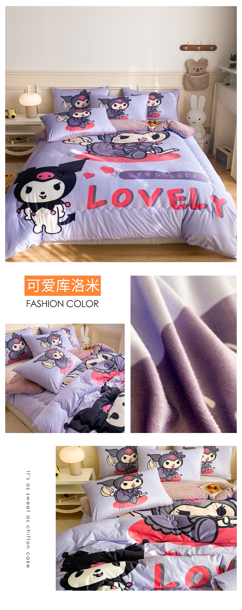 (总)一电 2025新款冬季双面牛奶珊瑚绒床上四件套法兰绒床品加绒被套床单三件套-第三批,公主库洛米,天使库洛米,甜筒库洛米,小兔子,圆点库洛米
