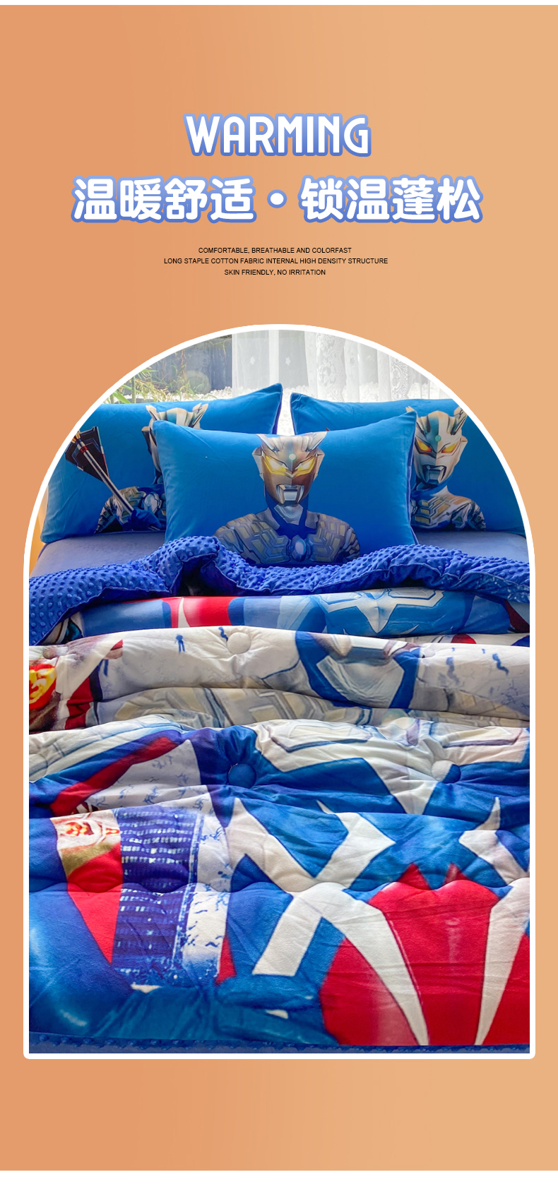 • 91家纺网 家纺一手货源 找家纺 一电 跨境电商可真空儿童豆豆被幼儿园秋冬被芯宝宝婴儿午睡小盖被盖毯小宝宝四季通用 奥特家族
