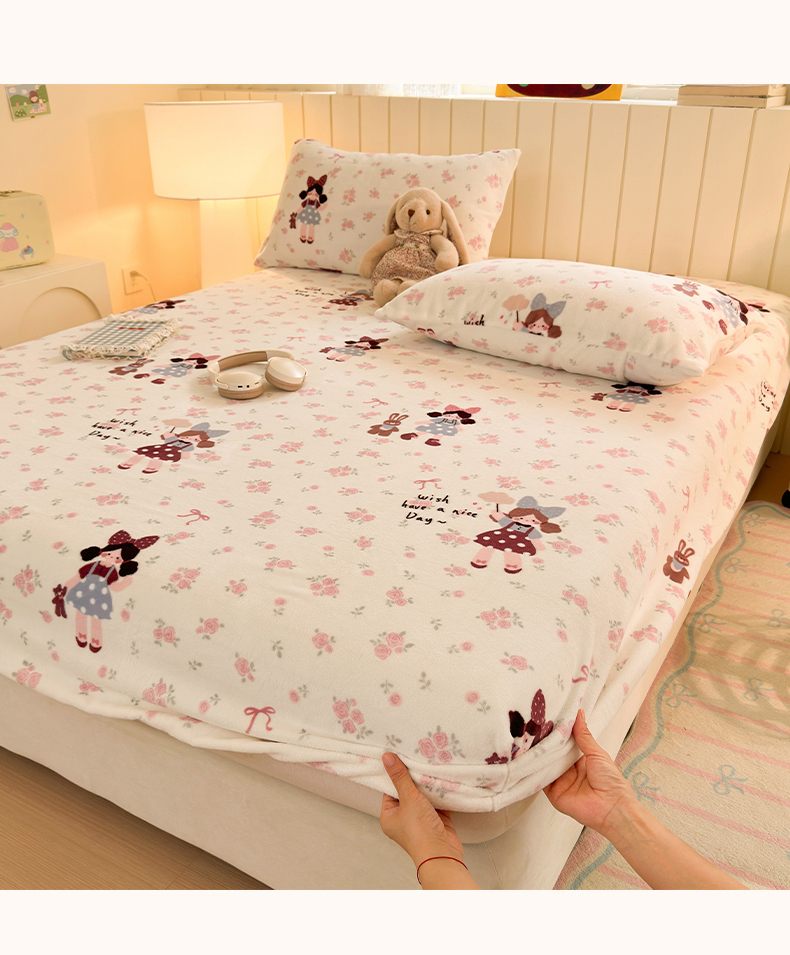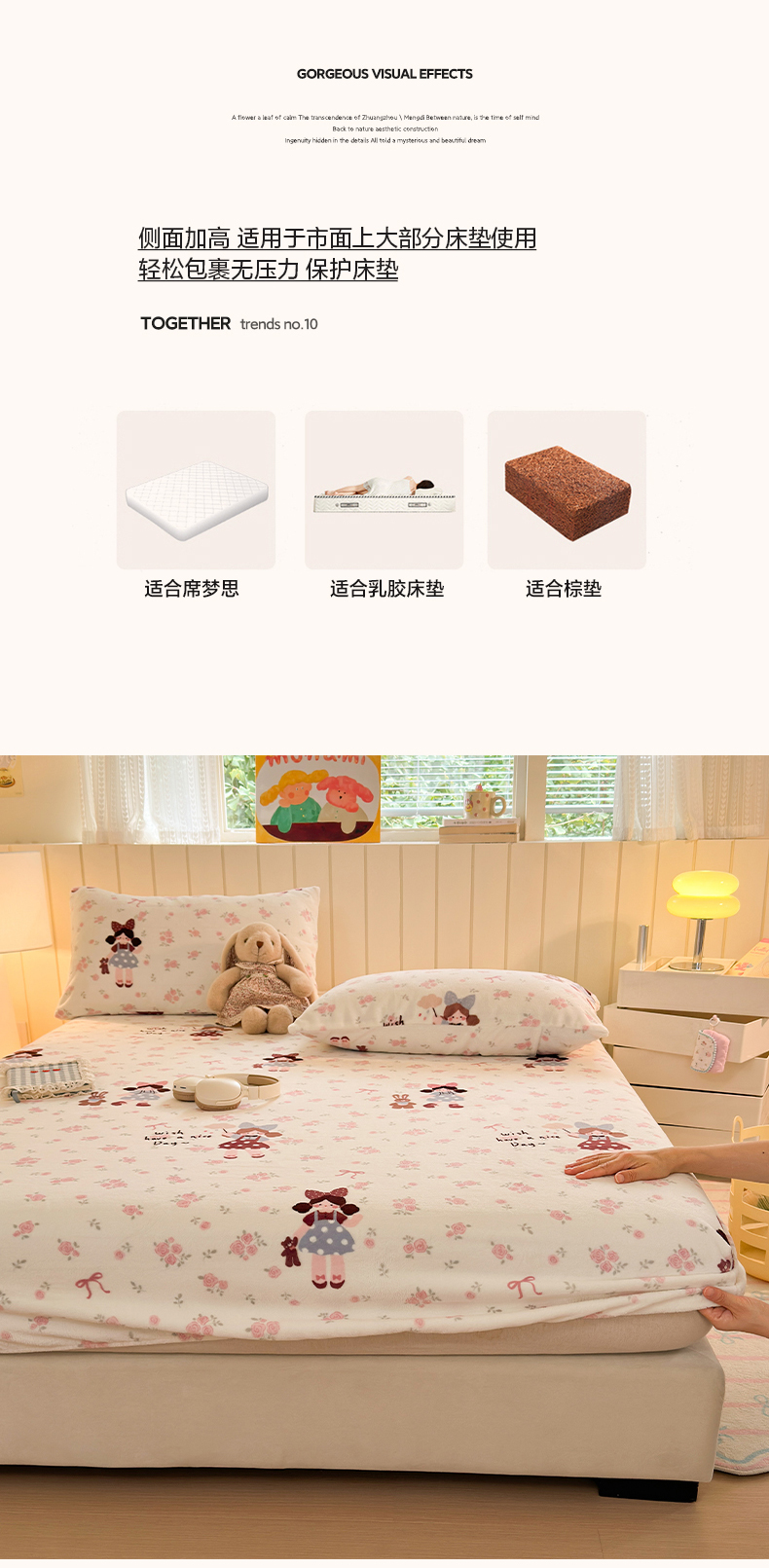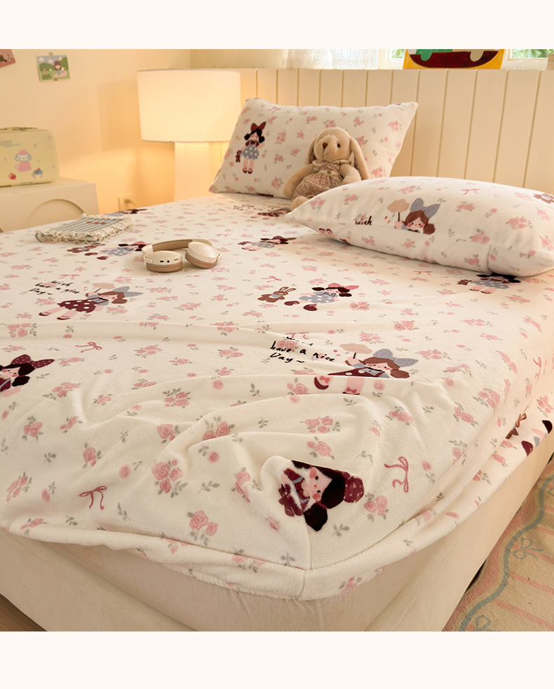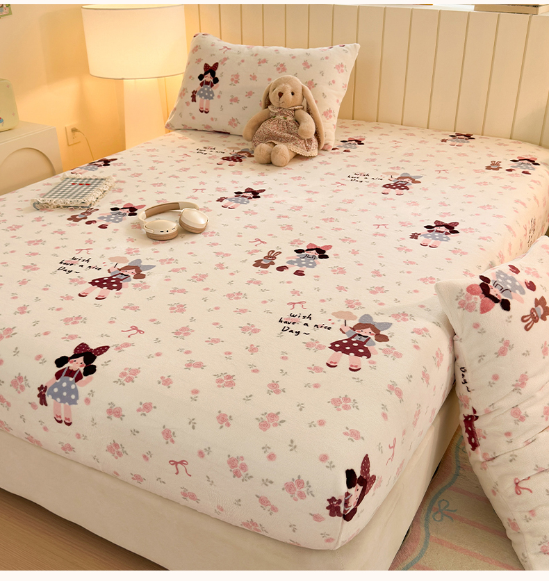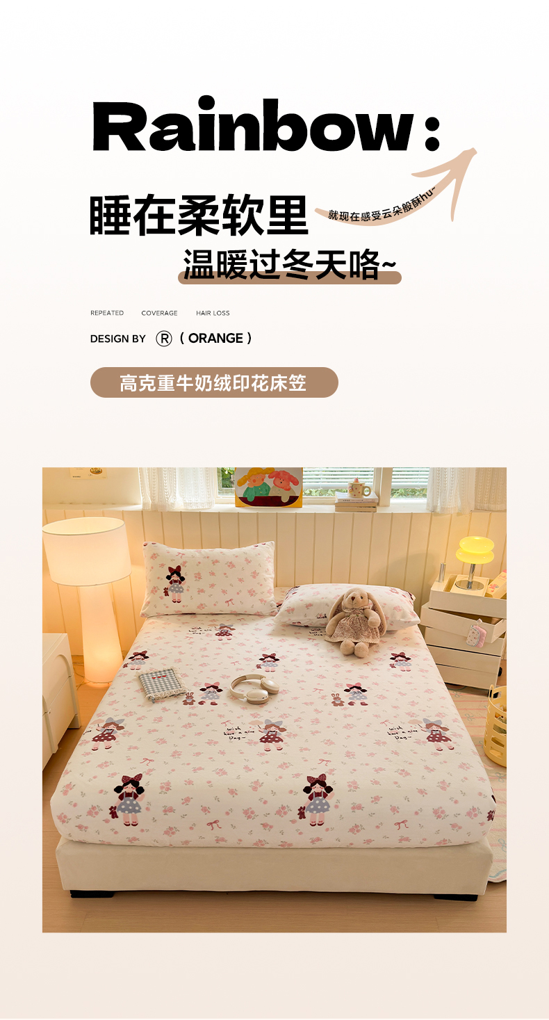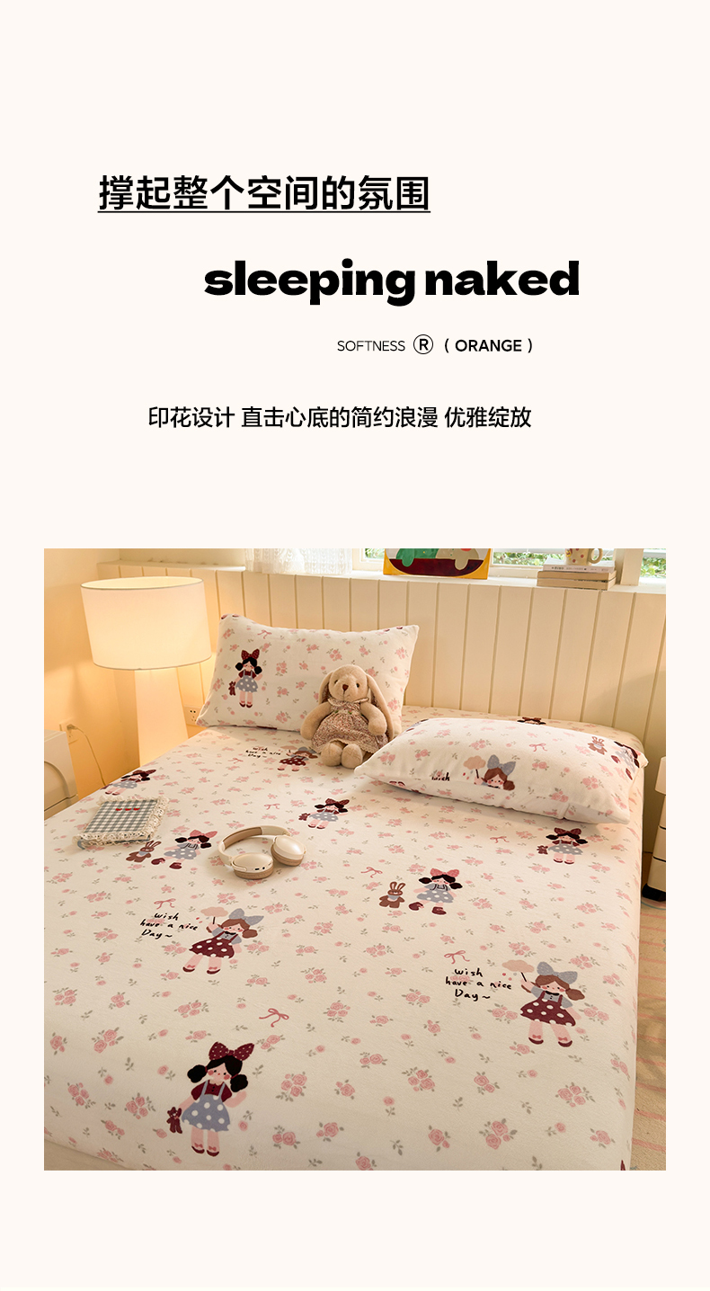 丽美人家纺 2025年牛奶绒小版印花床笠单床笠床笠单件 玫瑰女孩