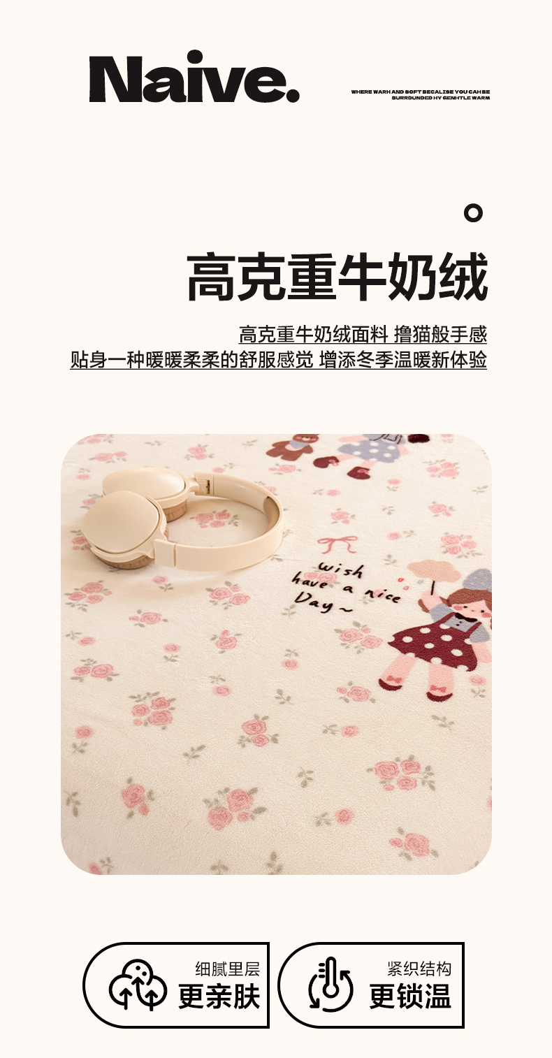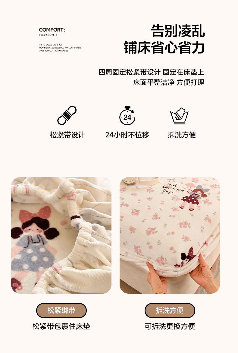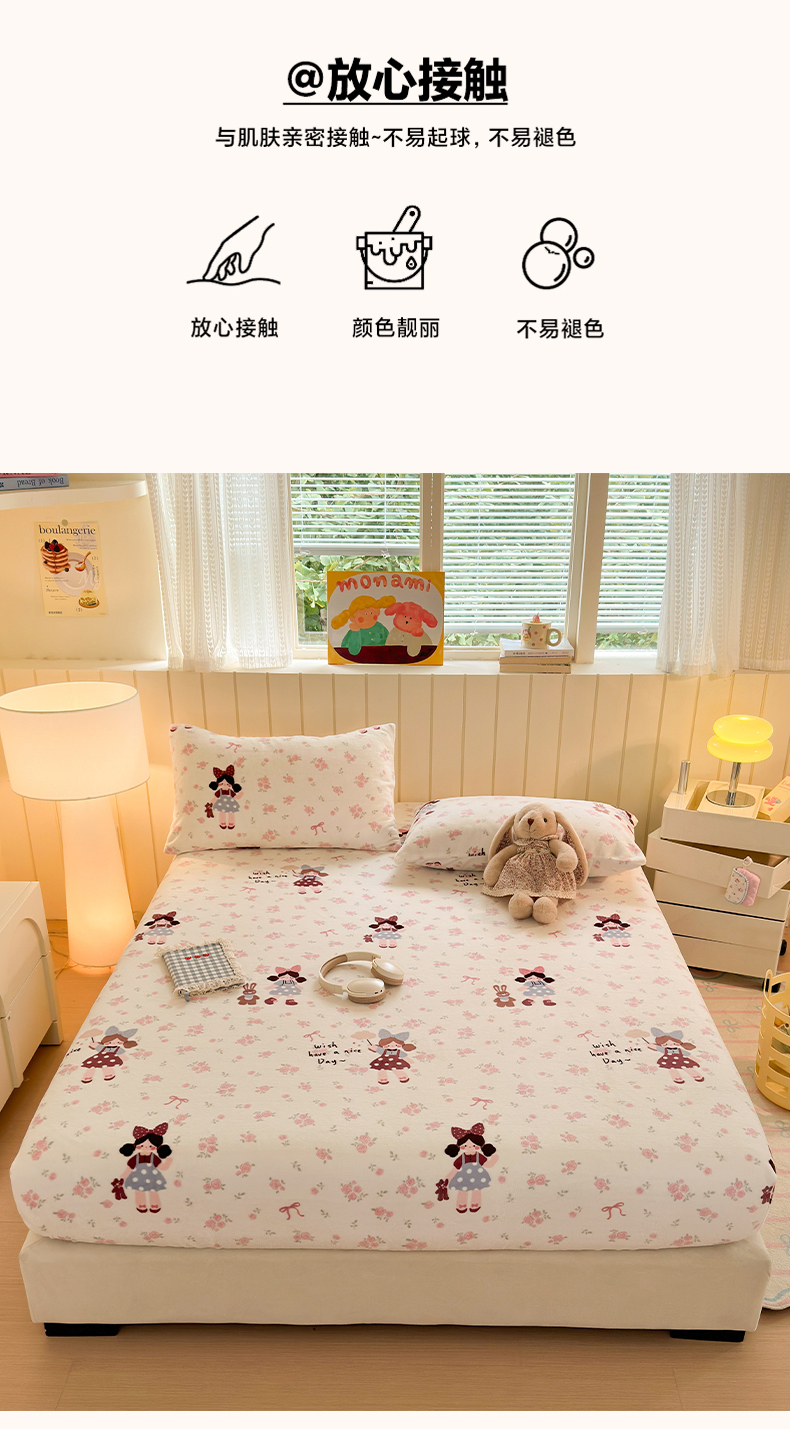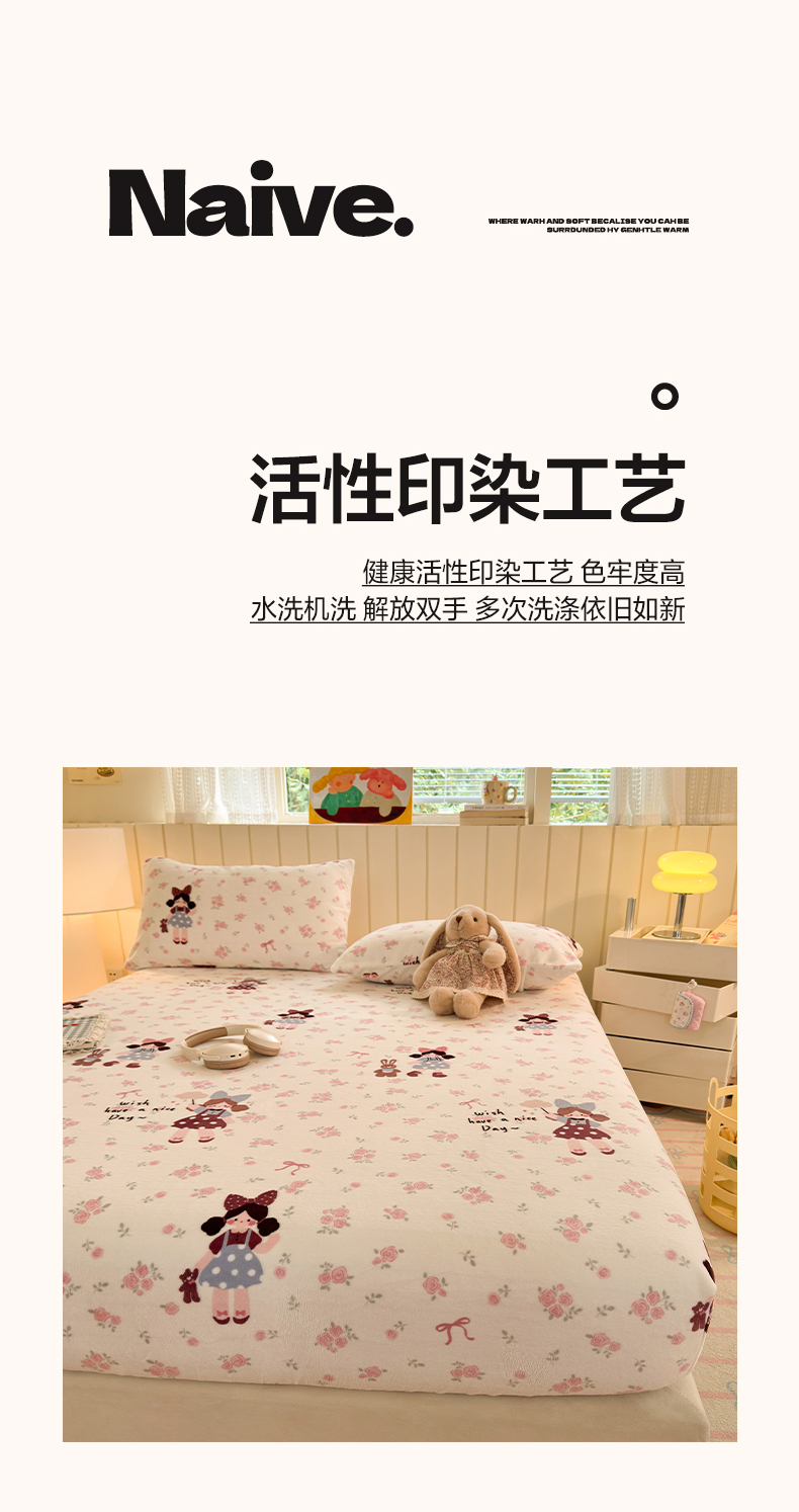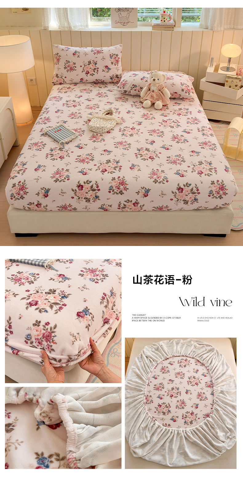 丽美人家纺 2025年牛奶绒小版印花床笠单床笠床笠单件 玫瑰女孩