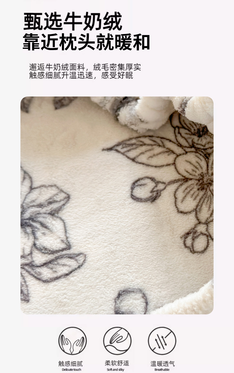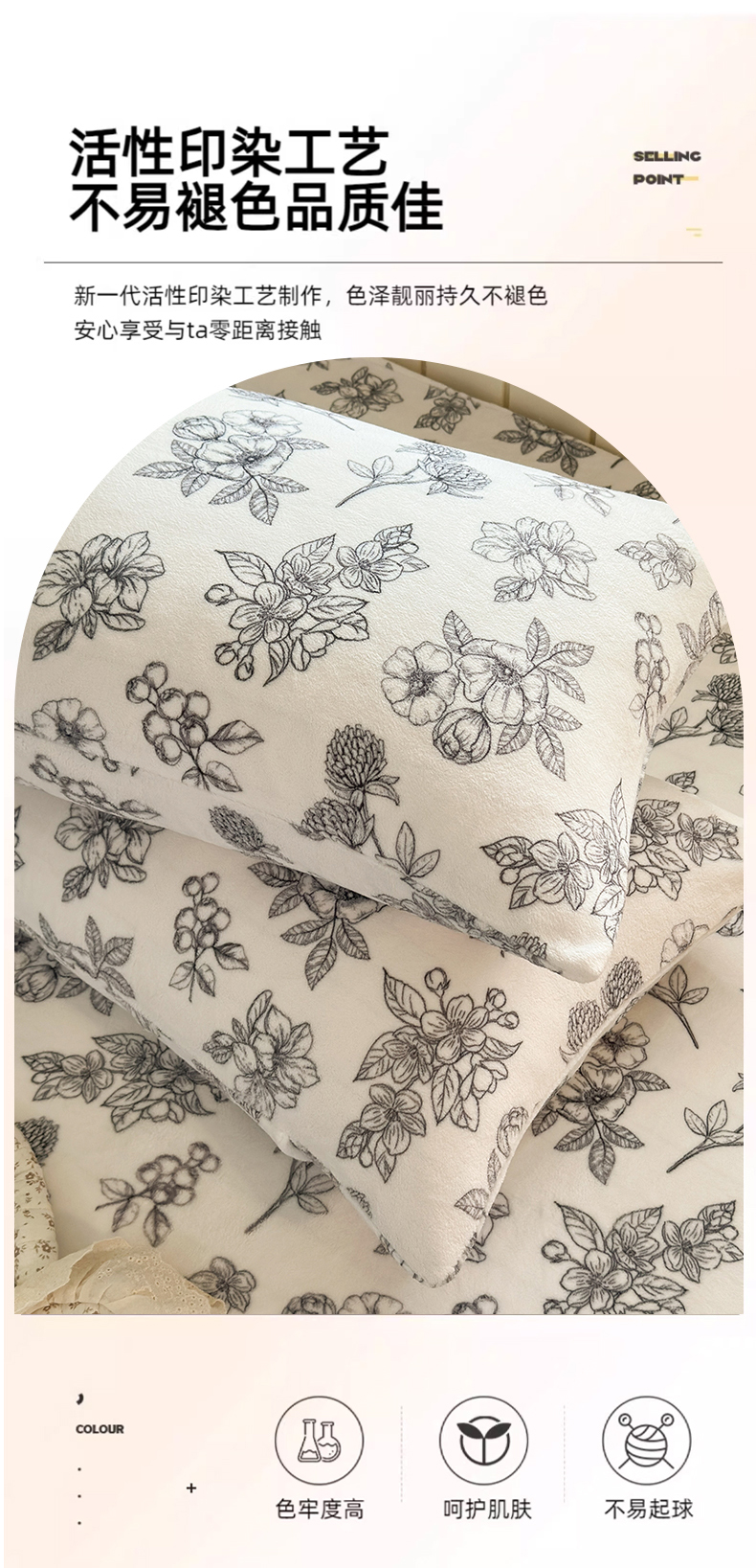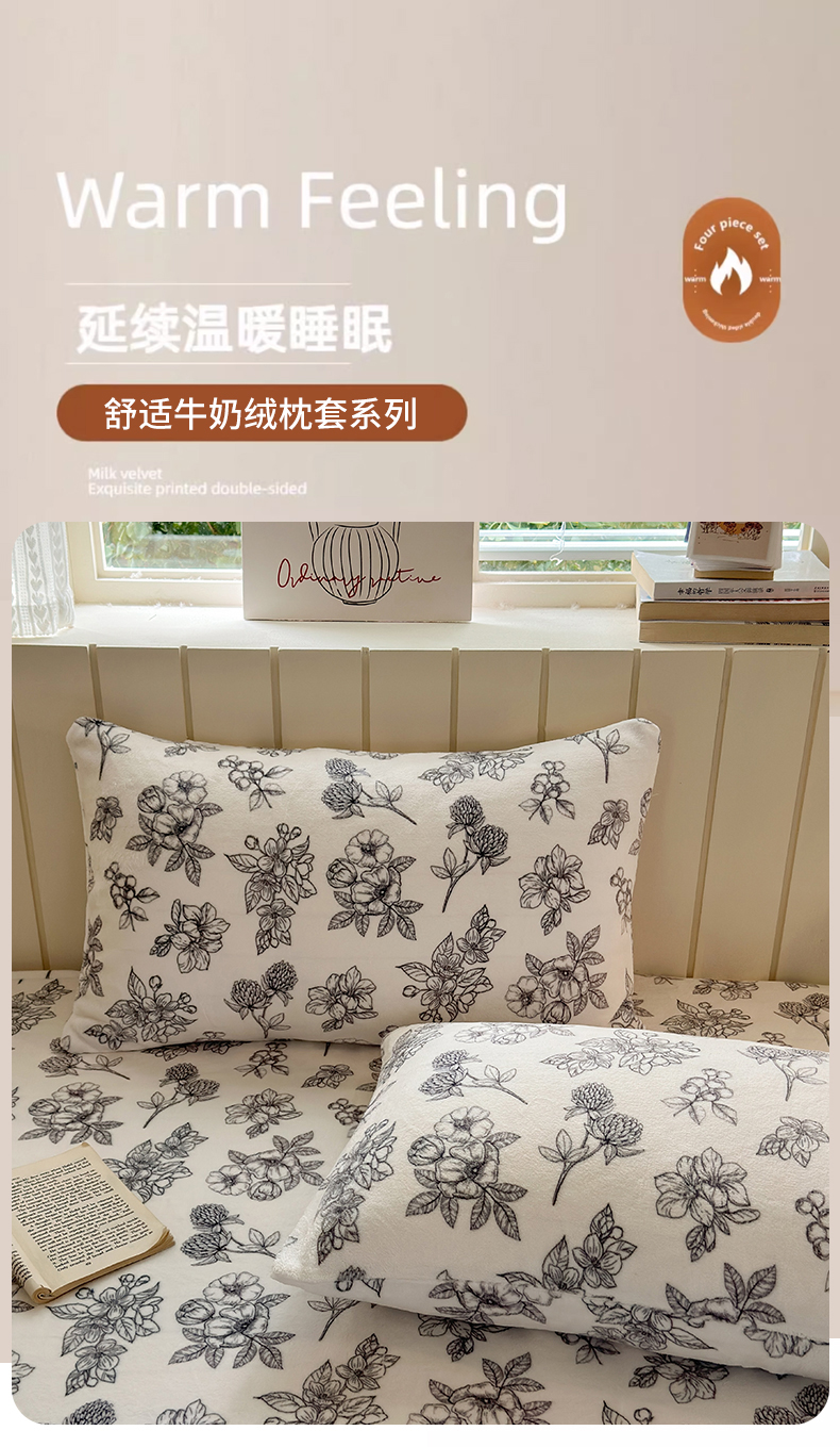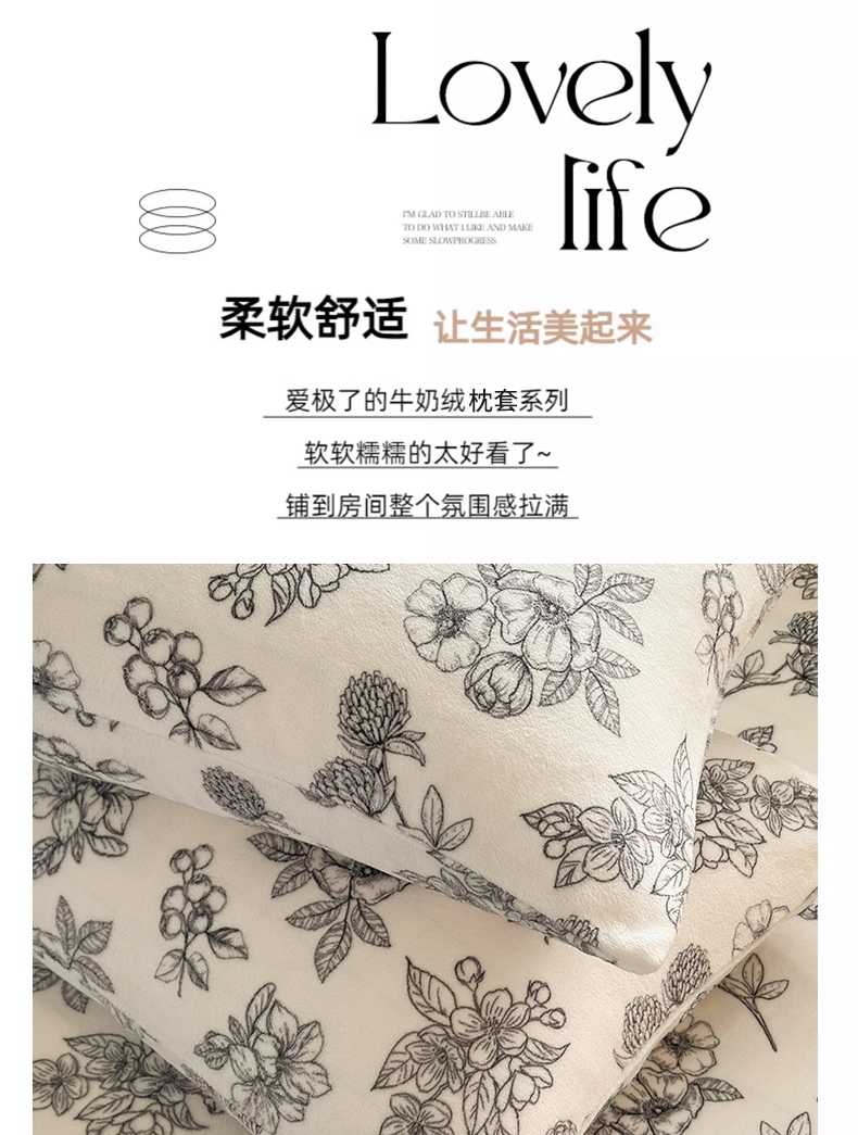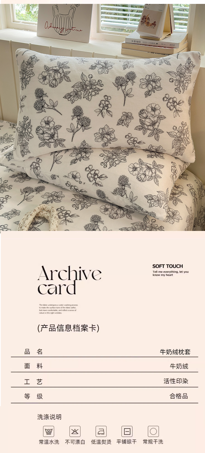 丽美人家纺 2025新款牛奶绒小版枕套 复古山茶
