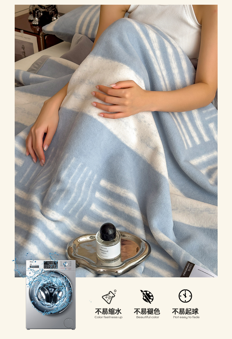 丝幔家纺 2025新款羊绵绒双层印花毛毯毯子 时光线条