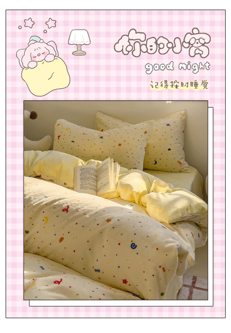 当前位置: 91家纺网 > 商品网购 > 床品套件 > 四件套 > 牛奶绒四件套 > 小叮当家纺仓储工厂店 买家秀 爆款花型2025新款秋冬保暖高克重牛奶绒小清新印花四件套系列-风格一 浪漫星河