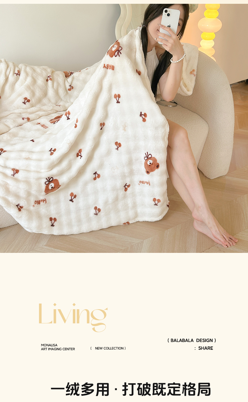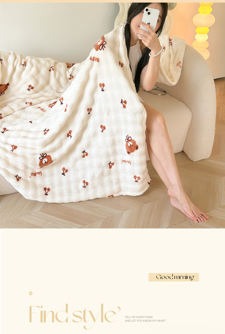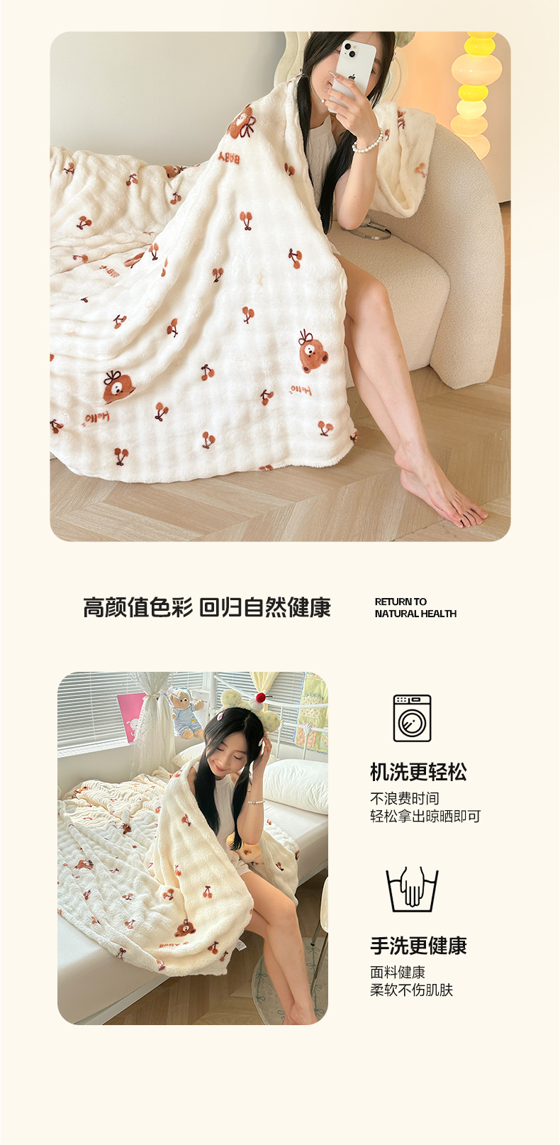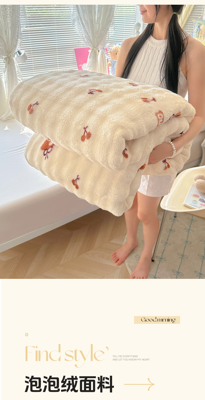 韩巢家纺 2025新款高克重泡泡绒毛毯多功能牛奶绒毯子支持跨境电商 樱桃小熊