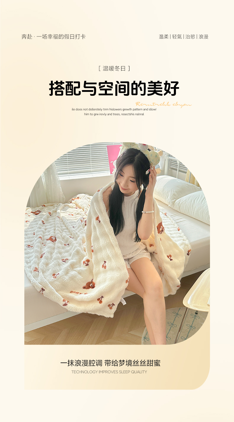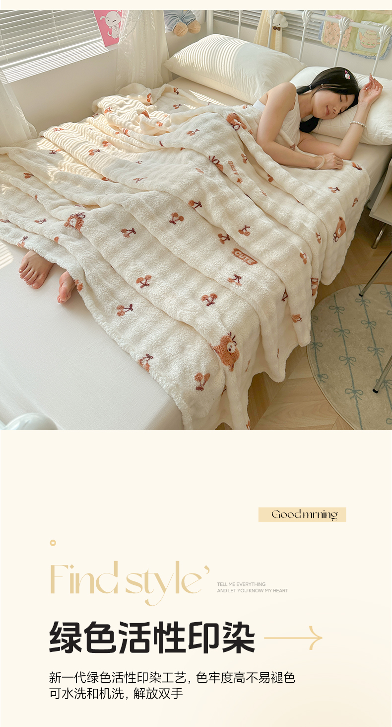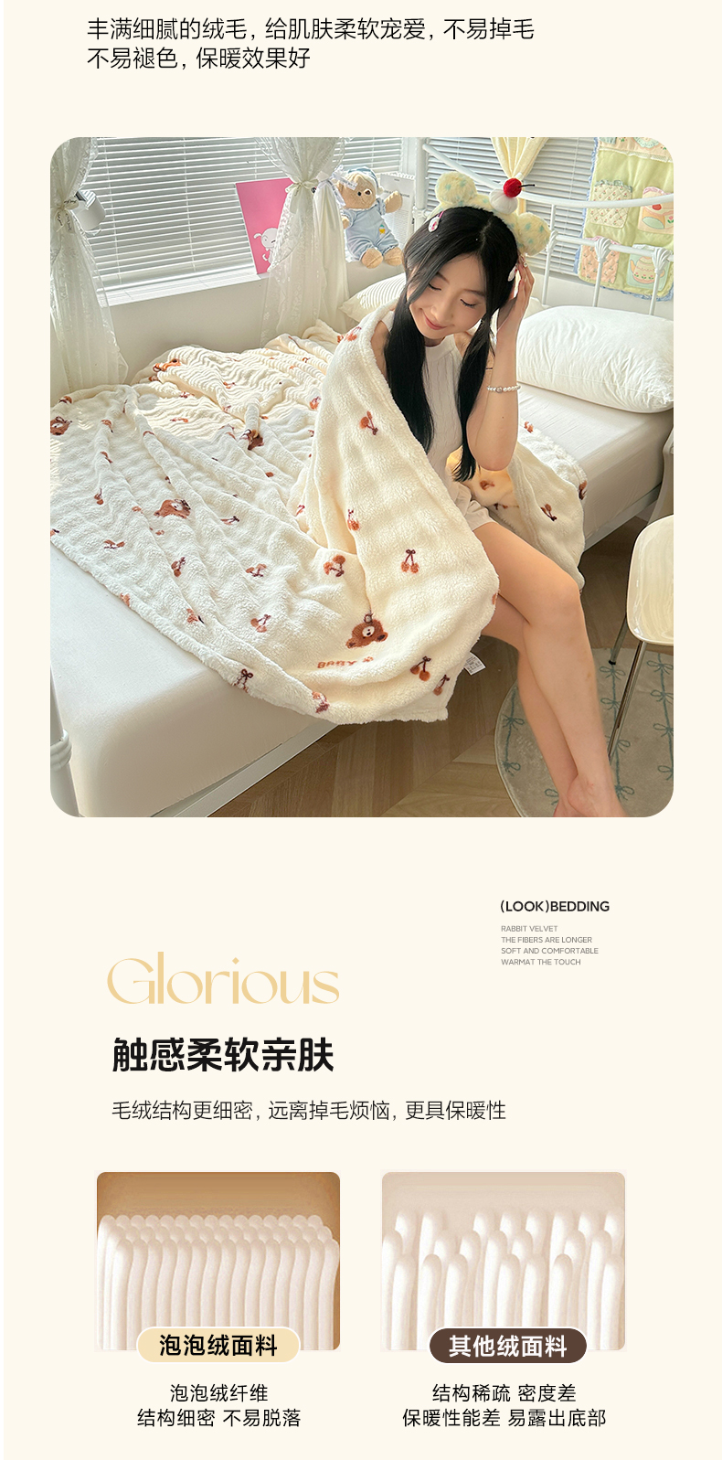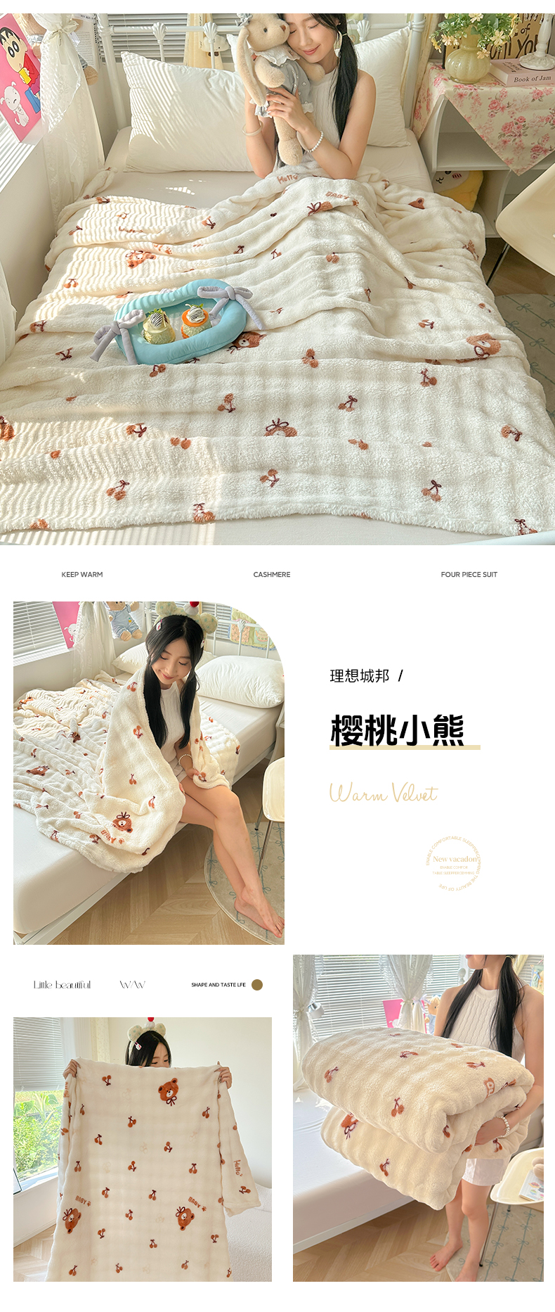 商品名称:韩巢家纺 2025新款高克重泡泡绒毛毯多功能牛奶绒毯子支持跨境电商 樱桃小熊
