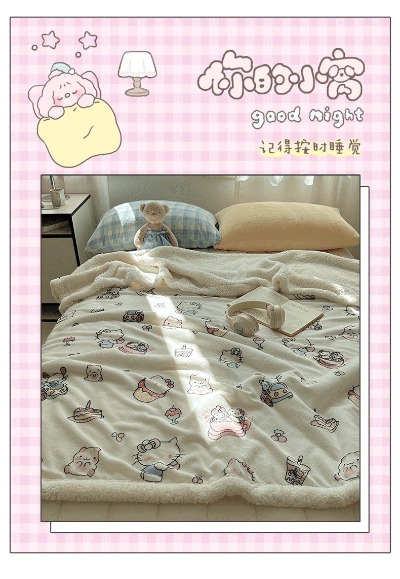 小叮当家纺仓储工厂店 买家秀 爆款花型2025新款牛奶绒洛丽塔小清新印花系列毛毯毯子 小甜猫