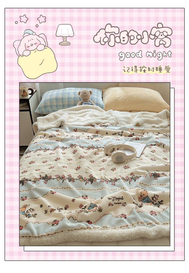 商品名称:小叮当家纺仓储工厂店 买家秀 爆款花型2025新款牛奶绒洛丽塔小清新印花系列毛毯毯子 兔兔小卡