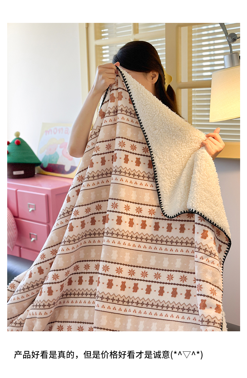 商品名称:小叮当家纺仓储工厂店 买家秀 爆款花型2025新款英伦风高克重羊羔绒牛奶绒贝壳边毯子外贸毯子 粉萌狗趣格