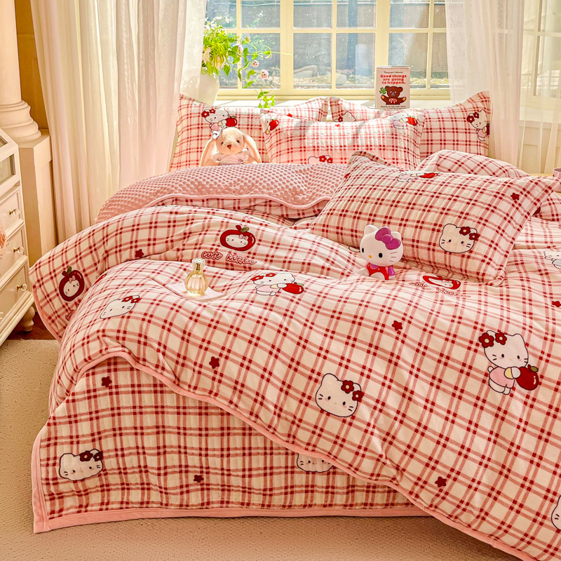 (总)尚美 2025新款毛巾绣牛奶绒床盖加棉加厚四件套,爆莓兔,背带熊猫,蛋糕猫,黑皮猫,恐龙,女孩,小粉象