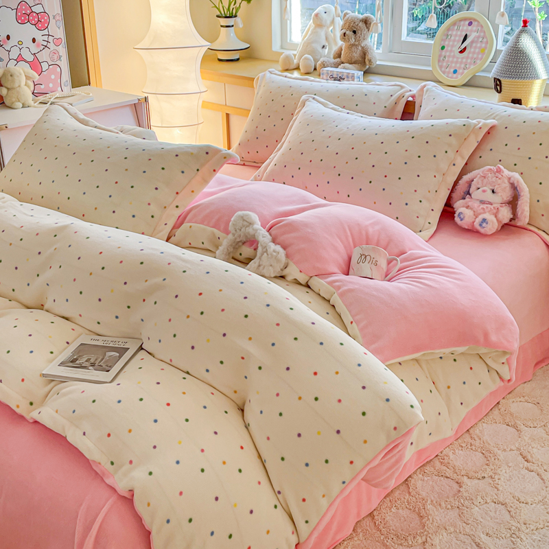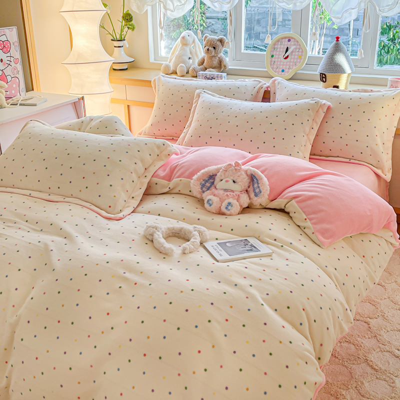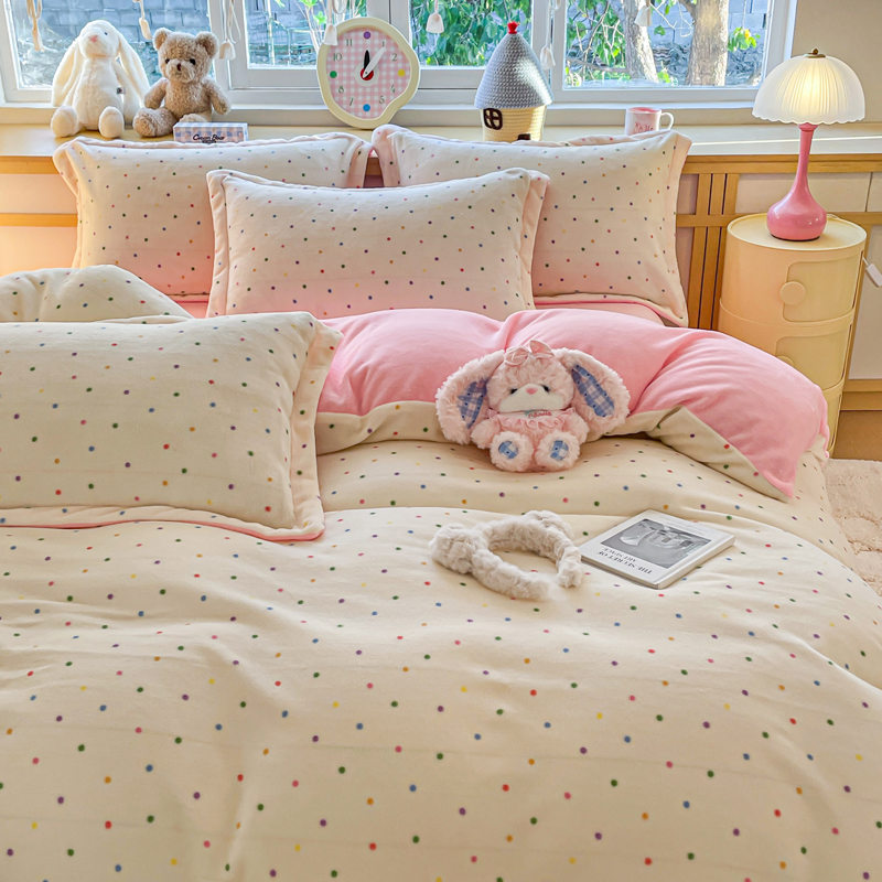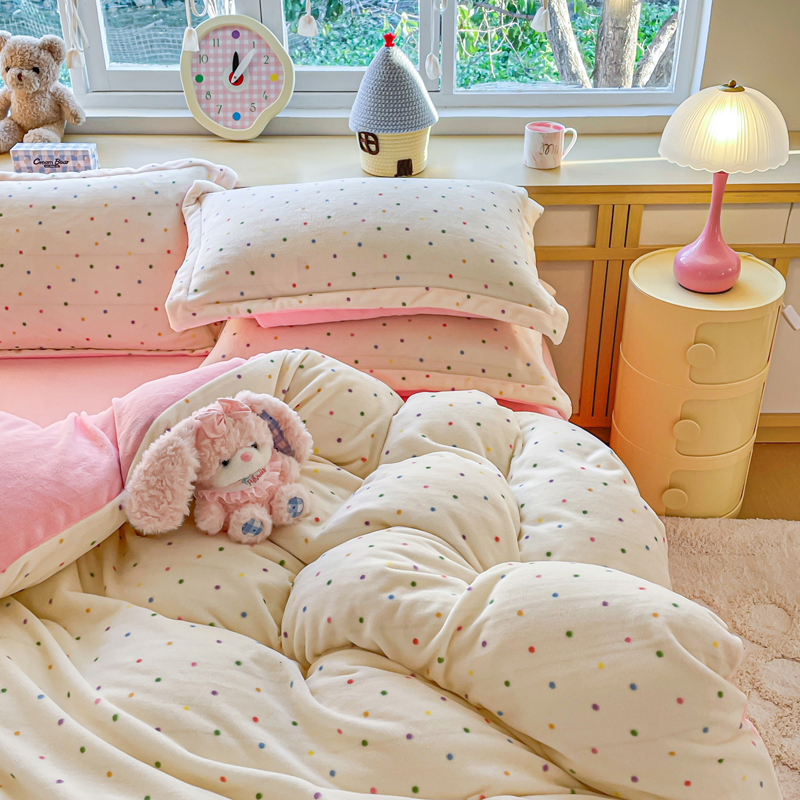 一比一 2025新款双面牛奶绒四件套 彩波点