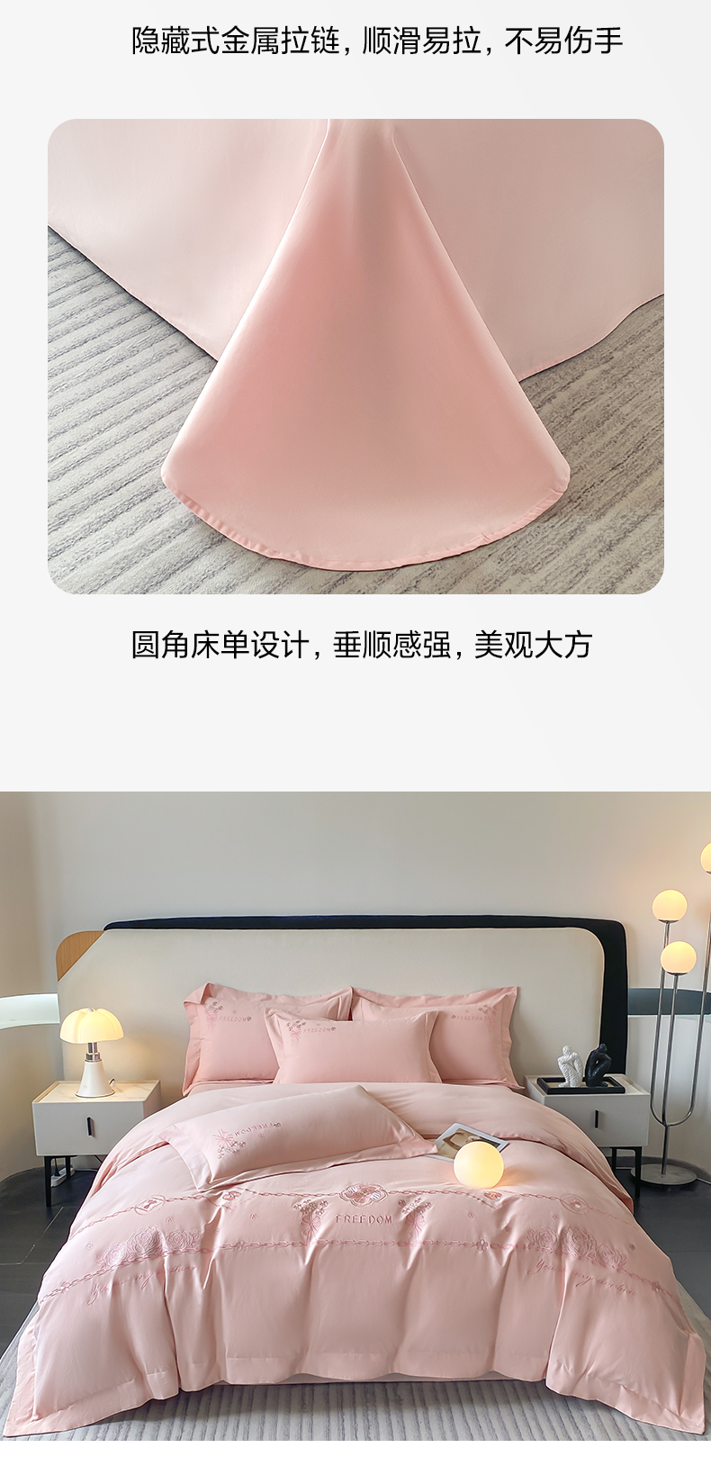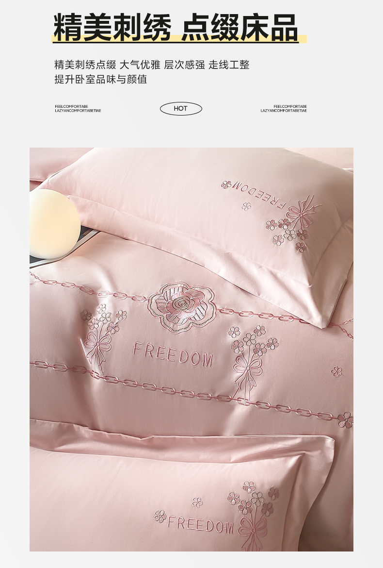 (总)桃园 2025新款全棉长绒棉刺绣绣花四件套-西西里系列,飘蓝,轻奢粉,绅士灰,香槟