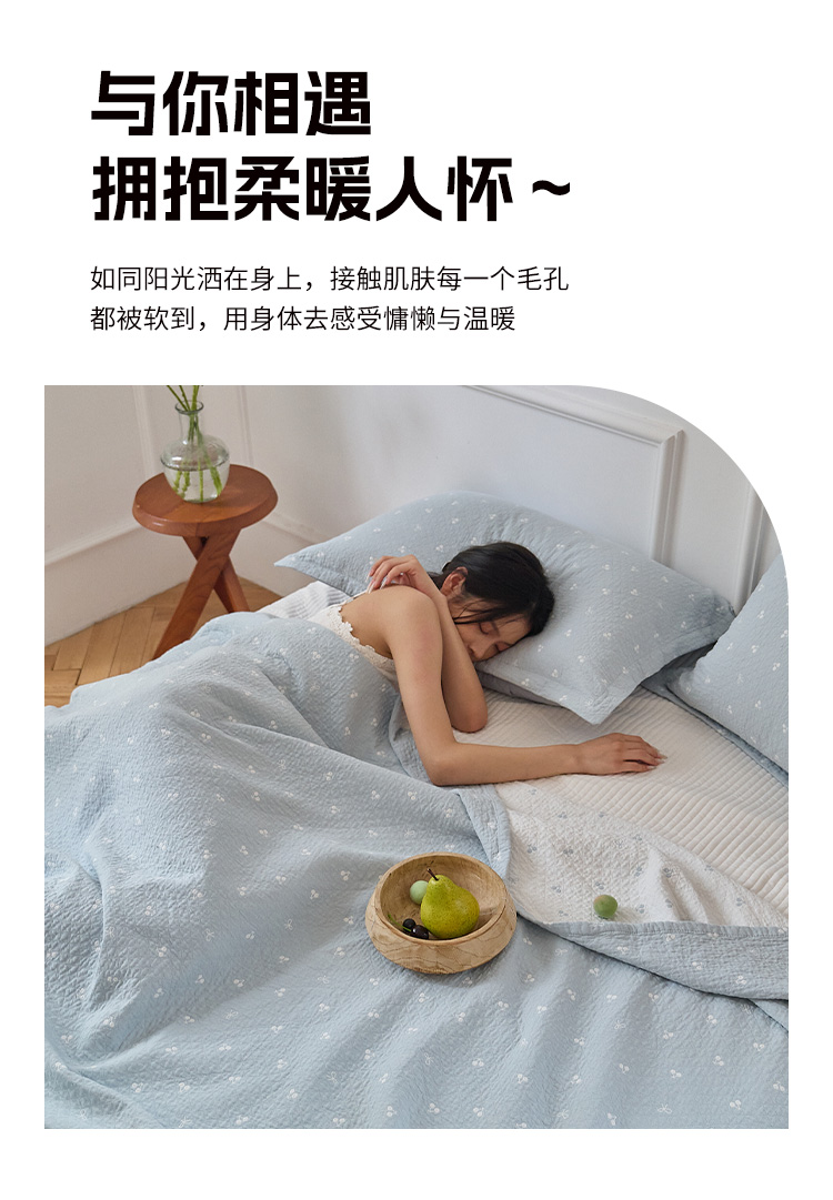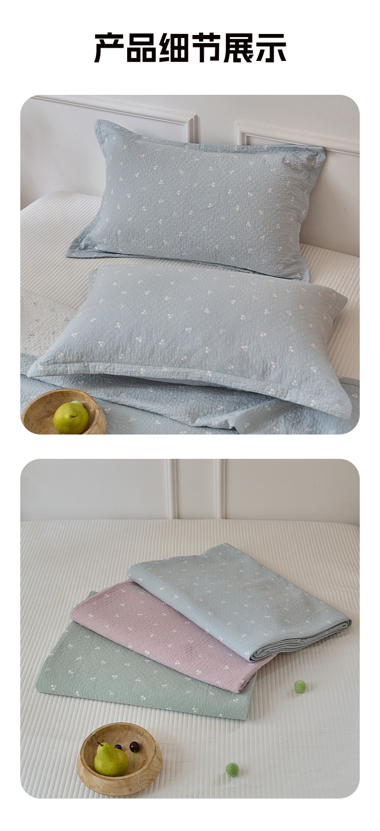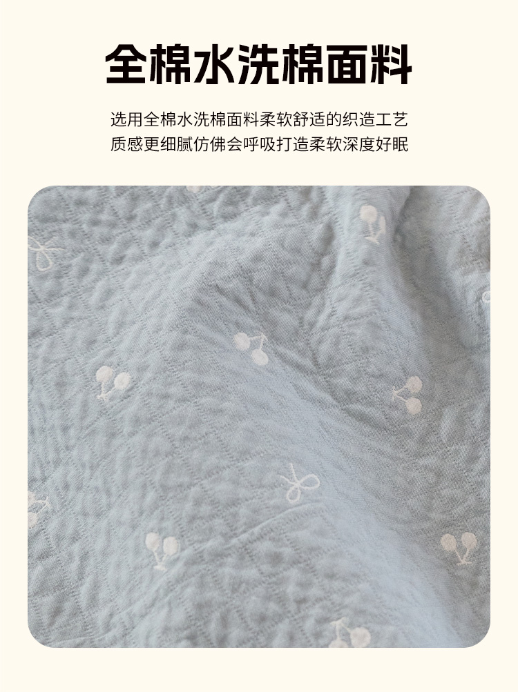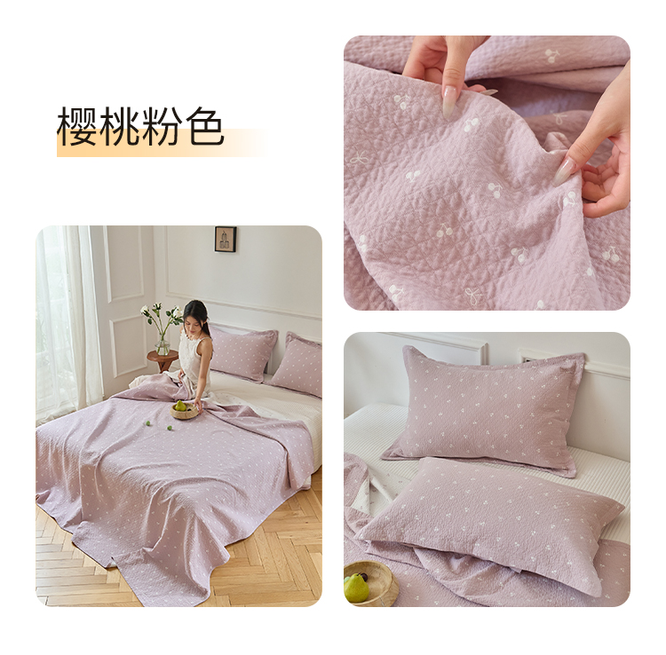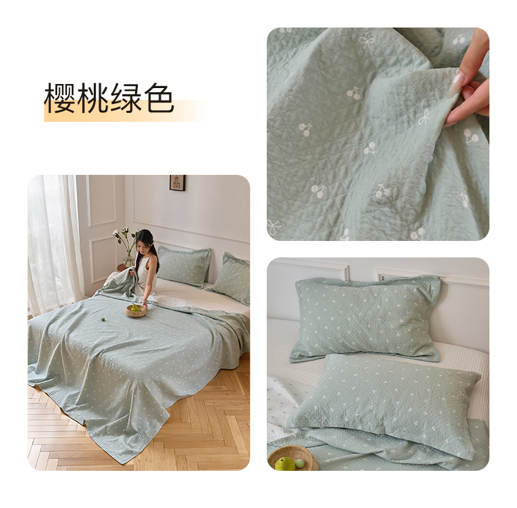商品名称:沐瑟家纺 2025新款亲肤舒适色织提花纱布床盖三件套盖毯毯子-樱桃系列 樱桃蓝色