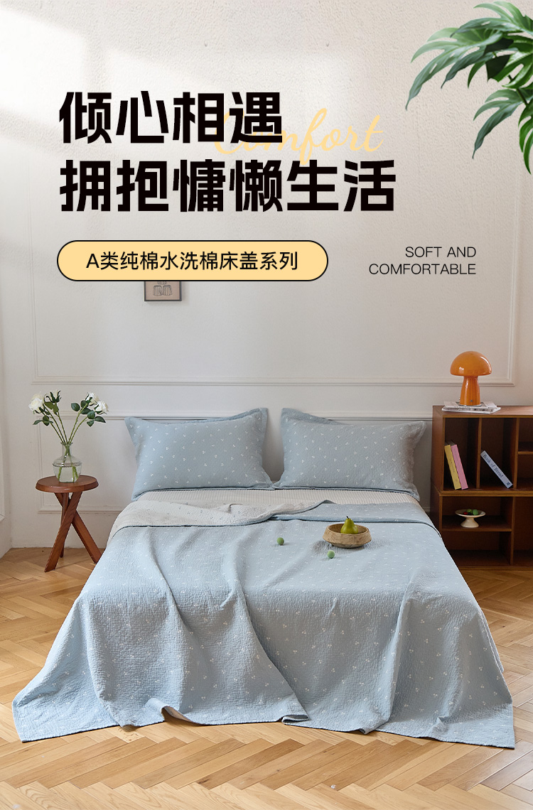 (总)沐瑟家纺 2026新款全棉四层纱布床盖-星星和心情系列,心情-粉色,心情-灰蓝,心情-卡其,星星-黄色,星星-灰色,星星-蓝色,星星-紫色,组合