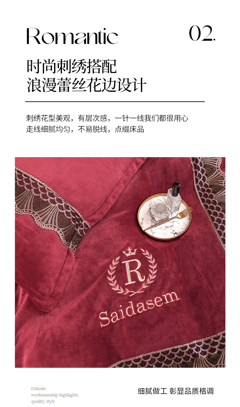 (总)仟网汇 2025热款轻奢贵族风蕾丝立体刺绣高克重牛奶绒四件套金貂绒法莱绒,深酒红,白加灰,豆沙粉,翡翠绿,高级灰,奶白