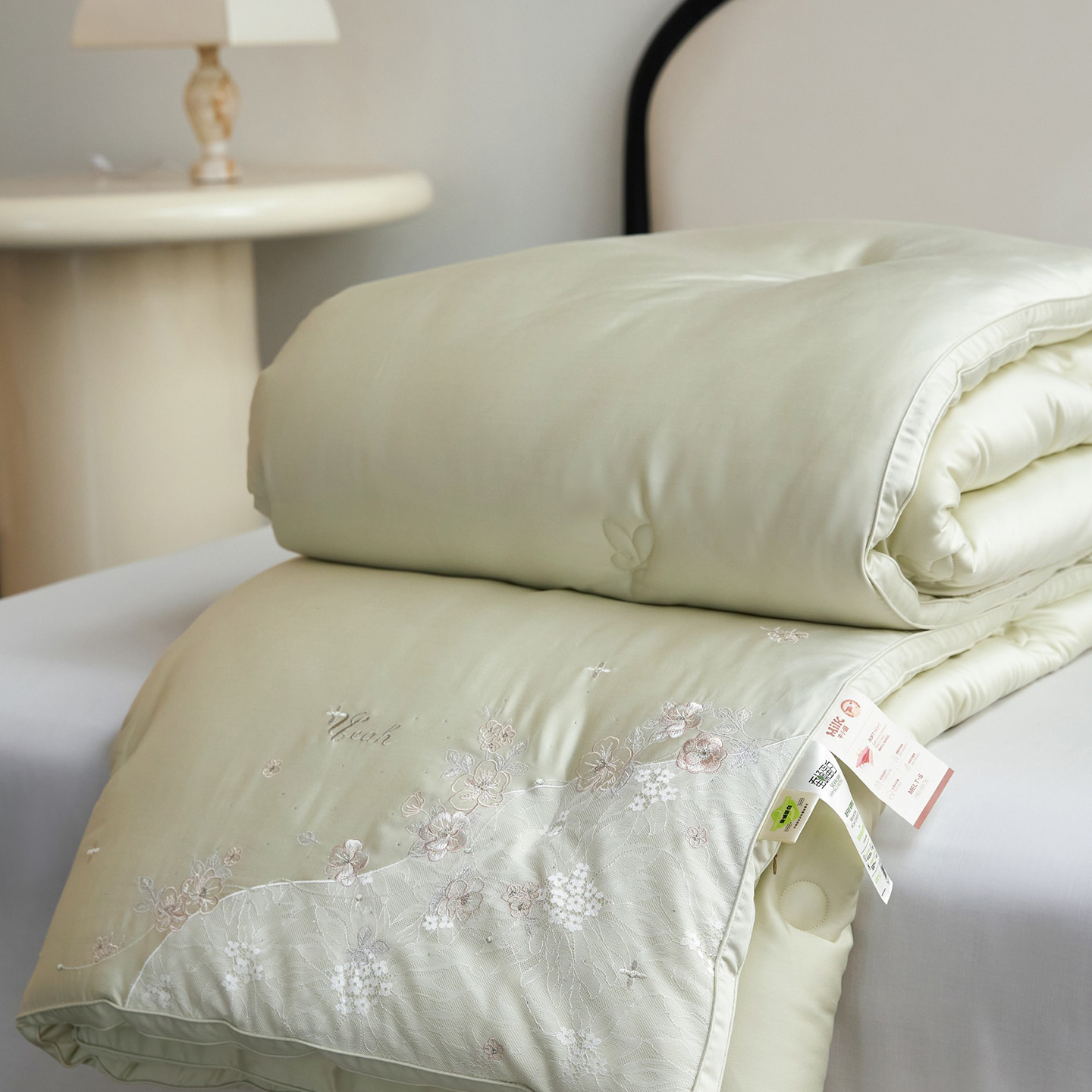 玖玖爱家纺 2025新款蚕皙暖意绣花被被子被芯 贝壳粉
